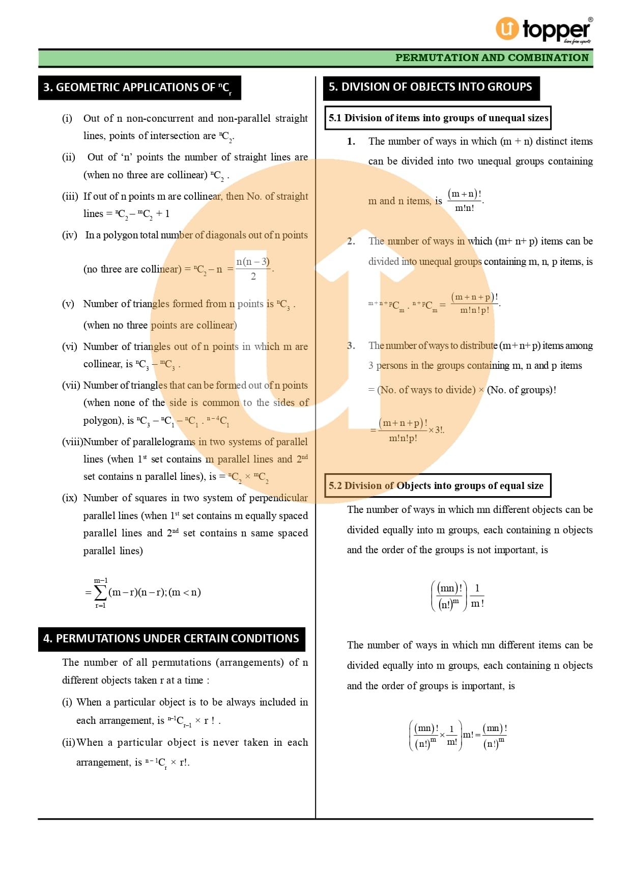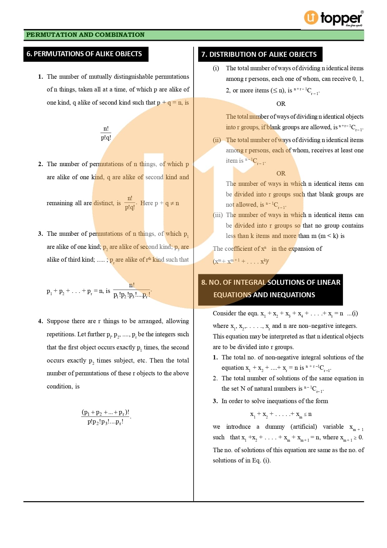 Class 11 Maths CBSE Revision Notes 7 – Permutations and Combinations