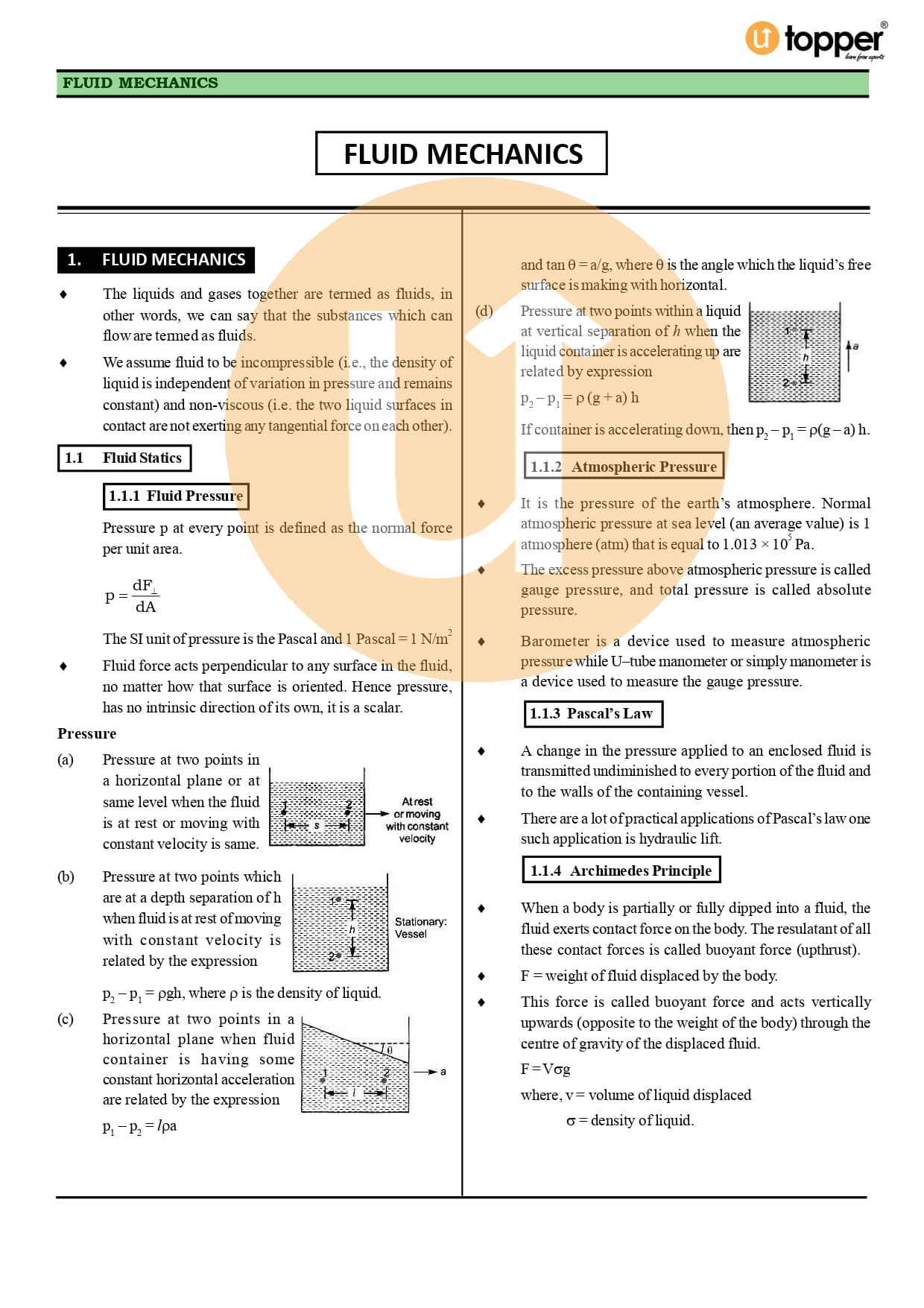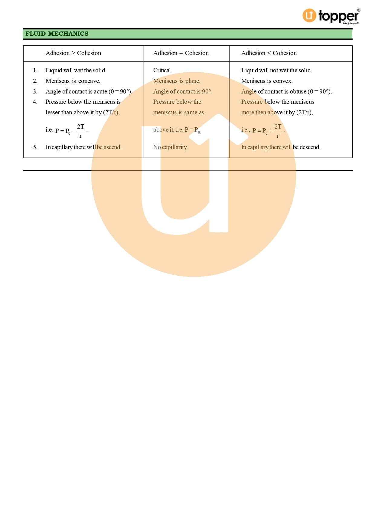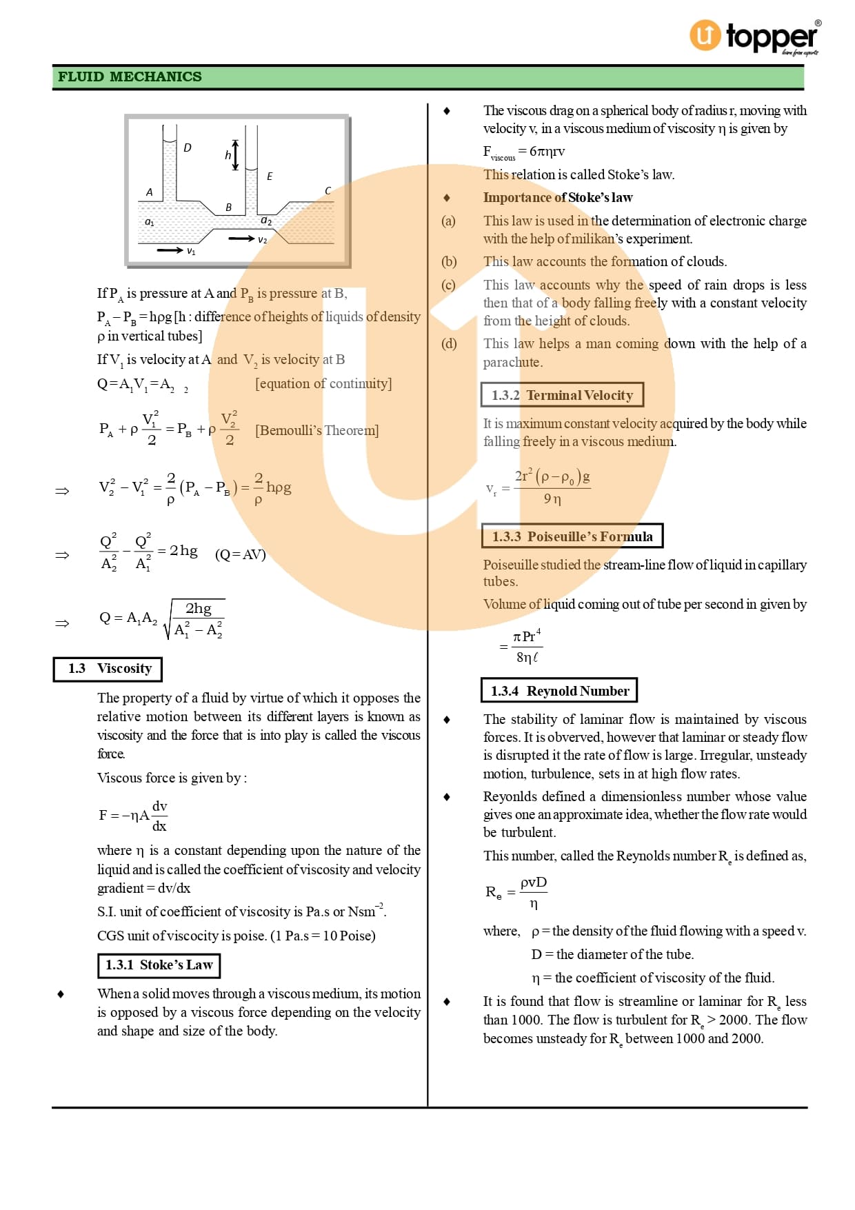 Class 11 Physics CBSE Revision Notes 10 – Mechanical Properties of Fluids
