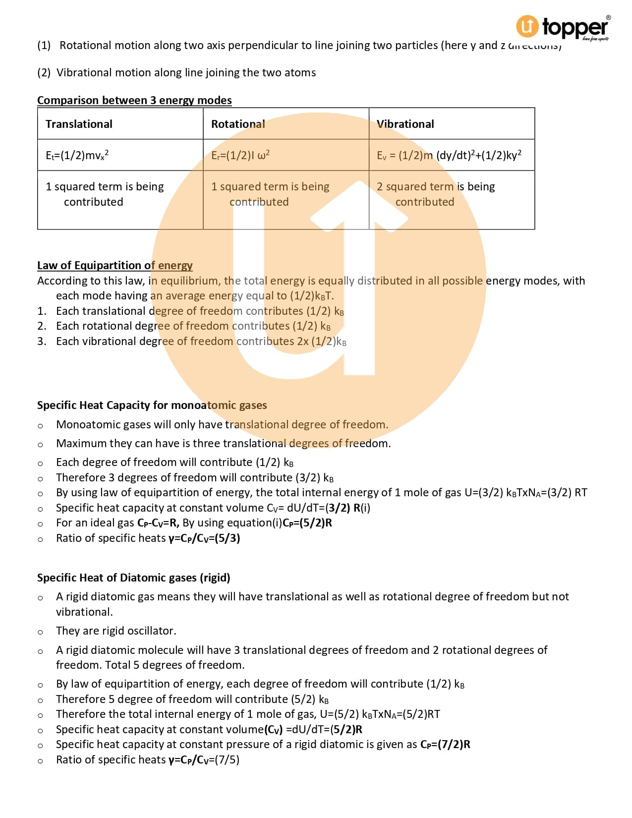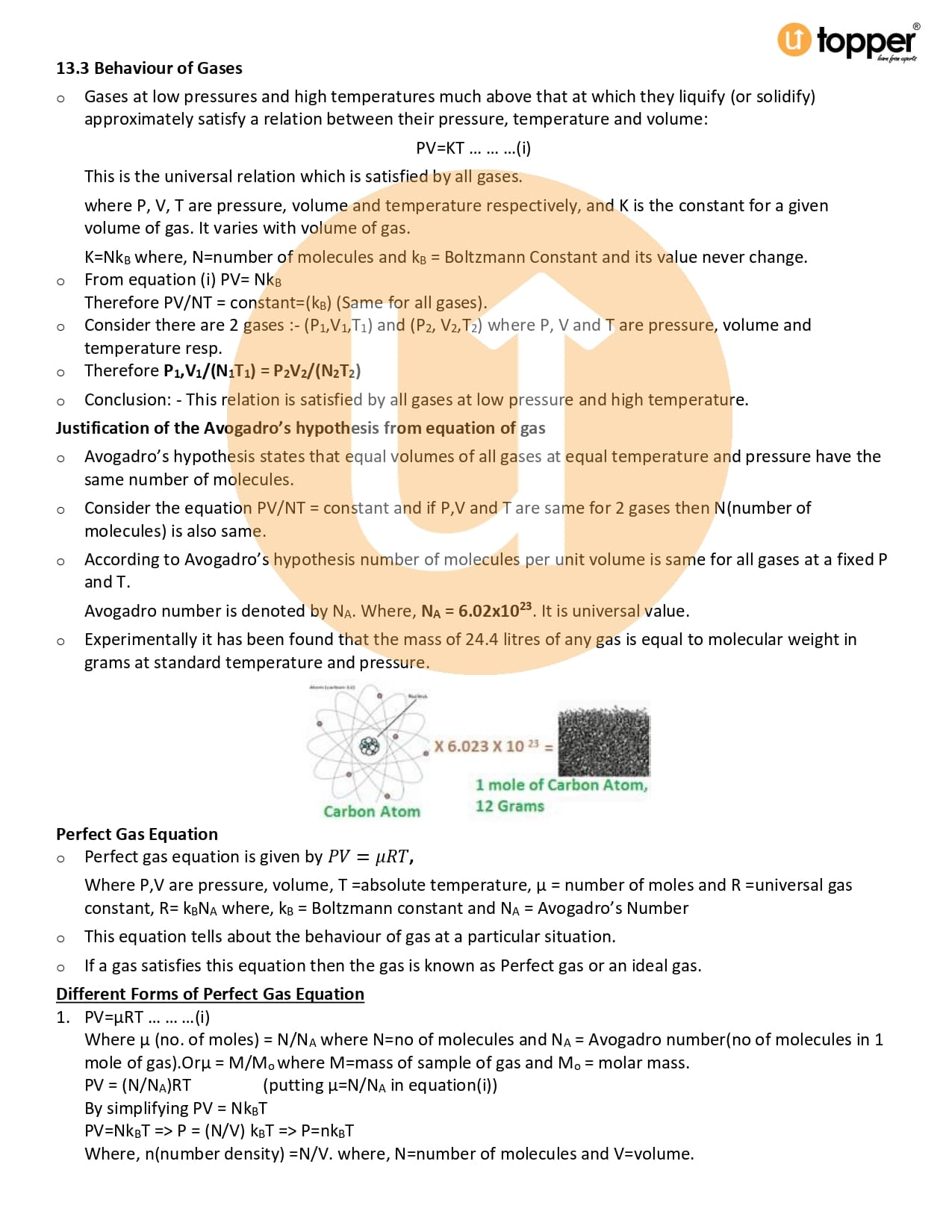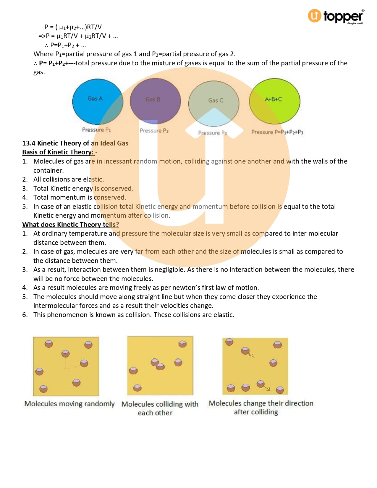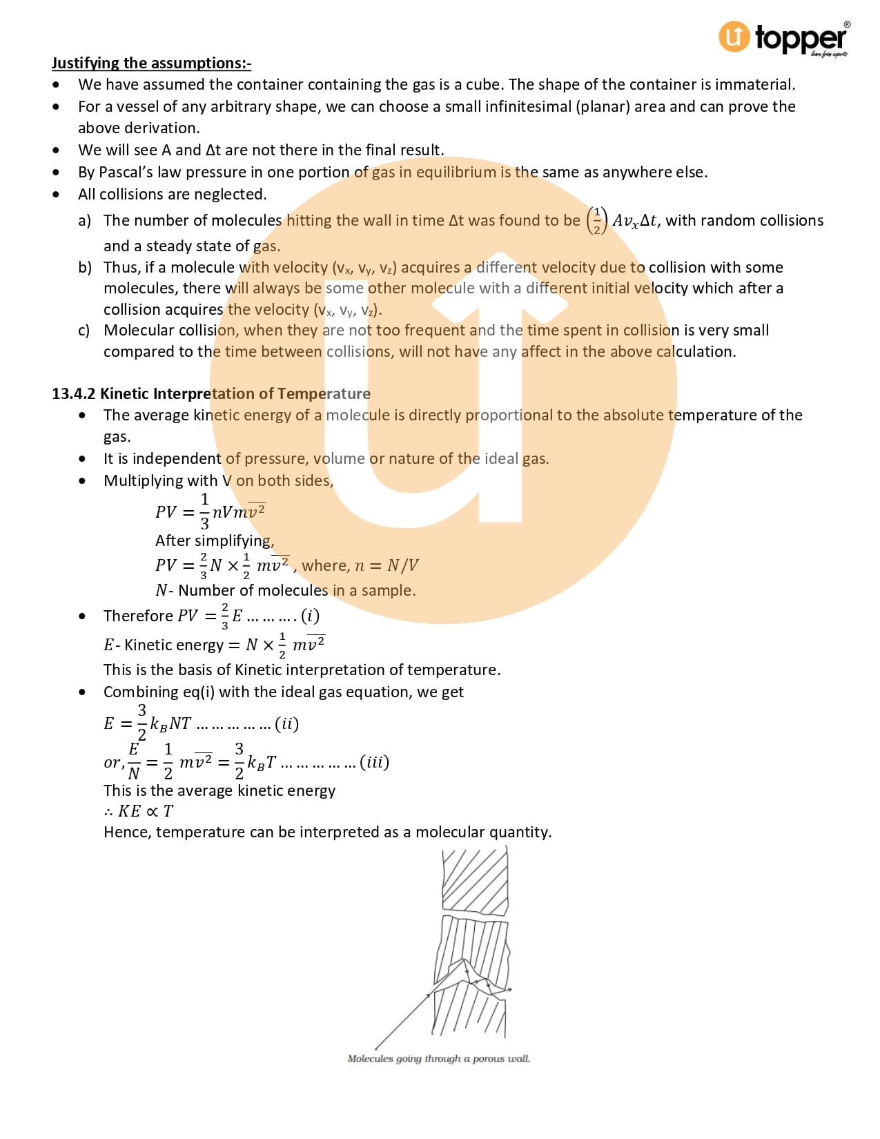 Class 11 Physics CBSE Revision Notes 13 – Kinetic Theory