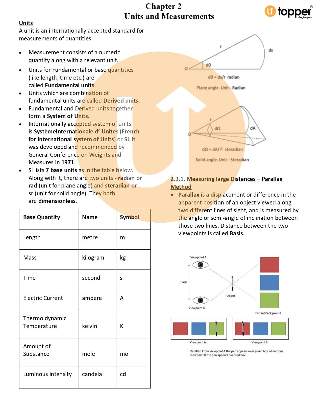 Class 11 Physics Notes Chapter 2 Pdf – Units and Measurement