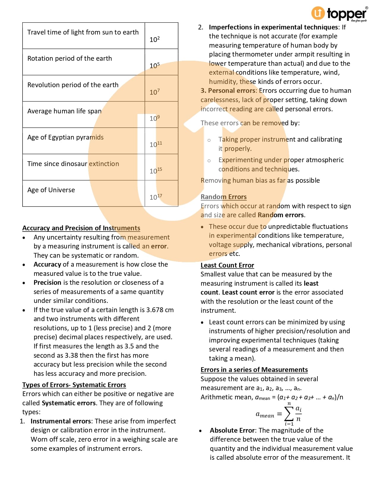 Class 11 Physics CBSE Revision Notes 2 – Units and Measurement