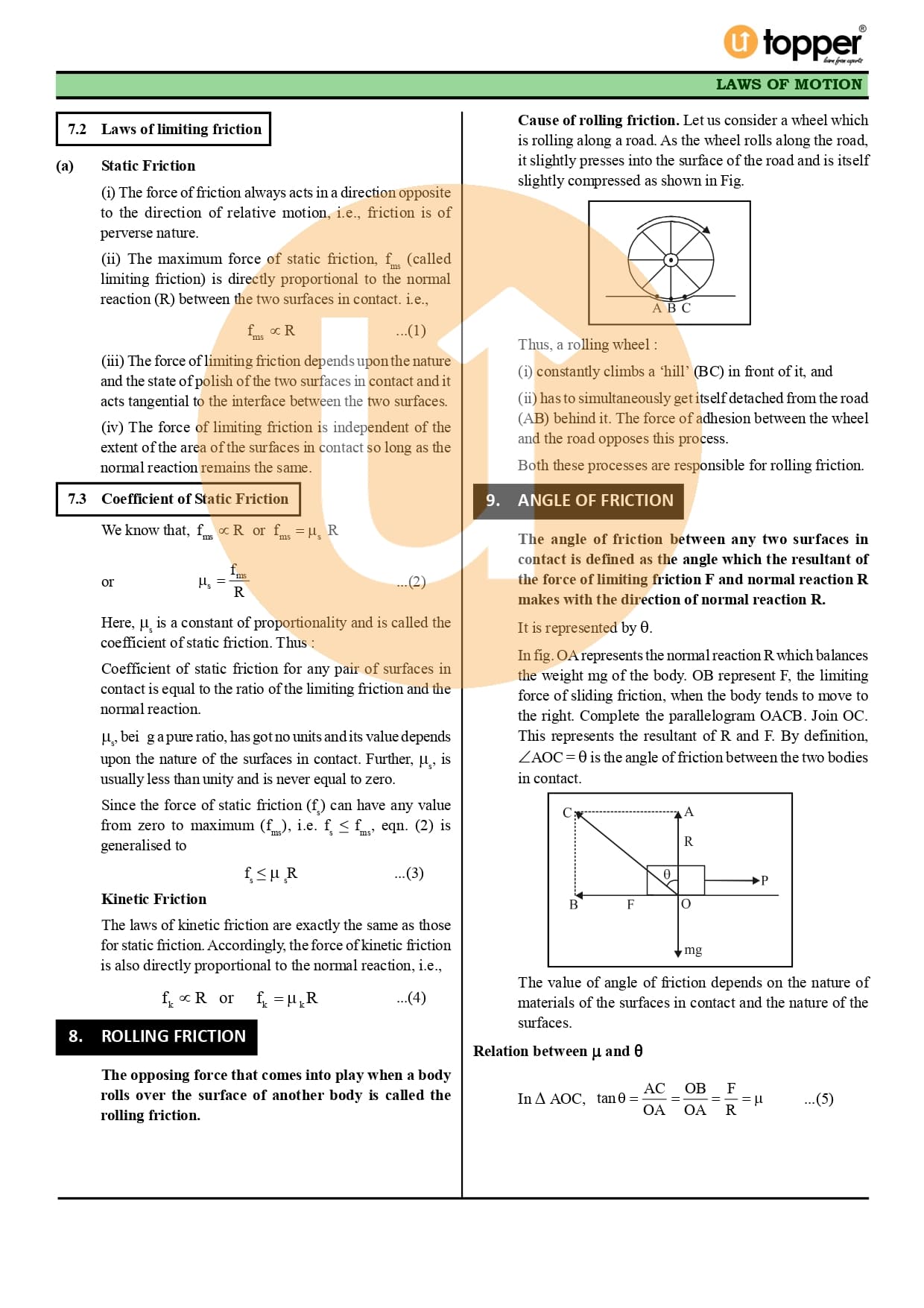 Class 11 Physics Notes Chapter 5 Pdf – Law of Motion