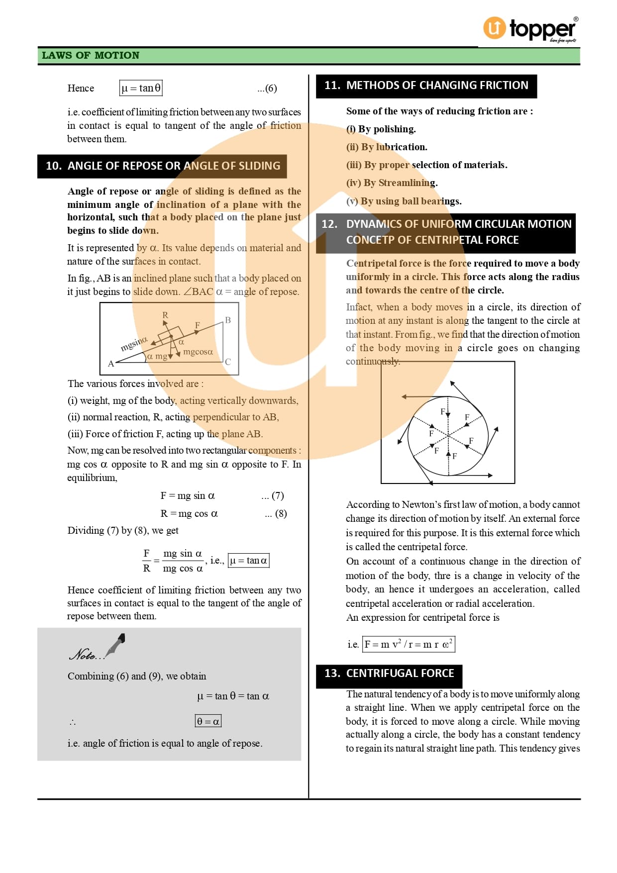 Class 11 Physics CBSE Revision Notes 5 – Law of Motion