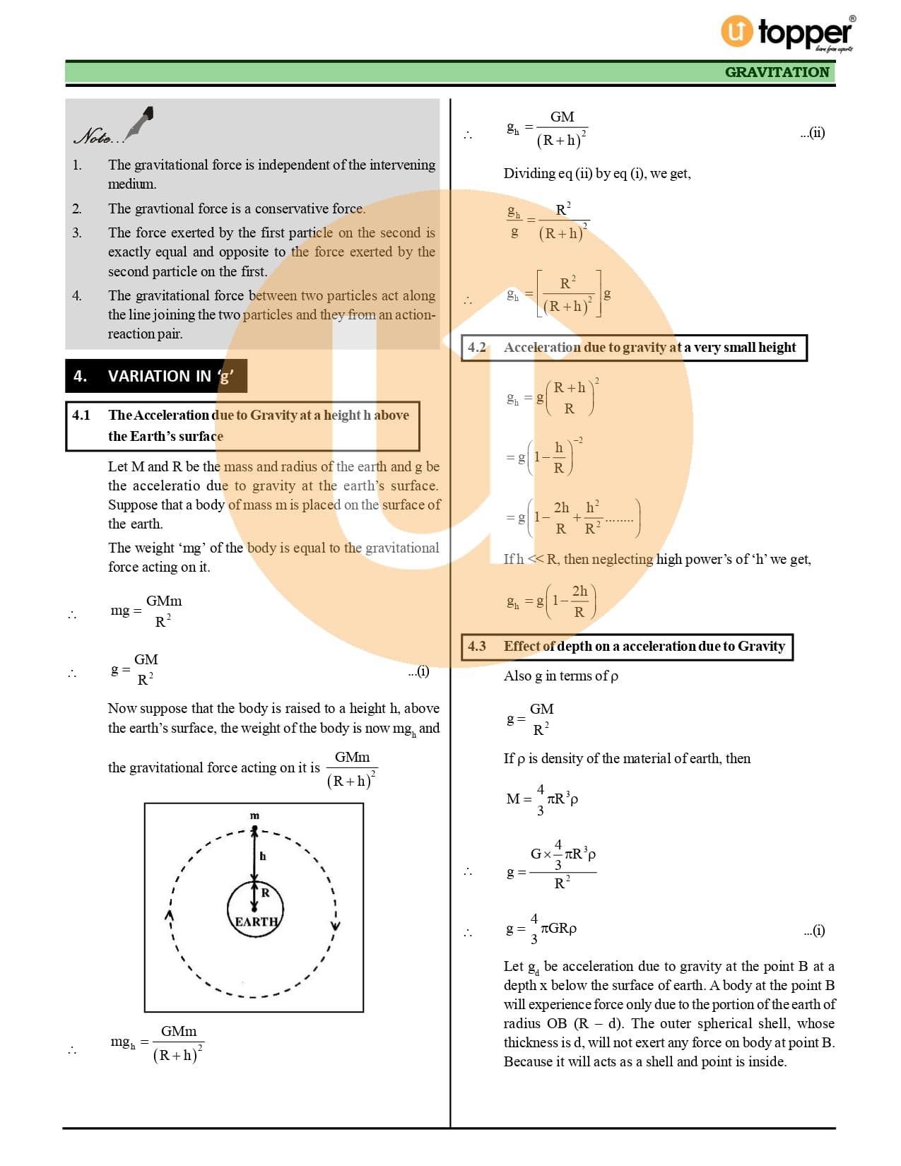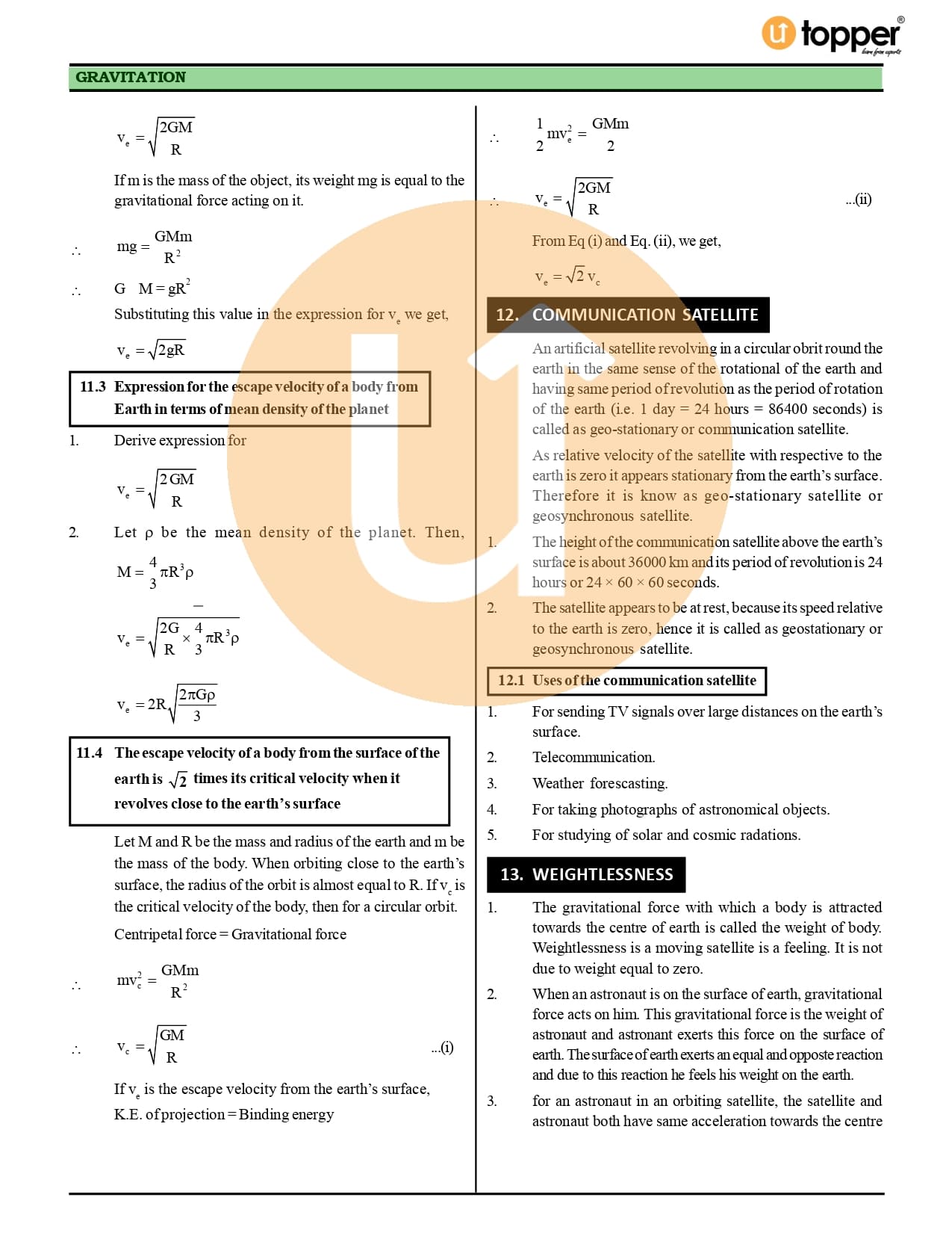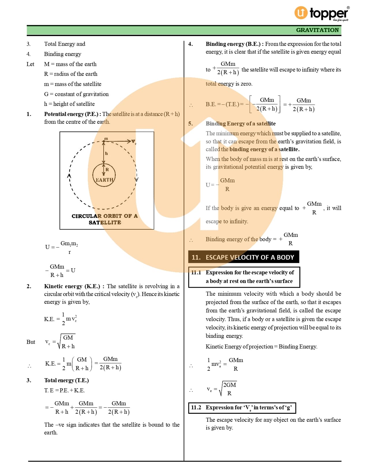 Class 11 Physics CBSE Revision Notes 8 – Gravitation
