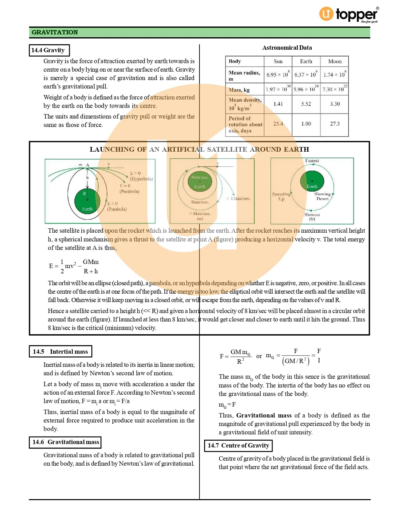 Chapter 8 – Gravitation Notes