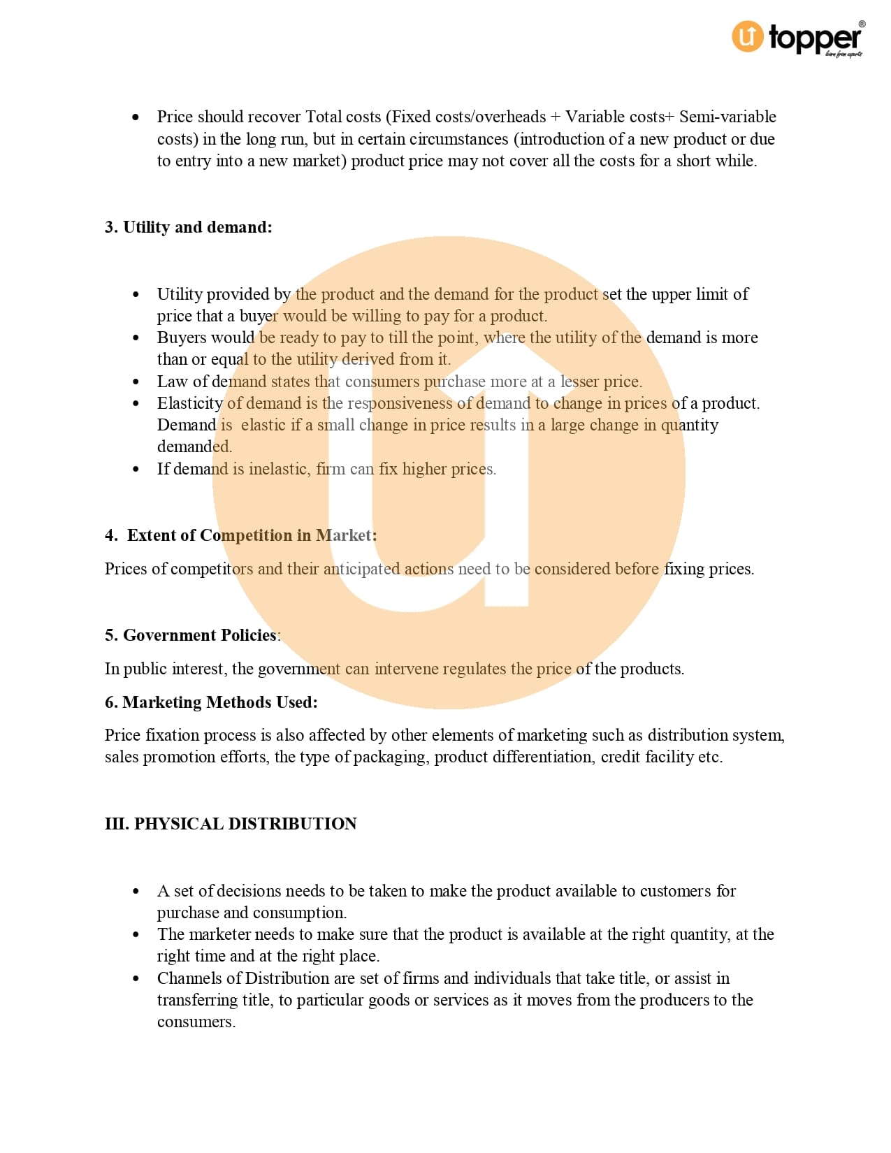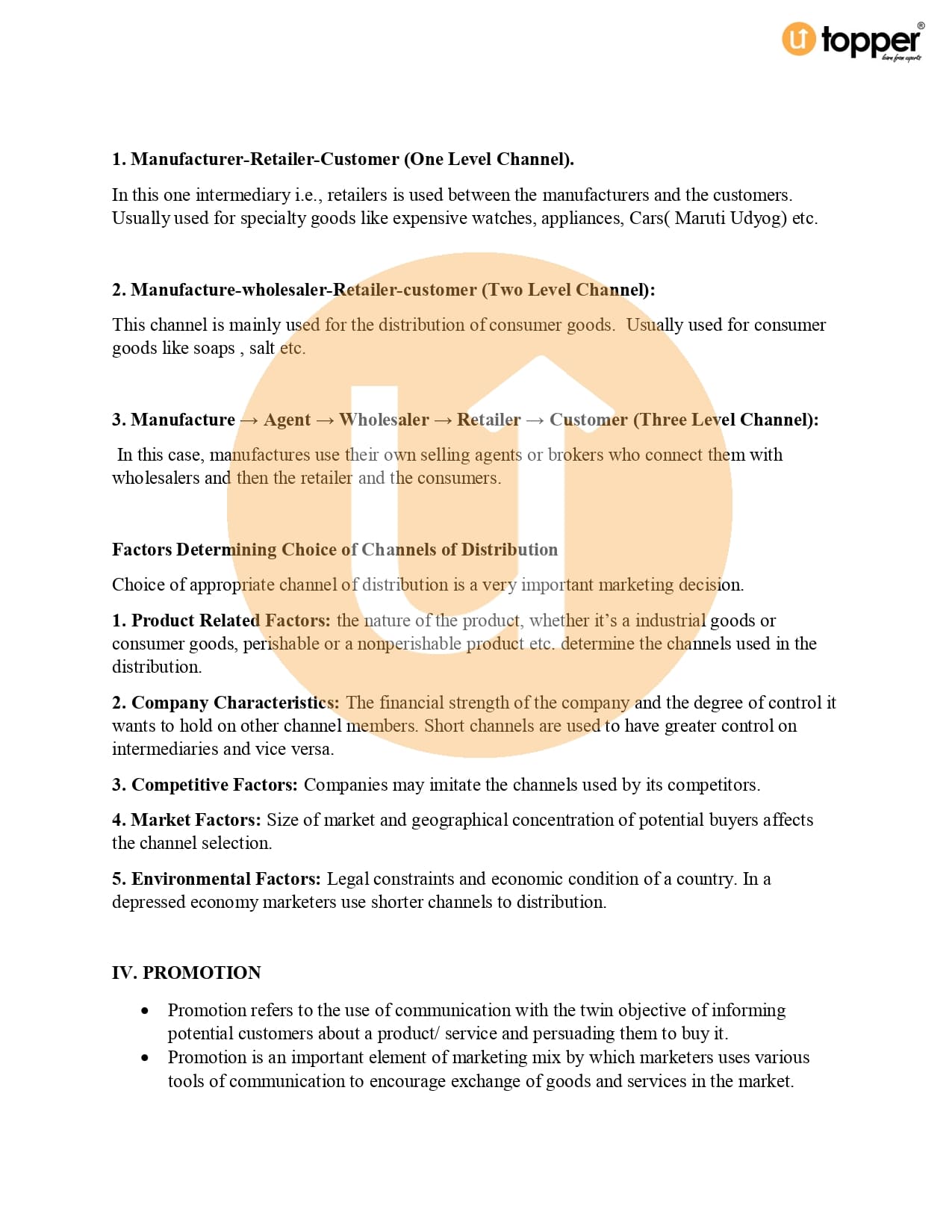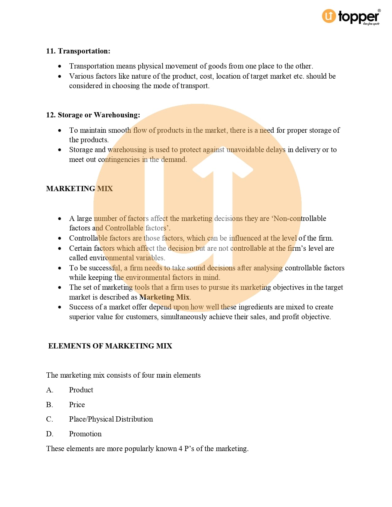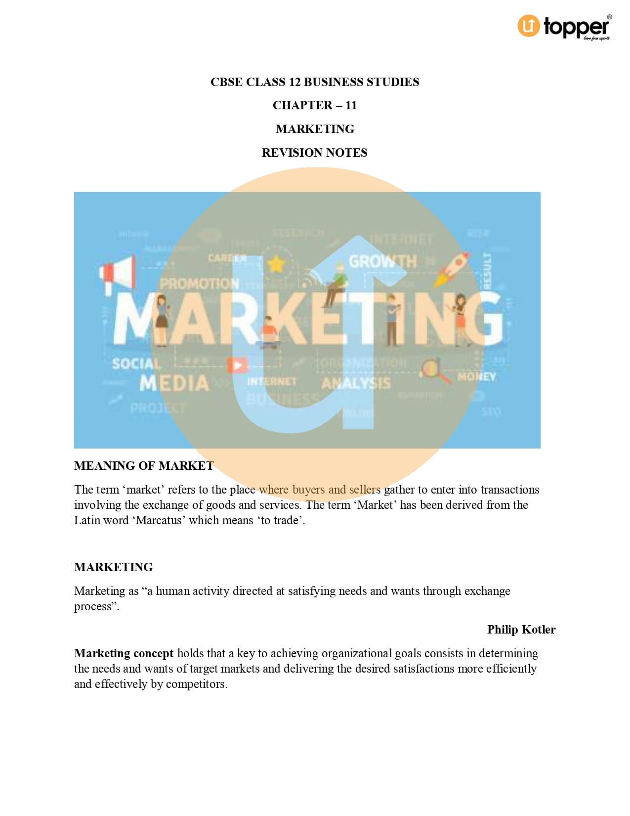 Class 12 Business Studies CBSE Revision Notes 11 – Marketing