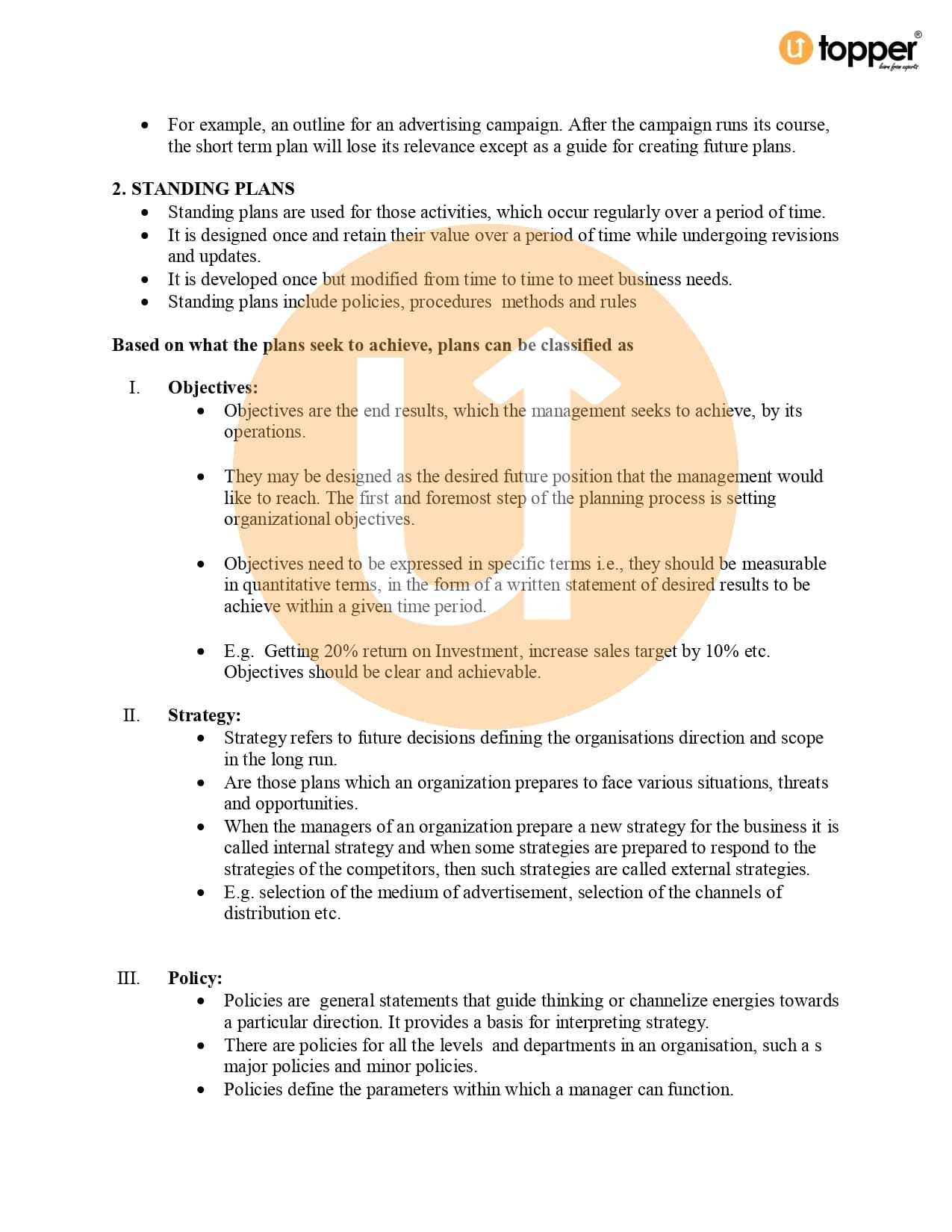Class 12 Business Studies CBSE Revision Notes 4 – Planning