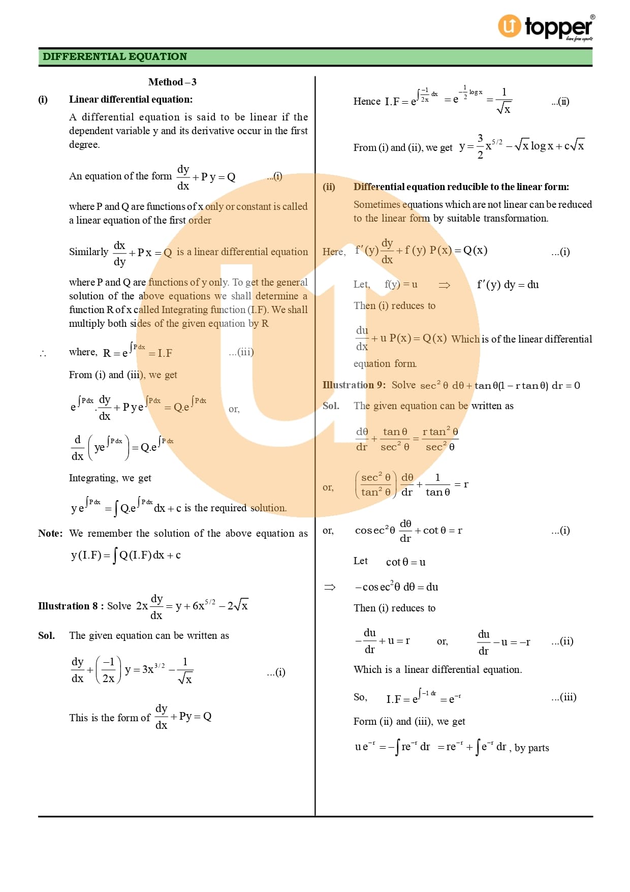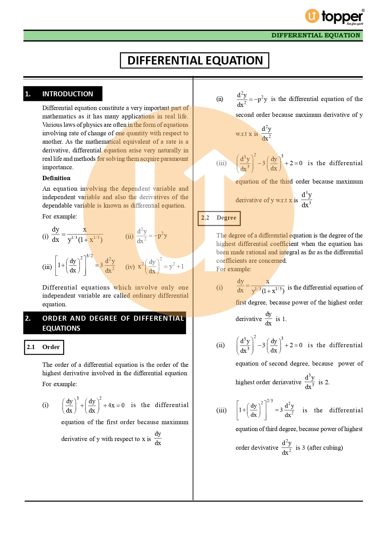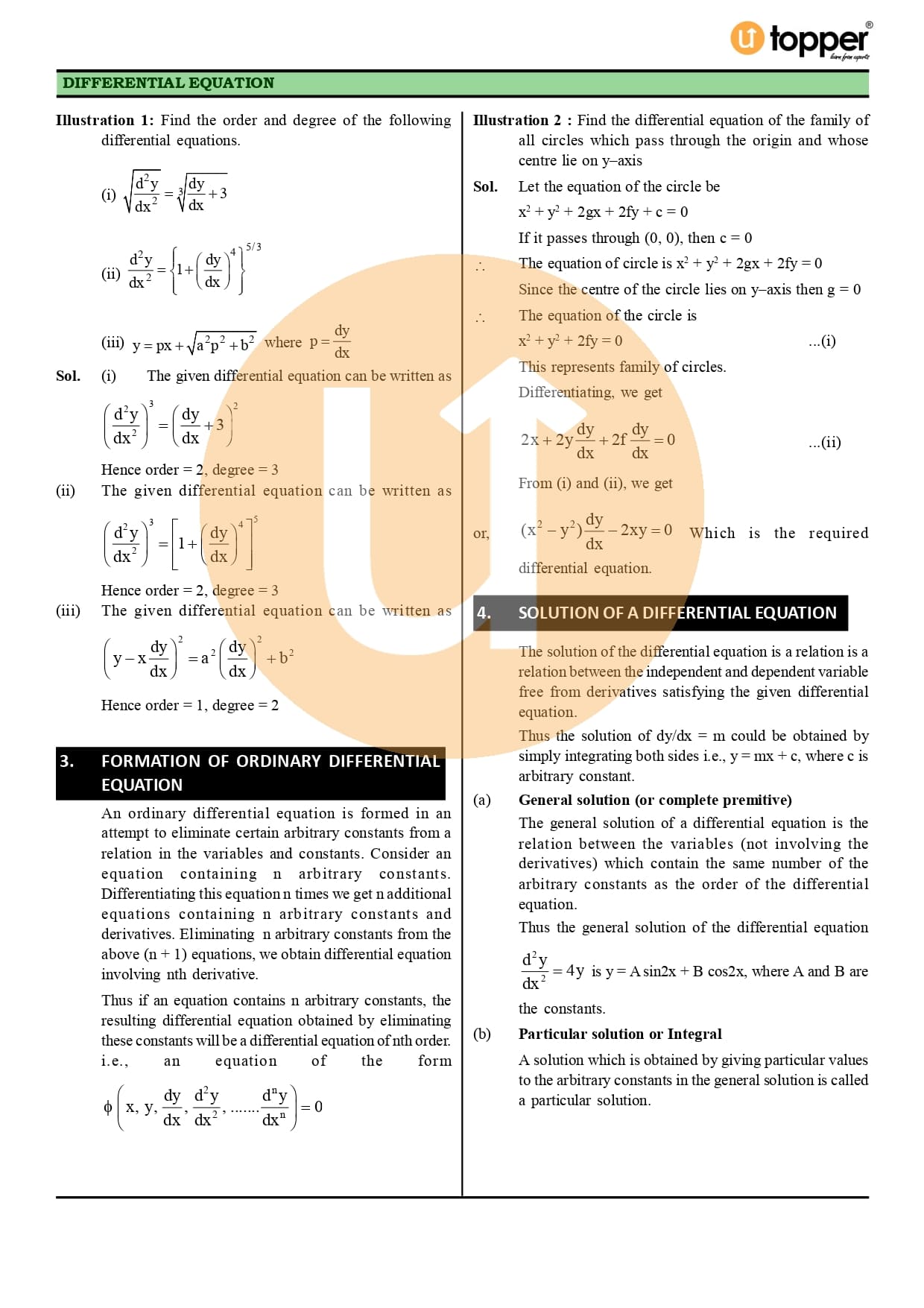 Class 12 Maths CBSE Revision Notes 9 – Differential Equations