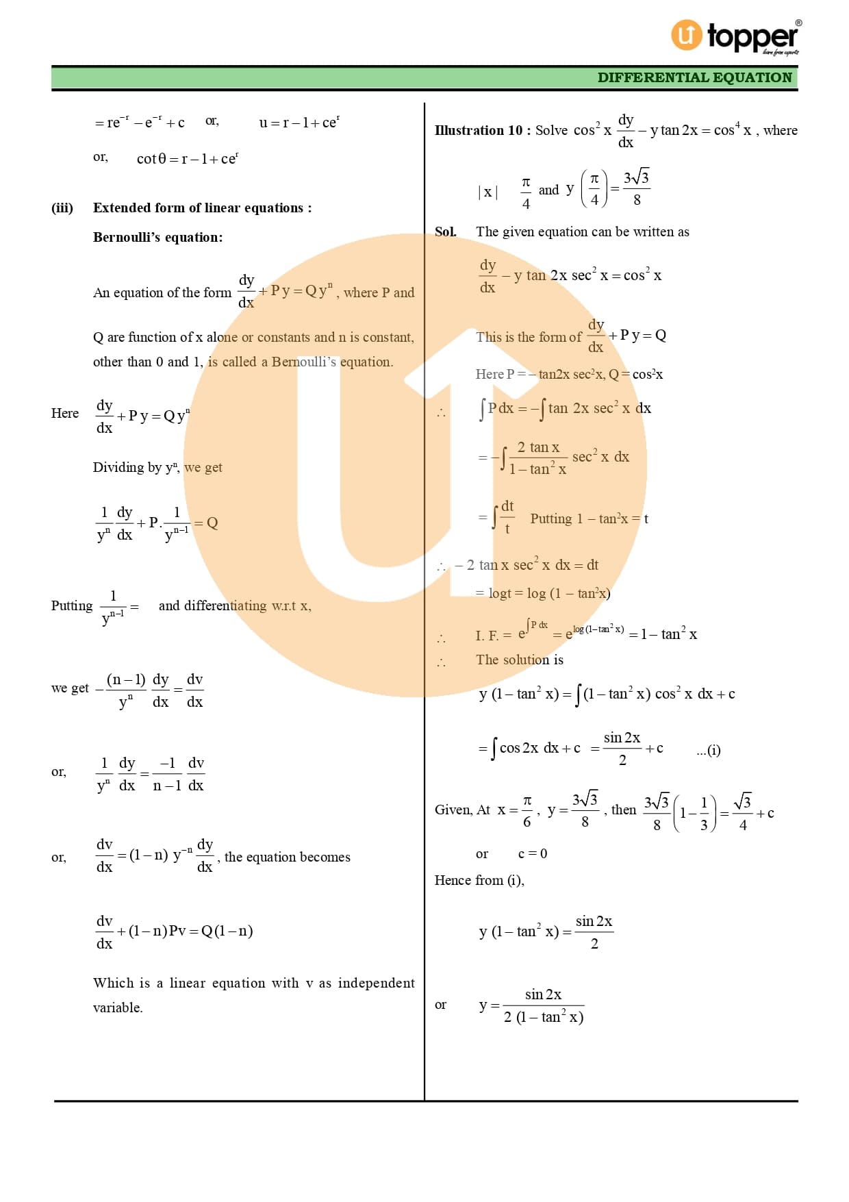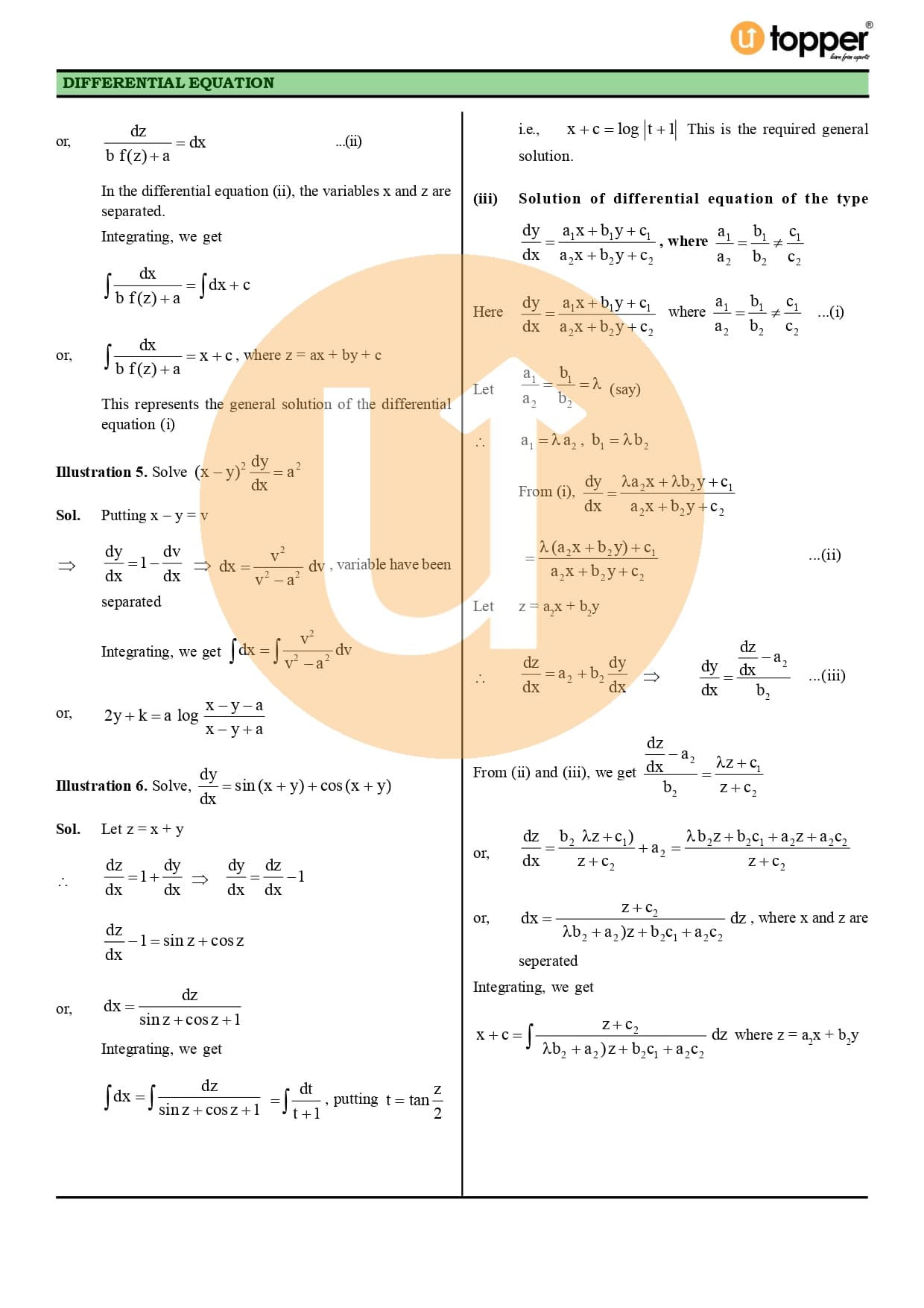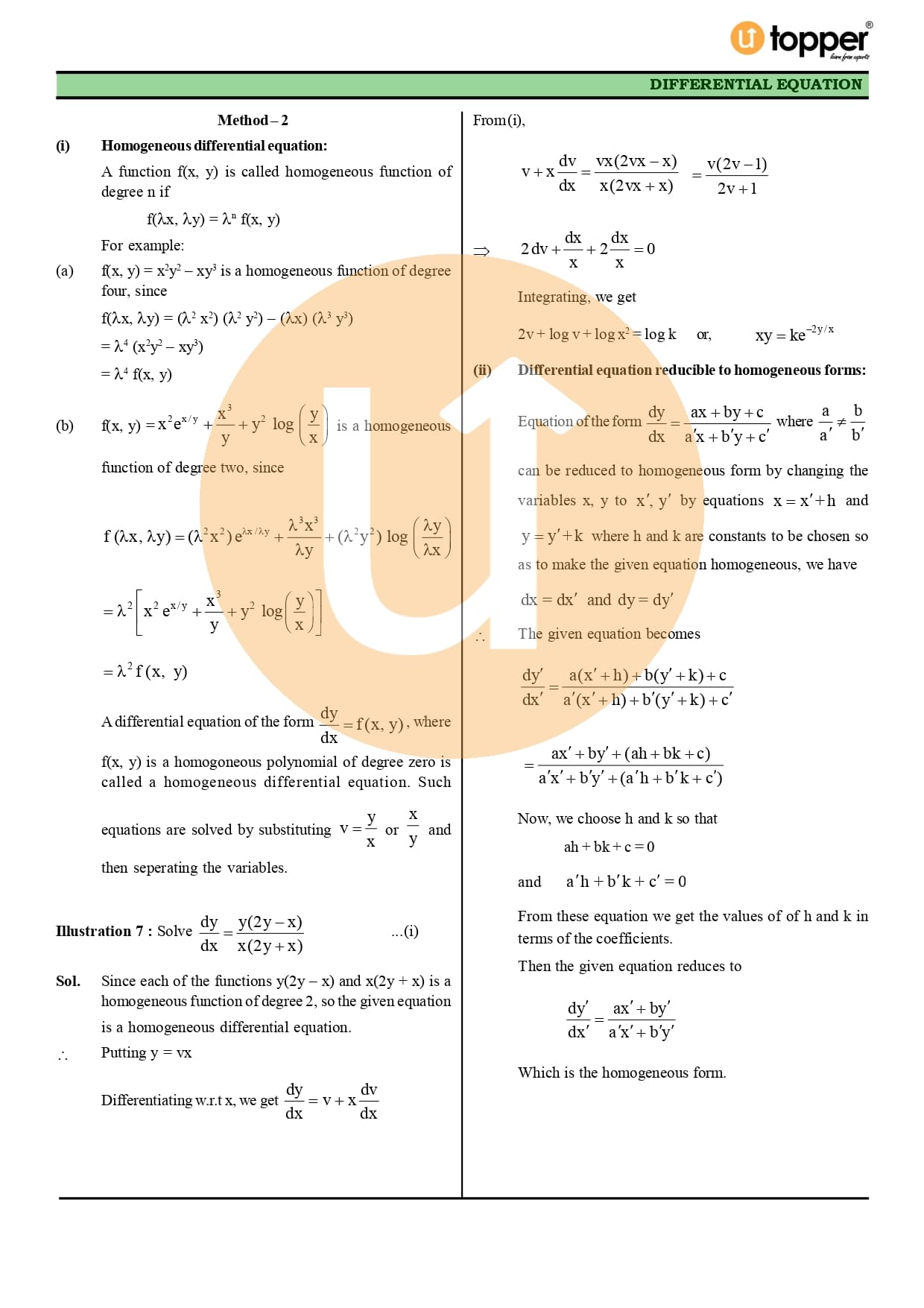 Class 12 Maths CBSE Revision Notes 9 – Differential Equations