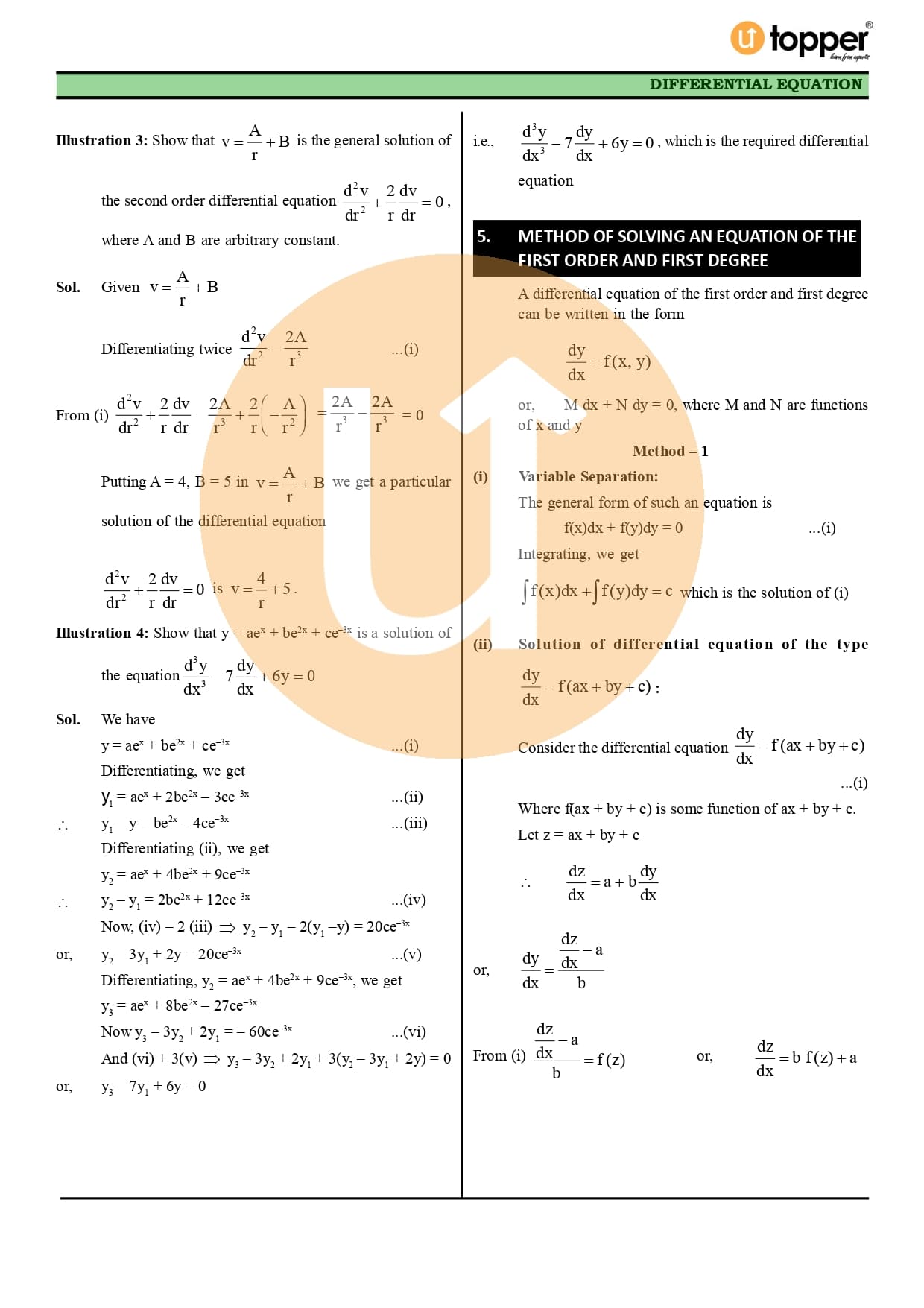 Class 12 Maths Notes Chapter 9 Pdf – Differential Equations