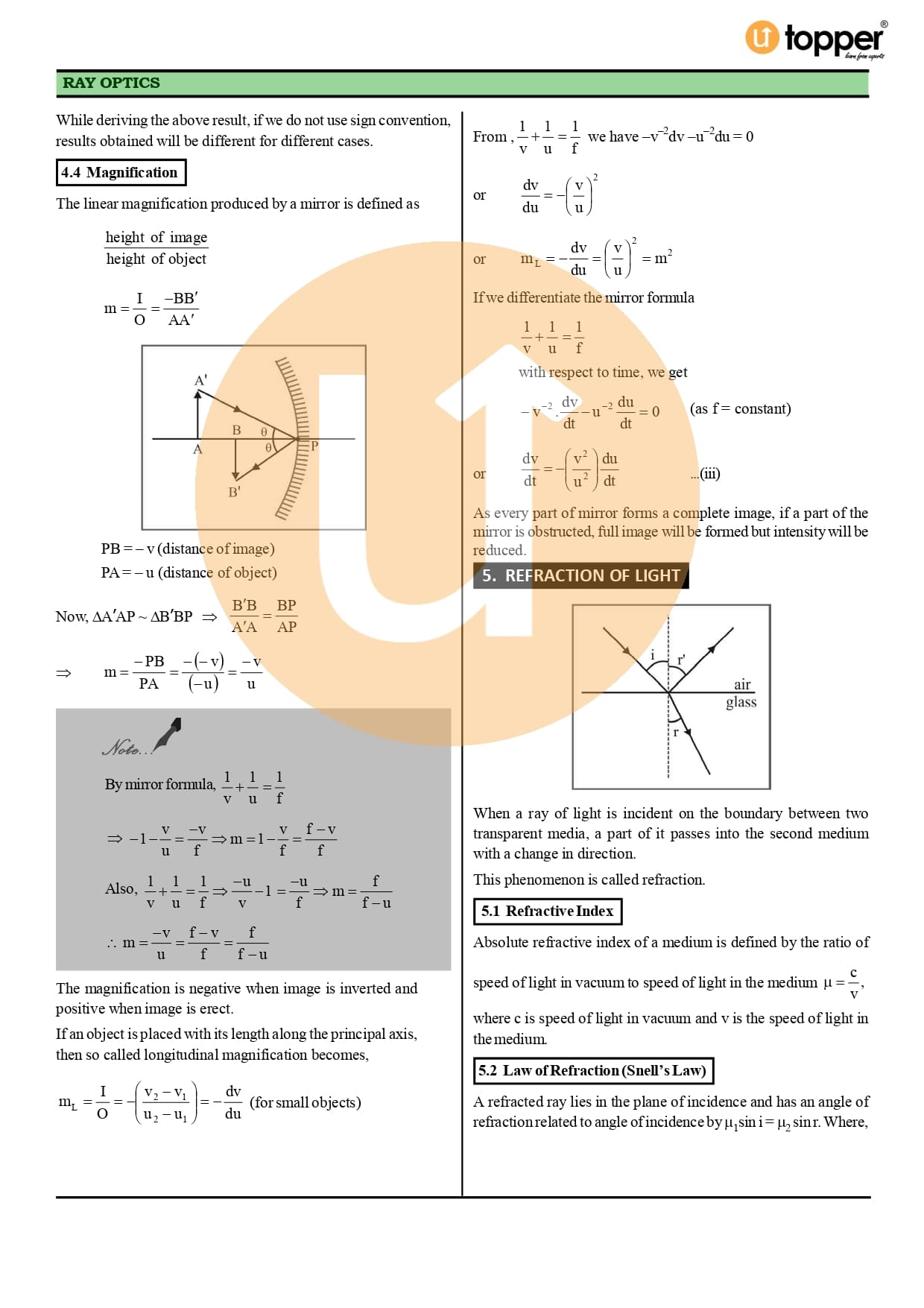 Class 12 Physics Notes Chapter 9 Pdf – Ray Optics and Optical Instruments