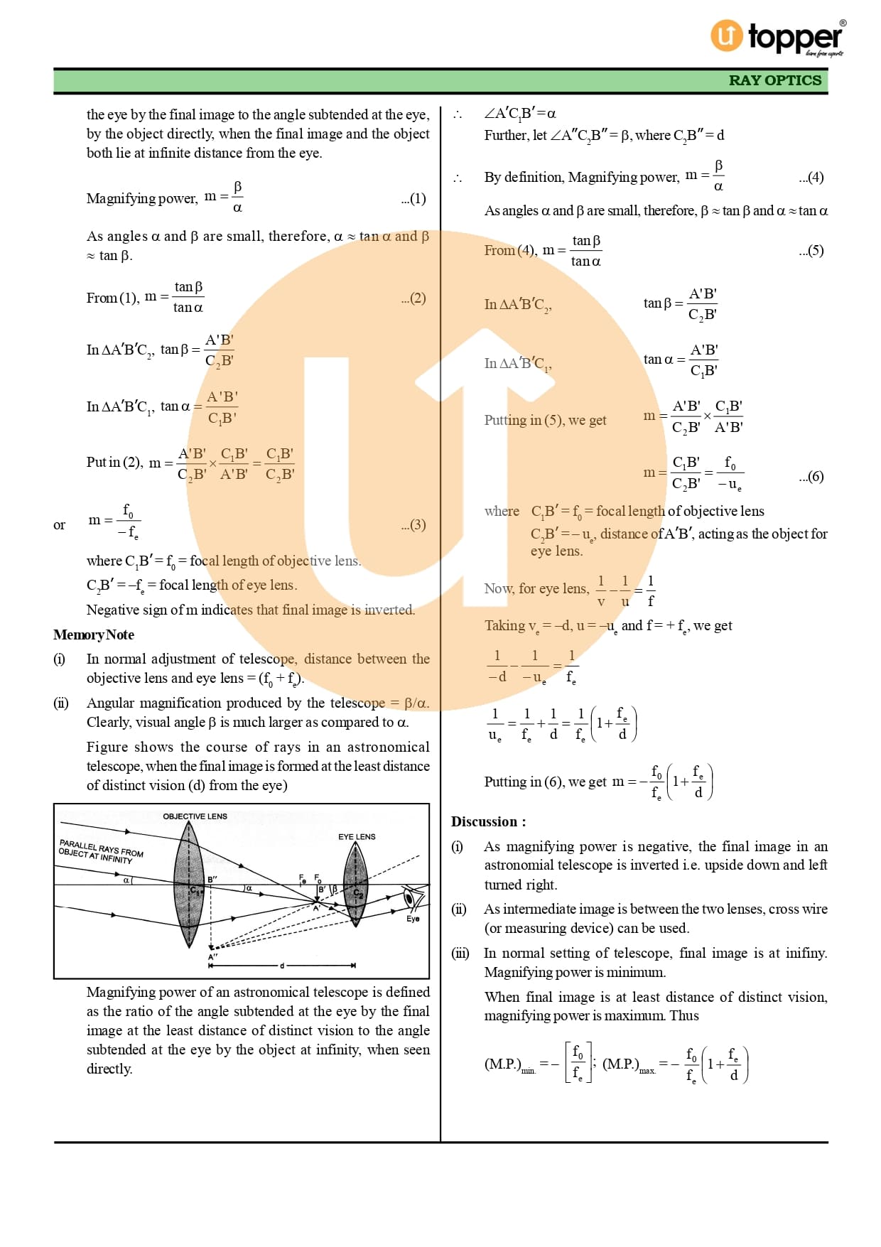 Class 12 Physics CBSE Revision Notes 9 – Ray Optics and Optical Instruments