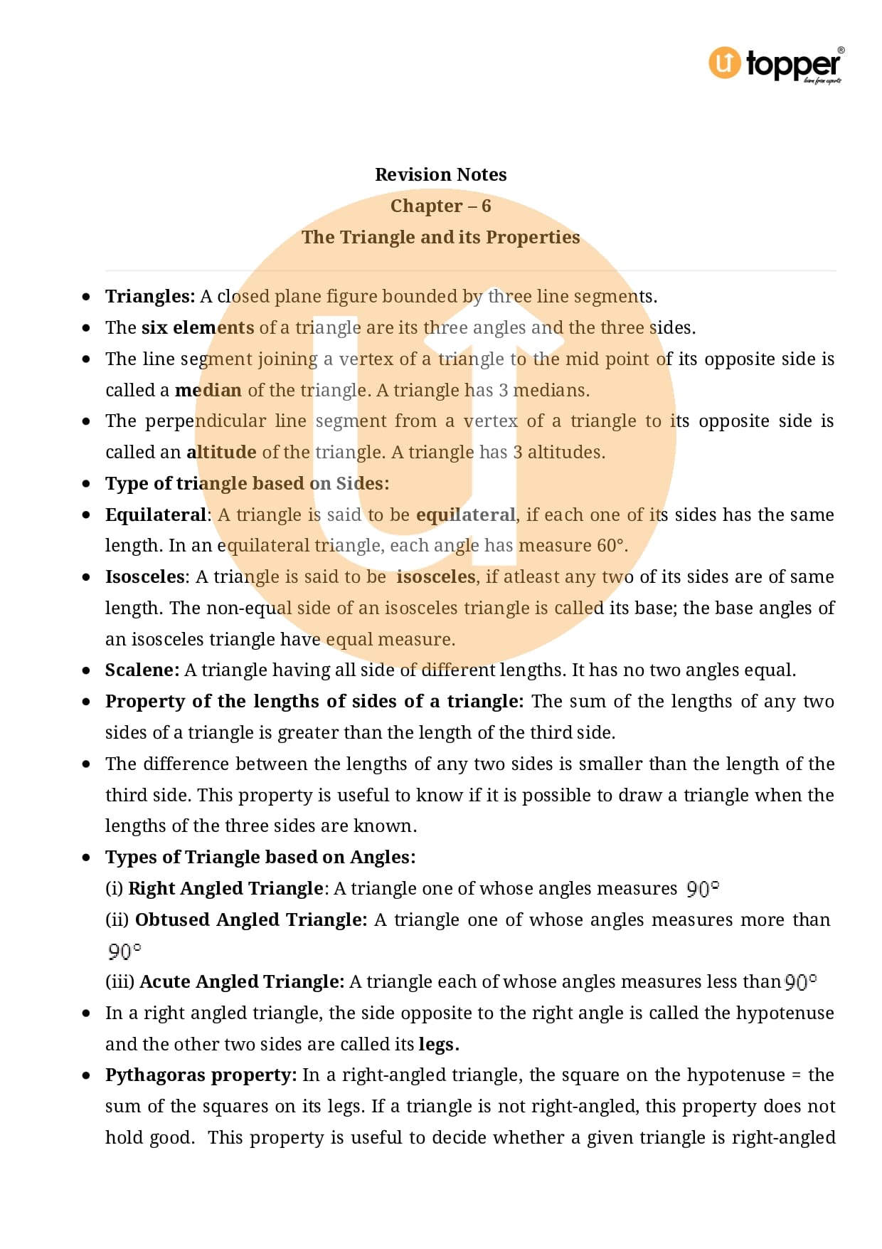 Class 7 Maths CBSE Revision Notes 6 – The Triangle and Its Properties