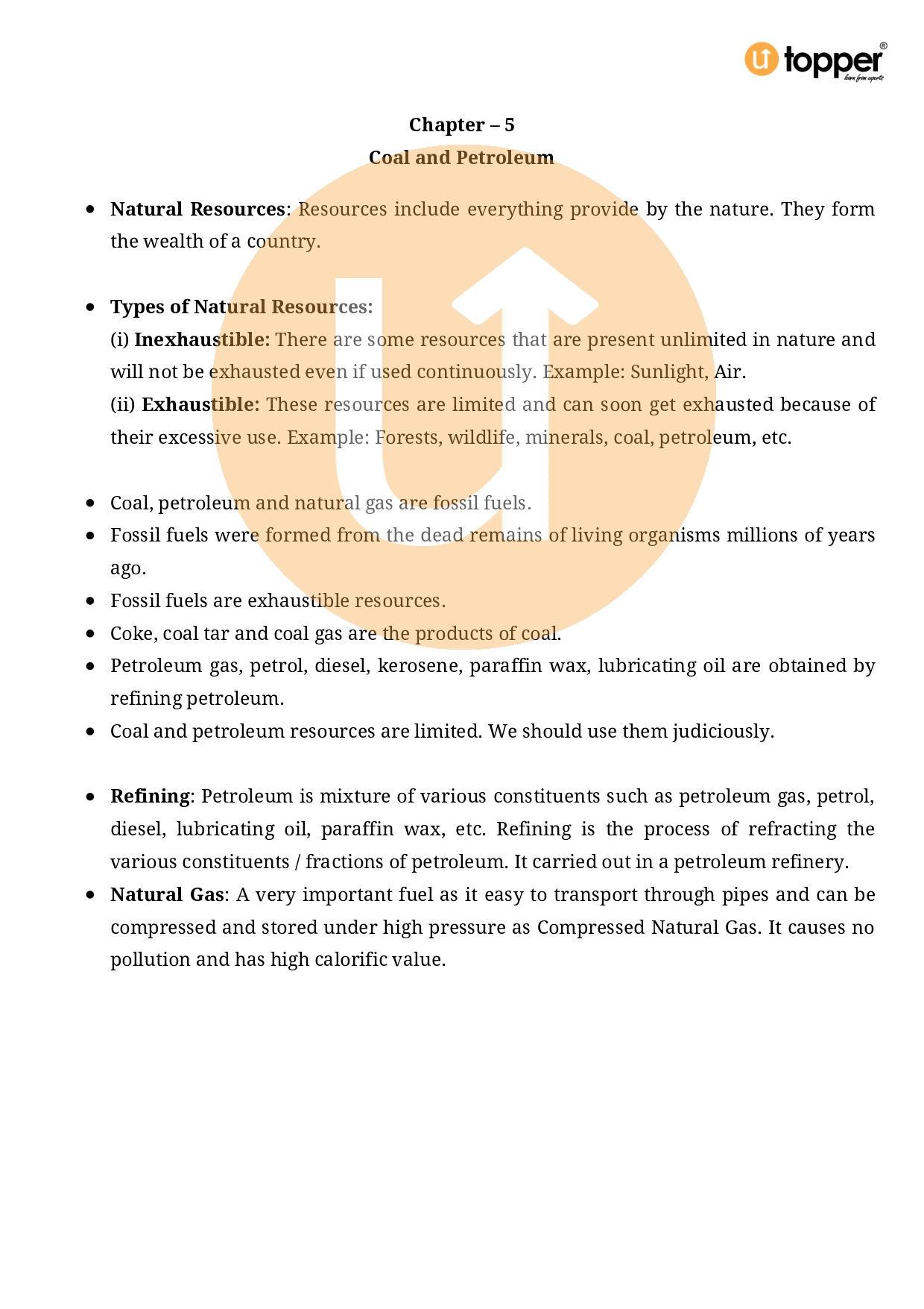 Class 8 Science CBSE Revision Notes 5 – Coal and Petroleum