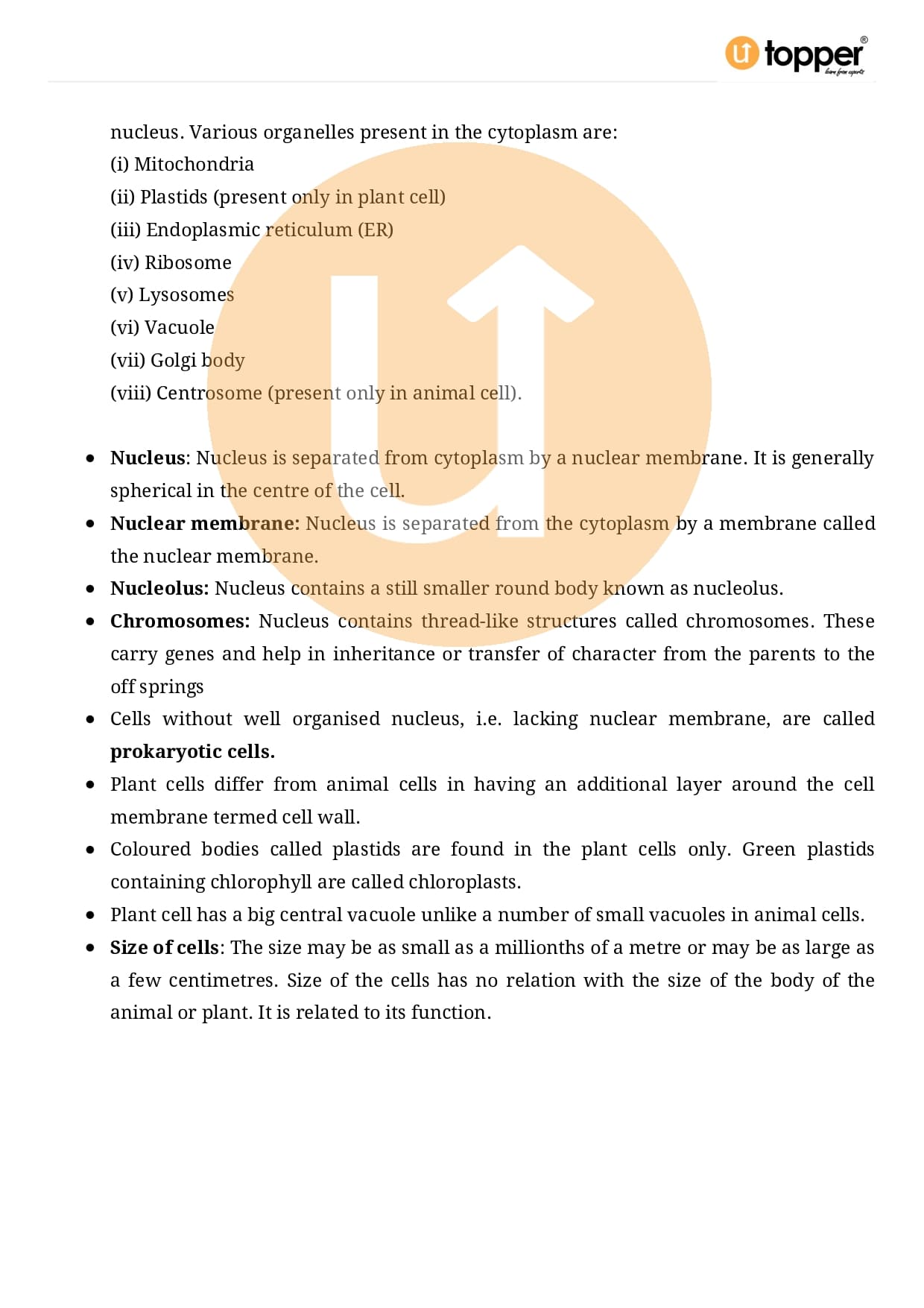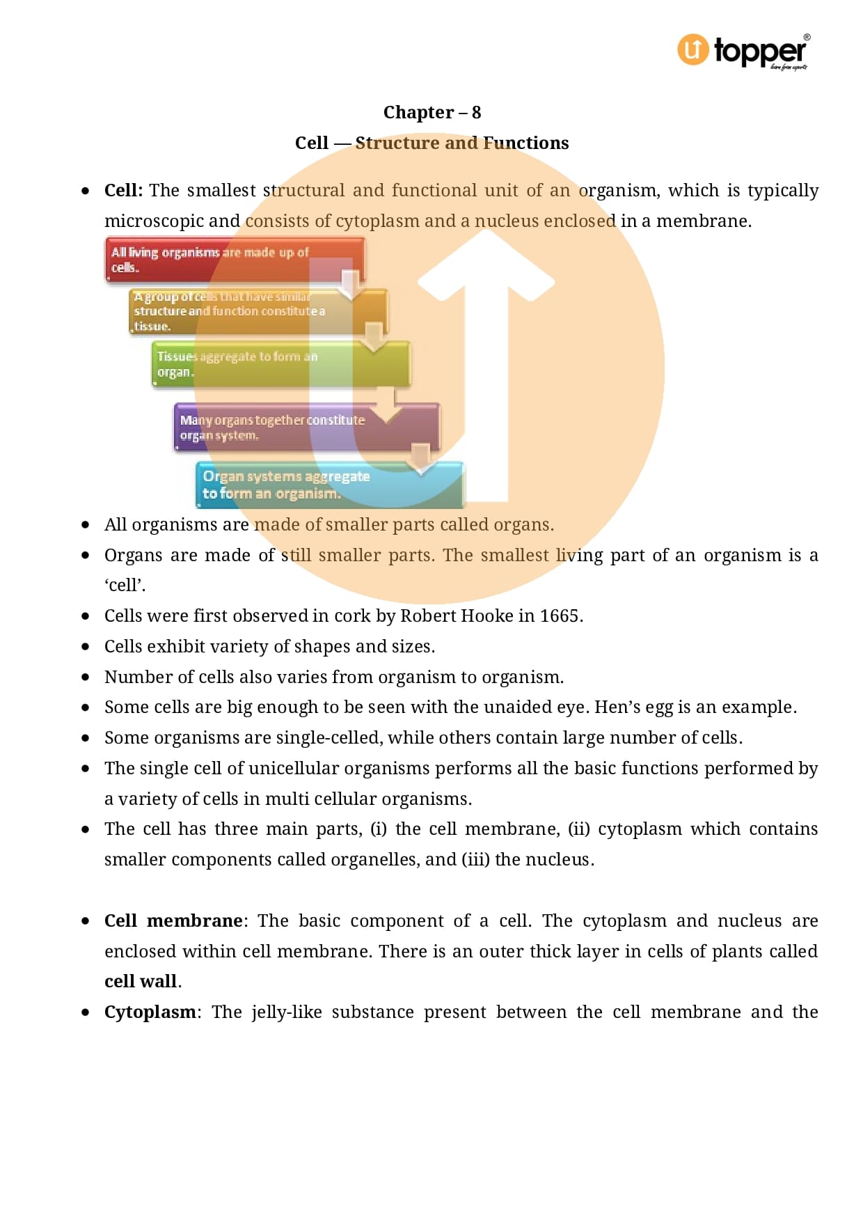 Class 8 Science CBSE Revision Notes 8 – Cell – Structure and Functions