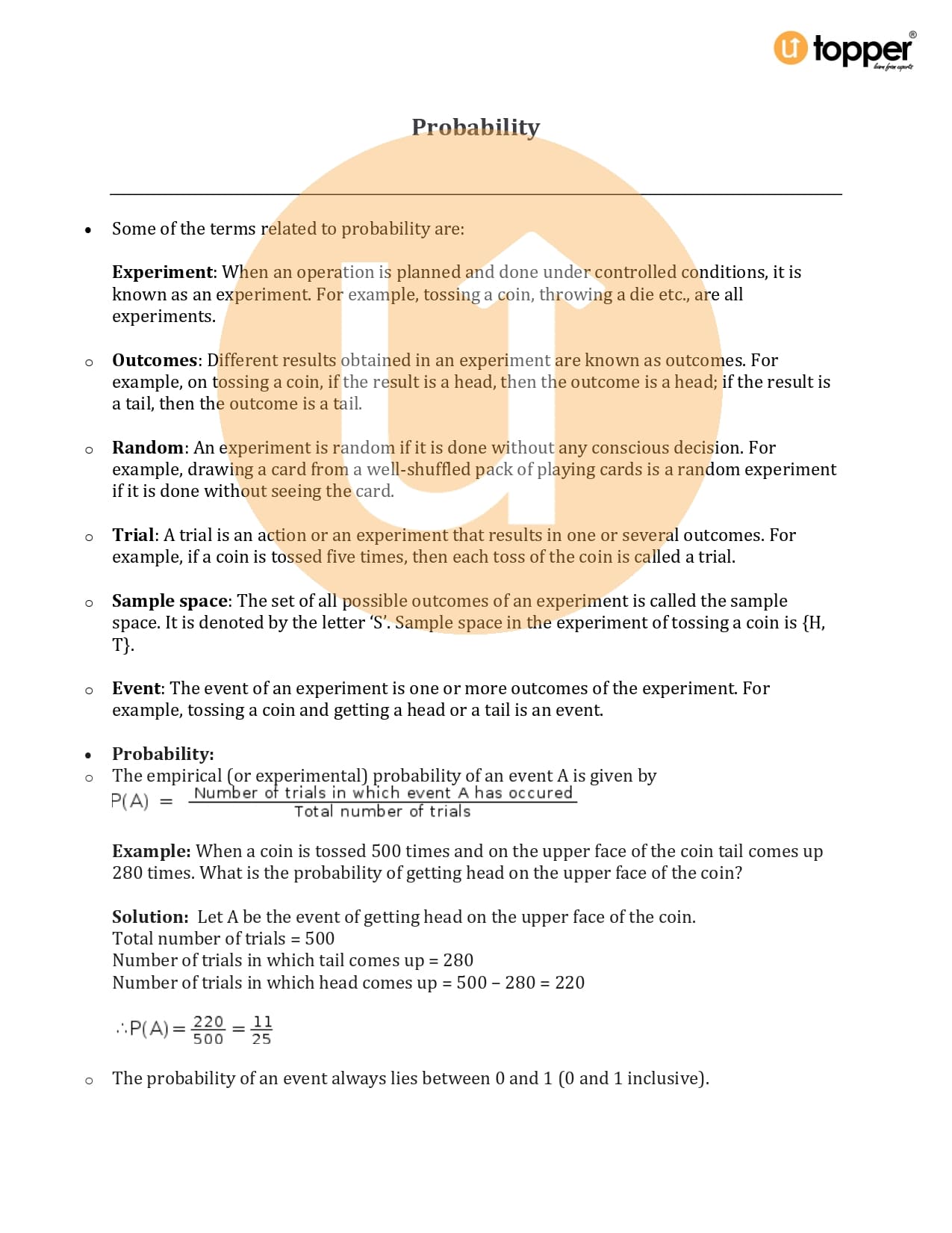 Class 9 Maths CBSE Revision Notes 15 – Probability