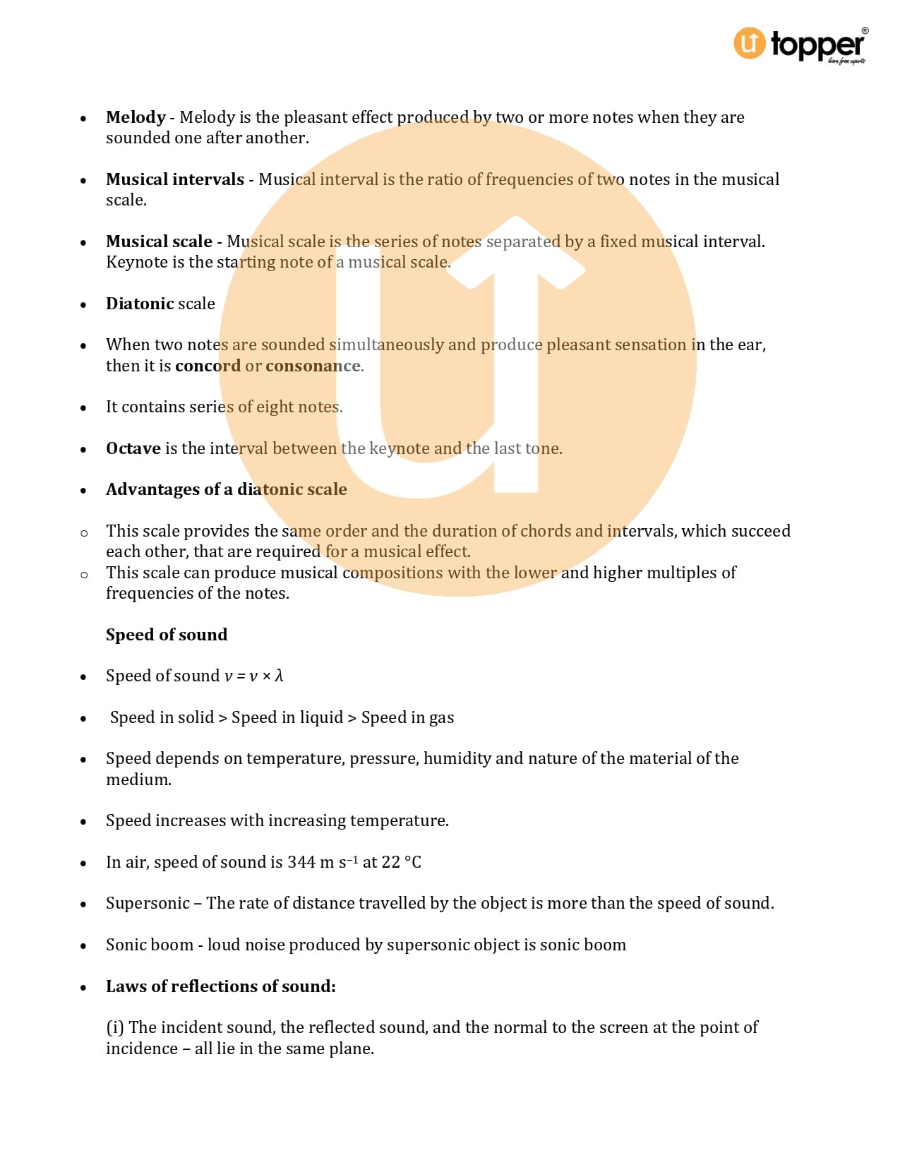 Class 9 Science CBSE Revision Notes 12 – Sound