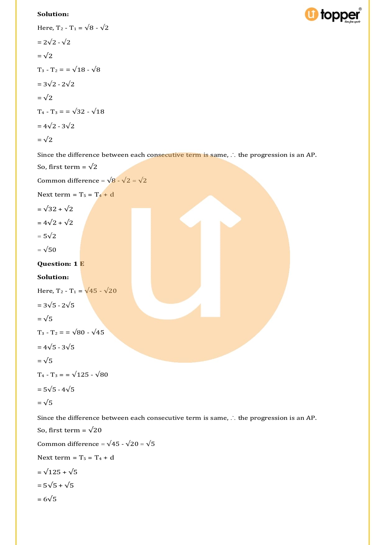 Advantages of RS Aggarwal Class 10 Solutions Chapter 11: Arithmetic Progression