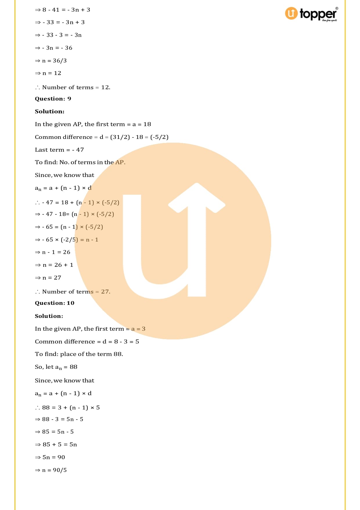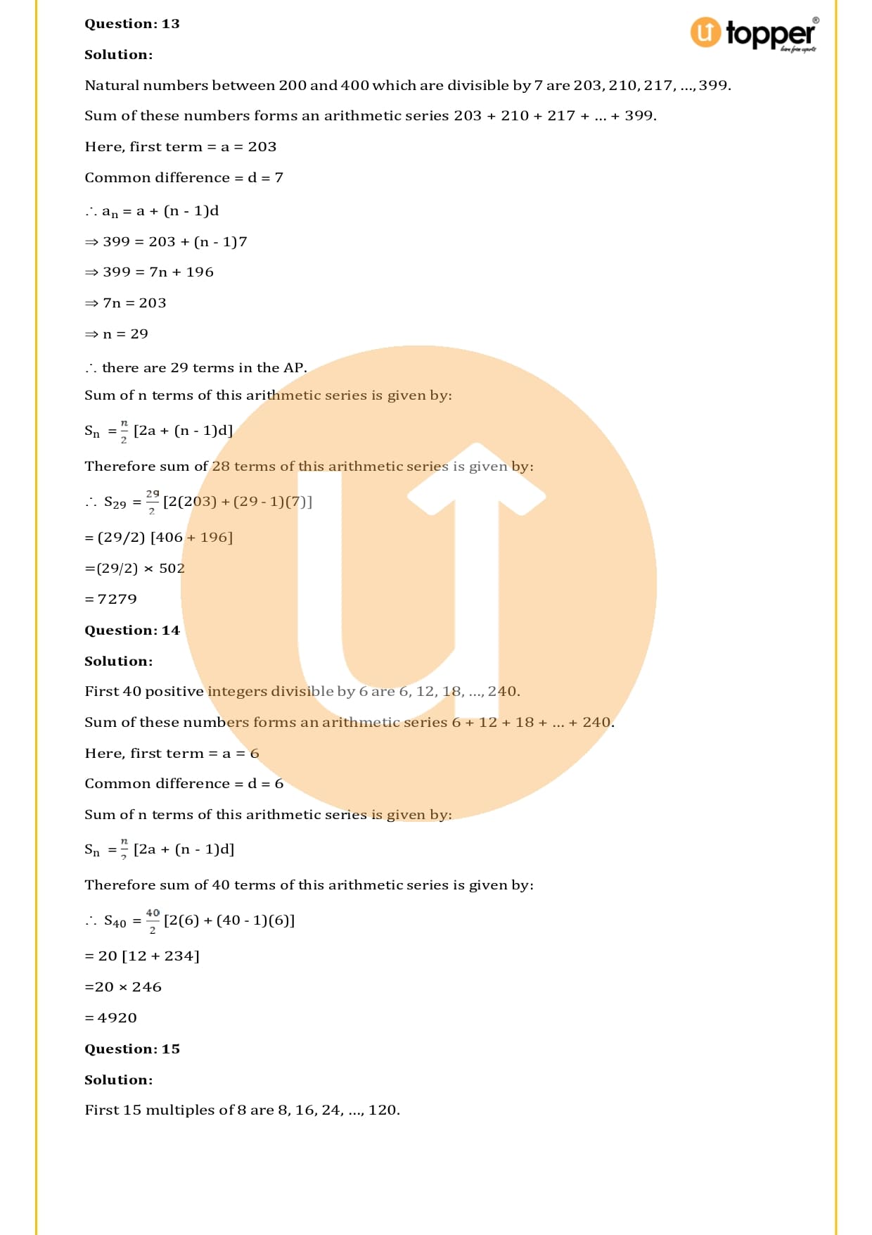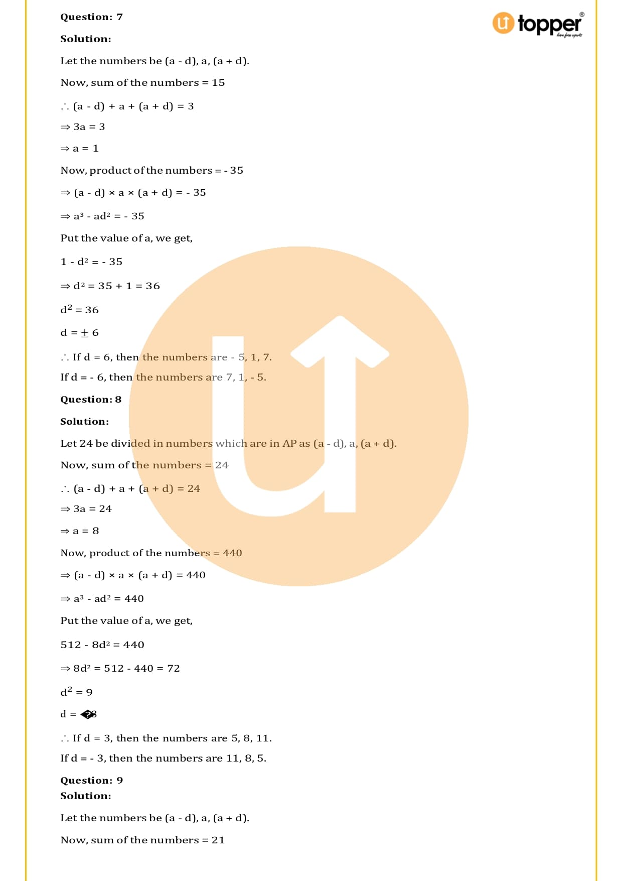 2. What is covered in Utopper’s RS Aggarwal Class 10 Solutions Chapter 11 Arithmetic Progression?
