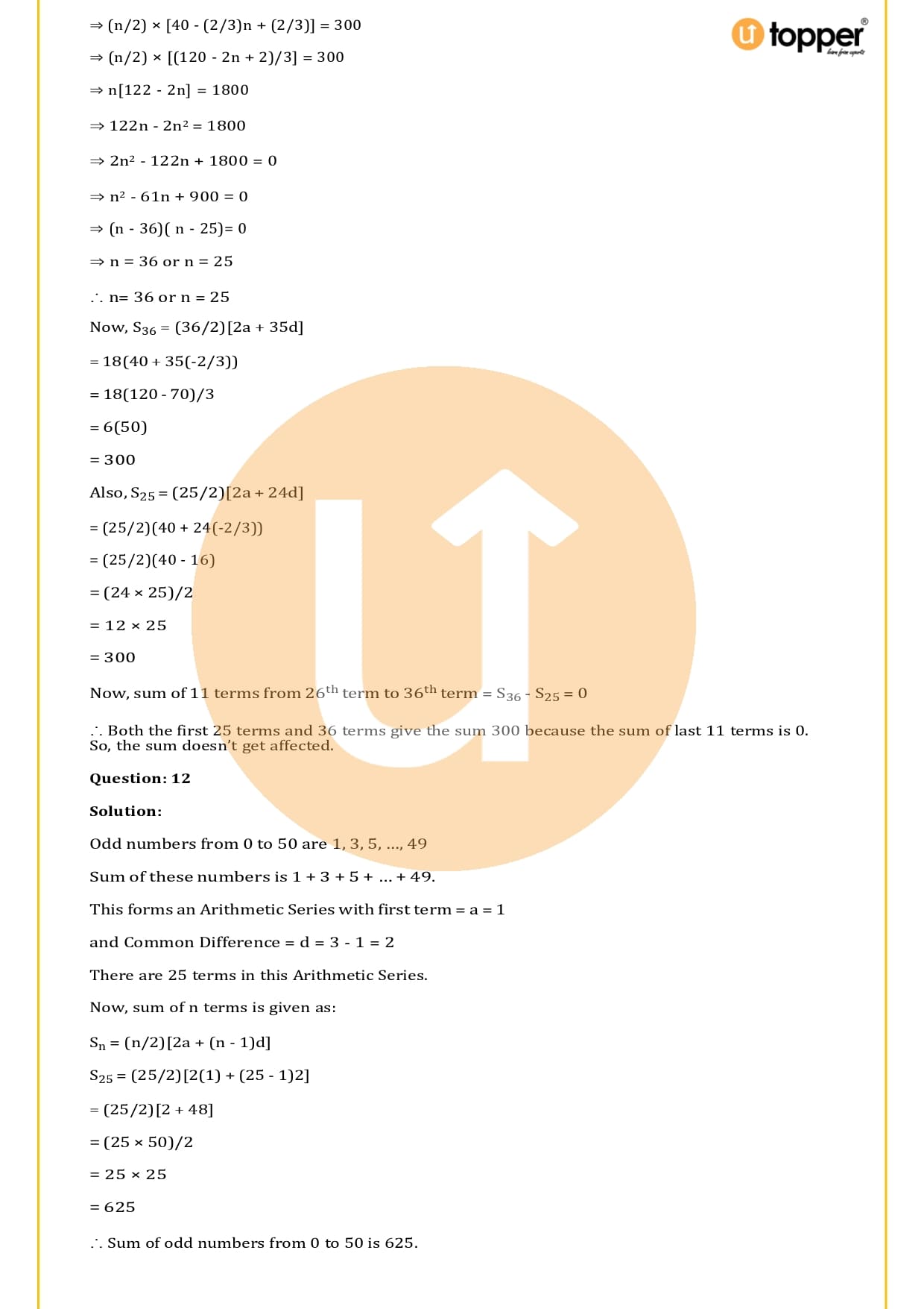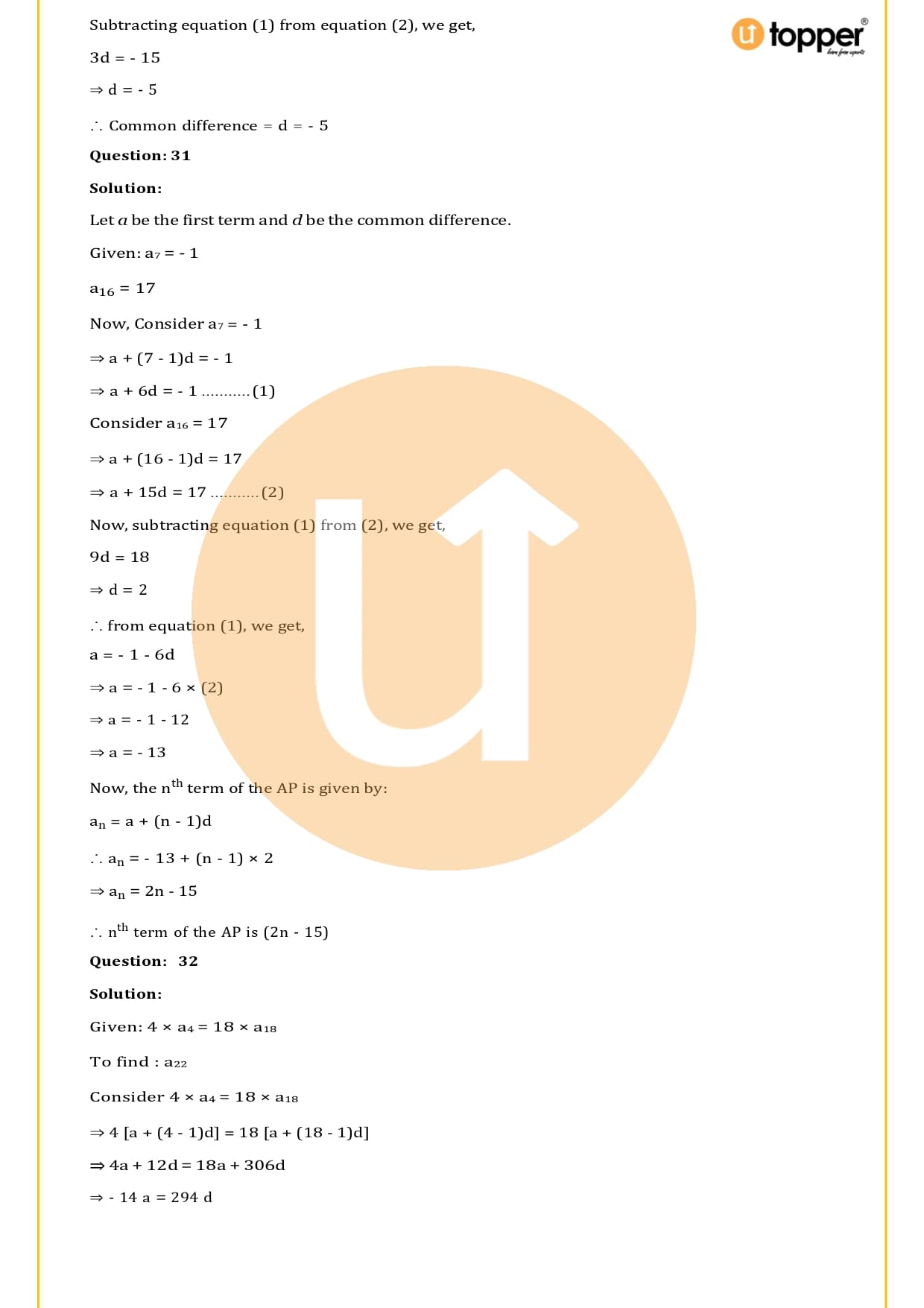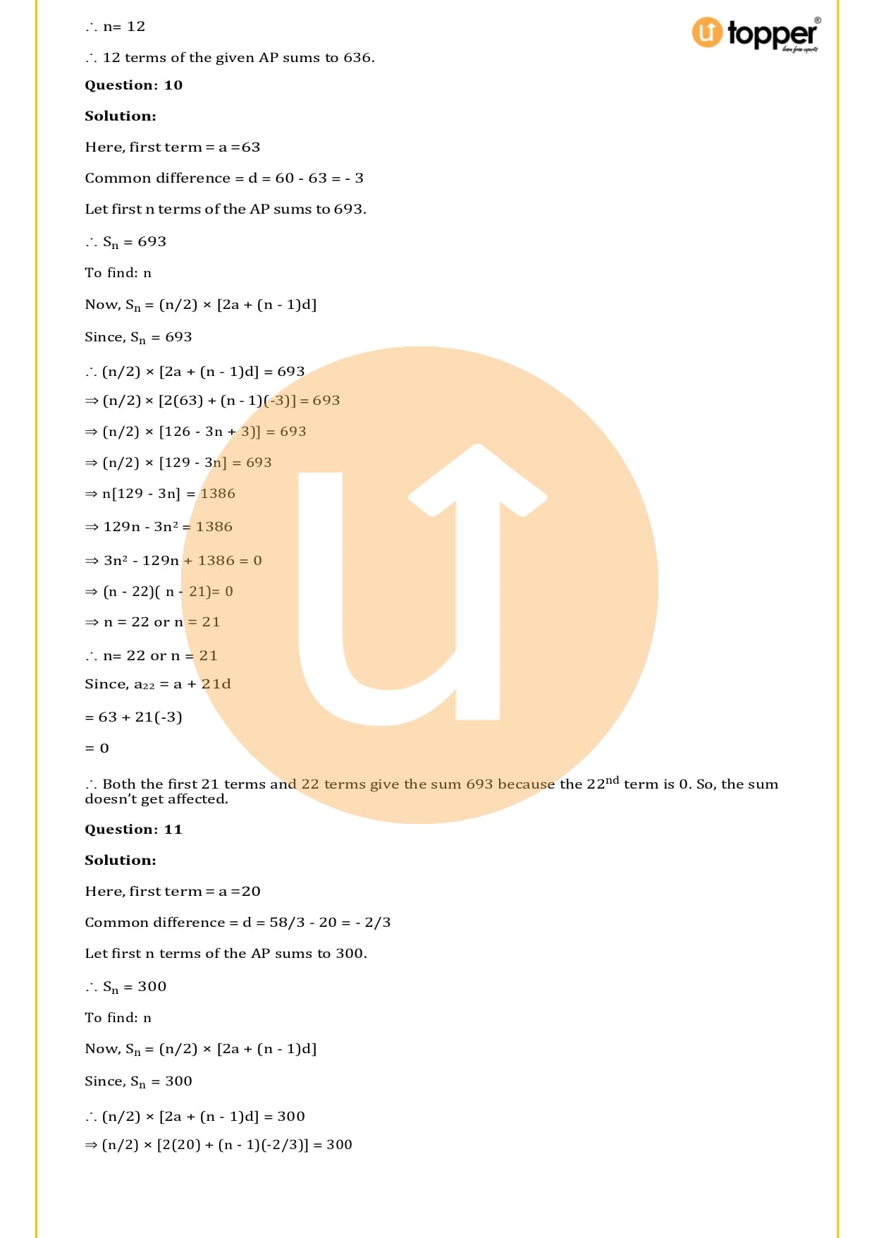 2. What is covered in Utopper’s RS Aggarwal Class 10 Solutions Chapter 11 Arithmetic Progression?