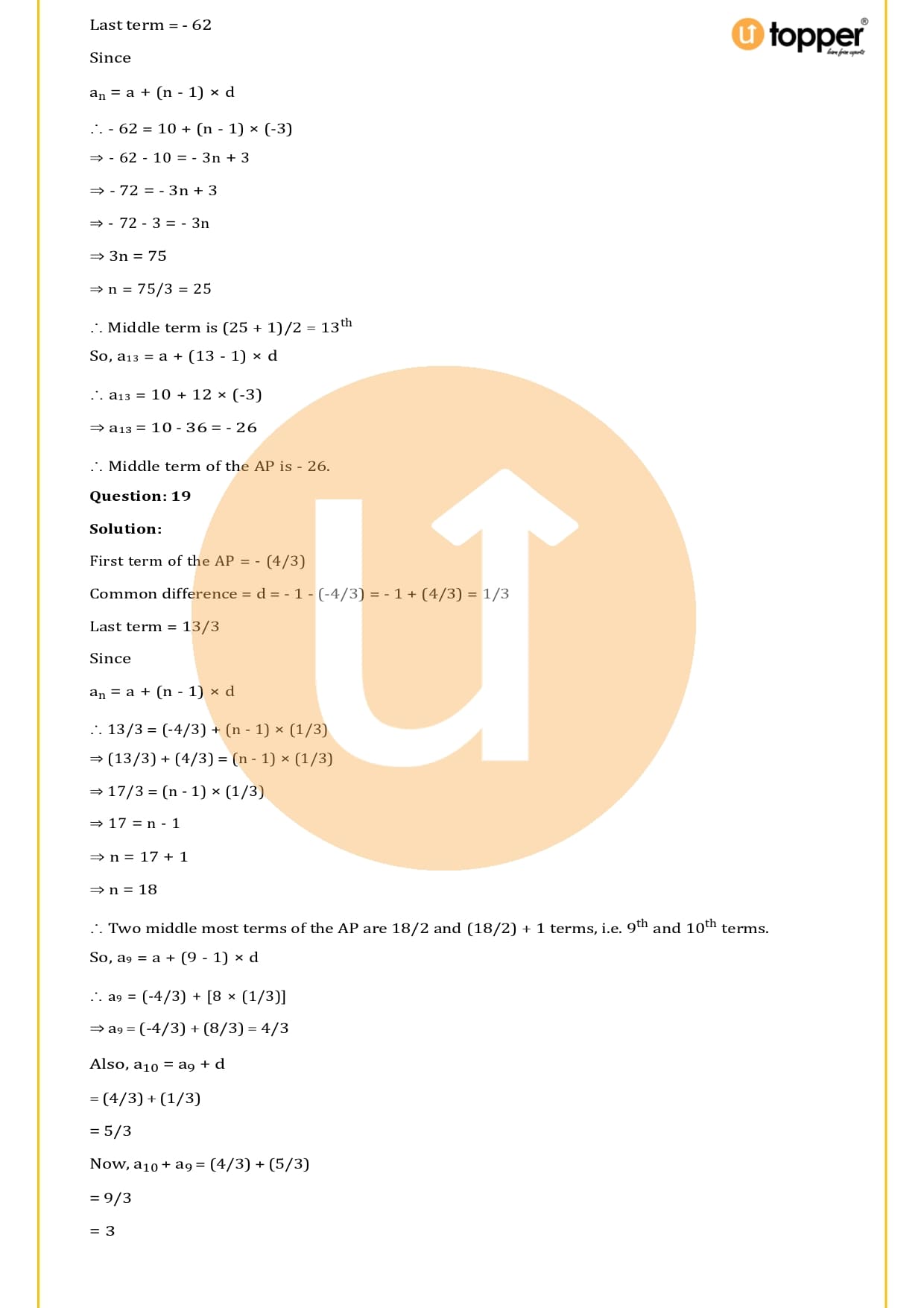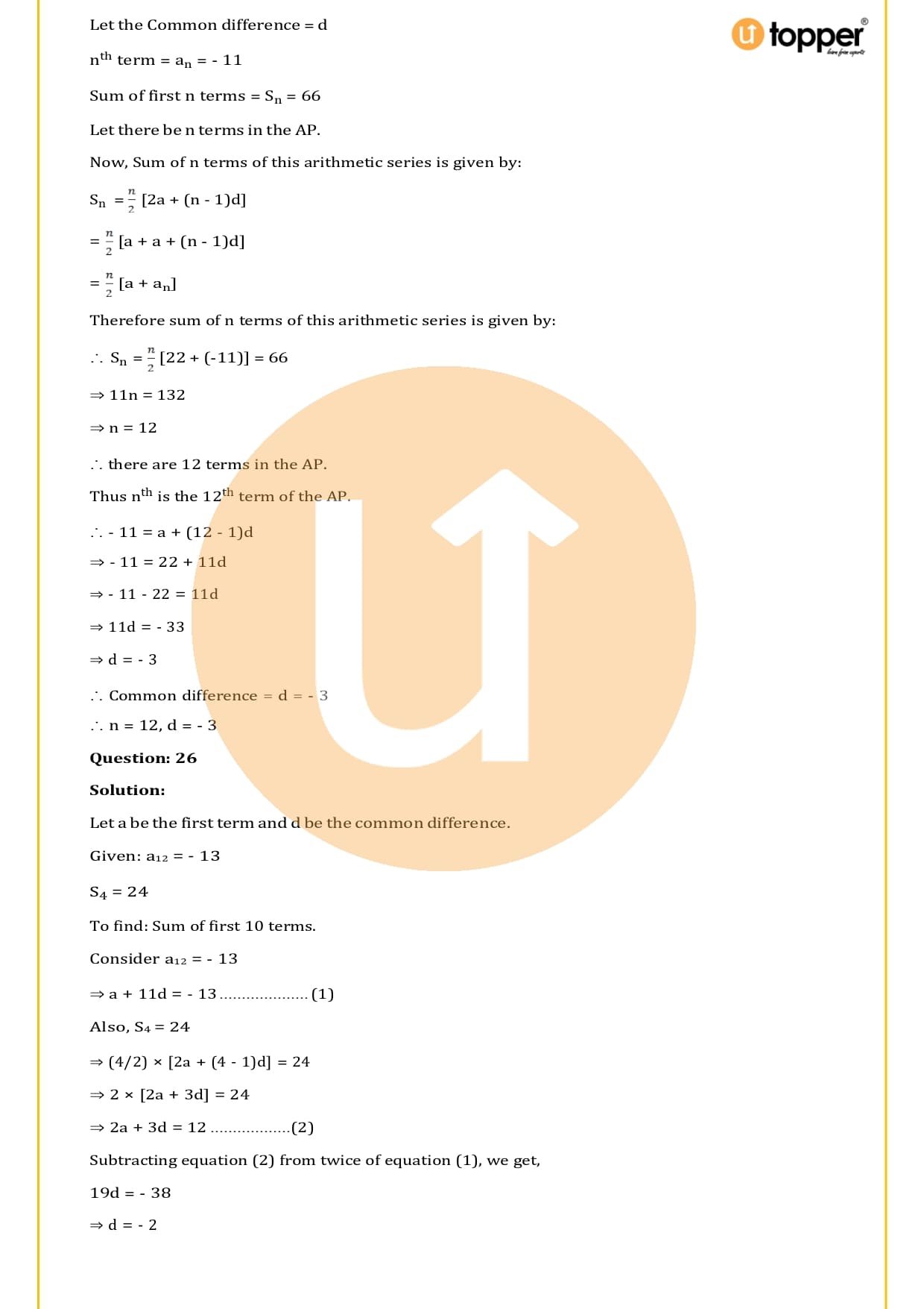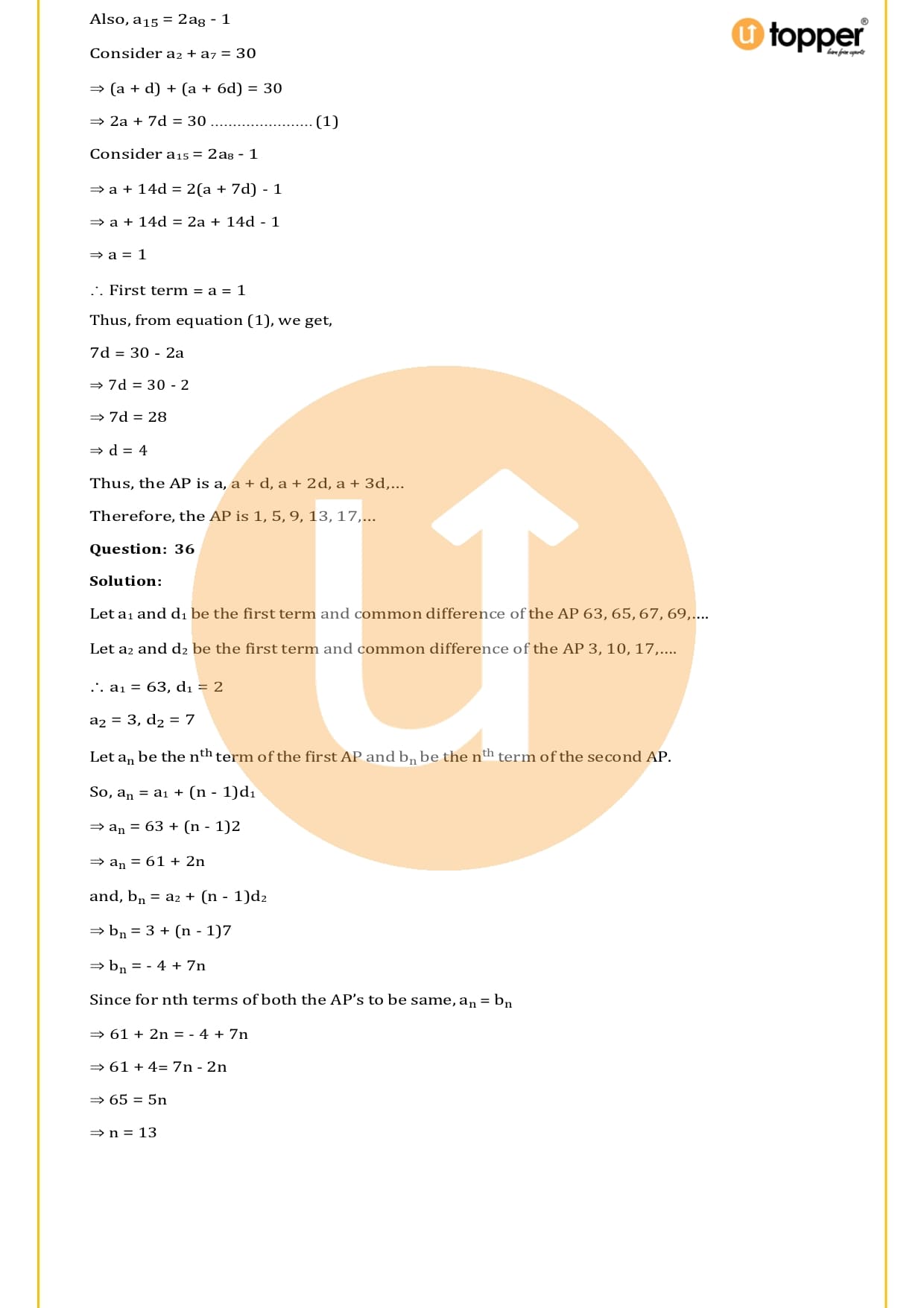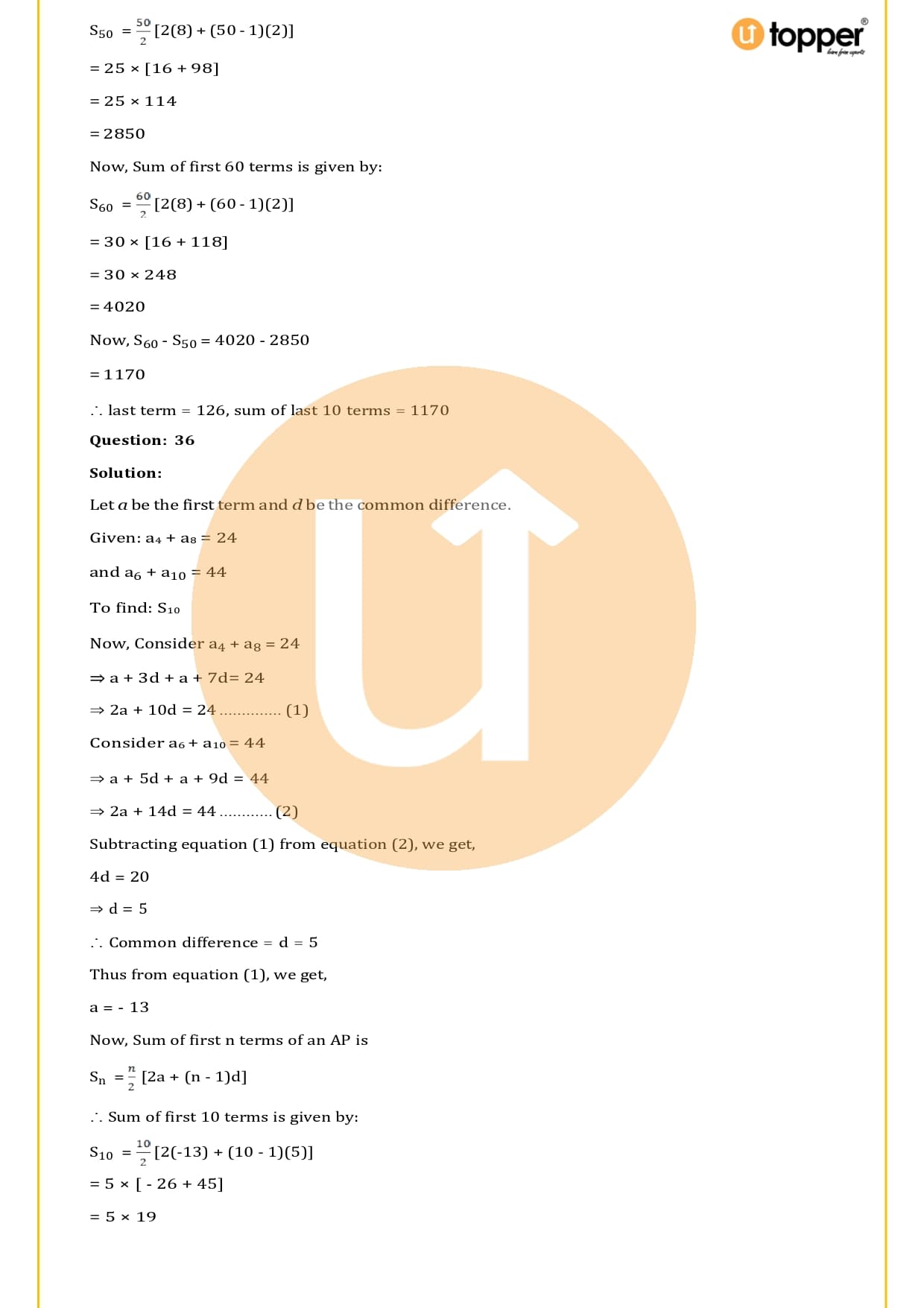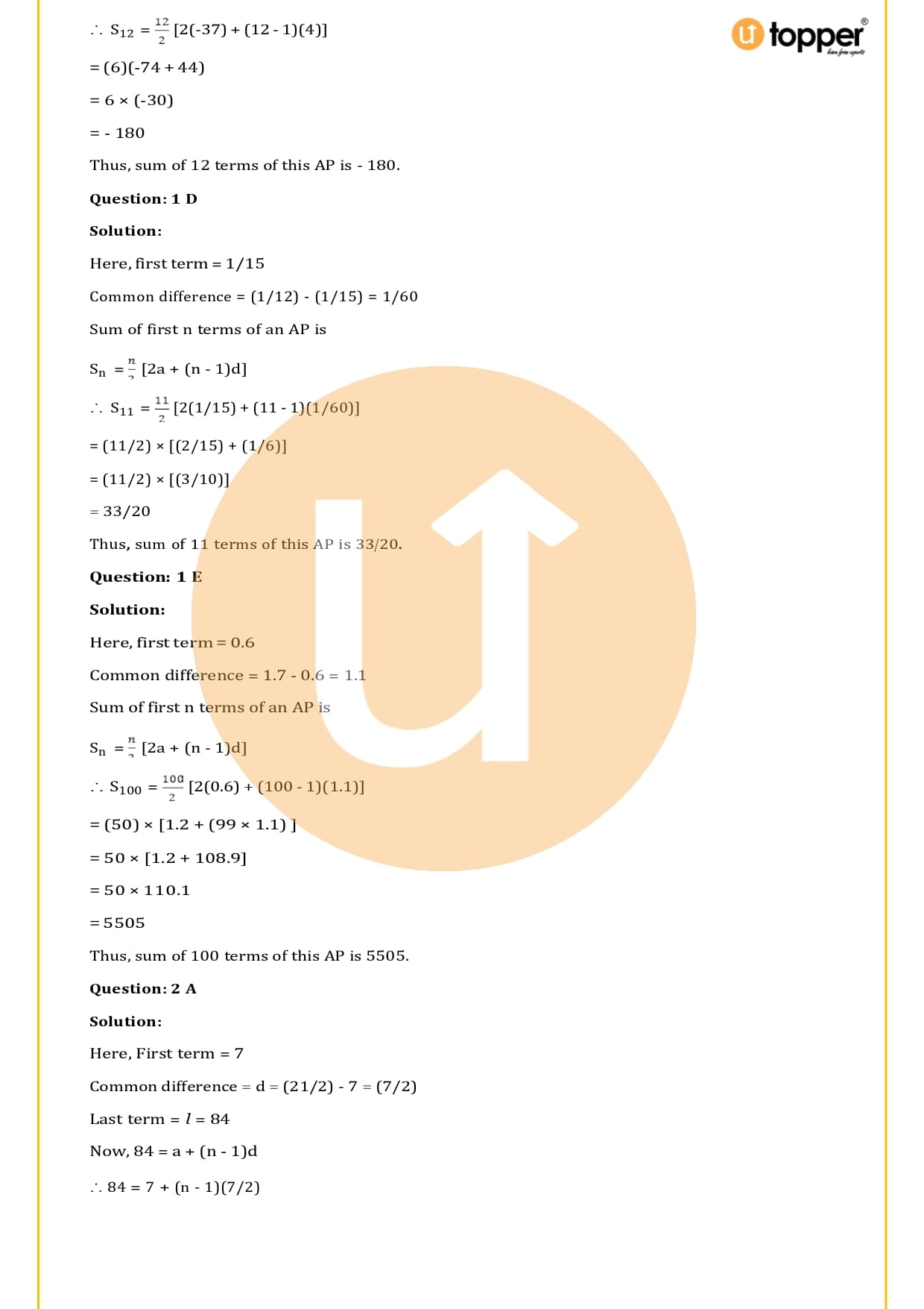 Ans – To get the most out of Utopper’s Arithmetic Progression Solutions for RS Aggarwal Class 10 Chapter 11, students should start studying these solutions as soon as they finish the lesson plan for that chapter. Some students think that it’s a good idea to keep solving these problems at the end of the year. But Math and CBSE experts have told them that they shouldn’t do this. Instead, it is better and more helpful for students to study both the textbook and these solutions at the same time.