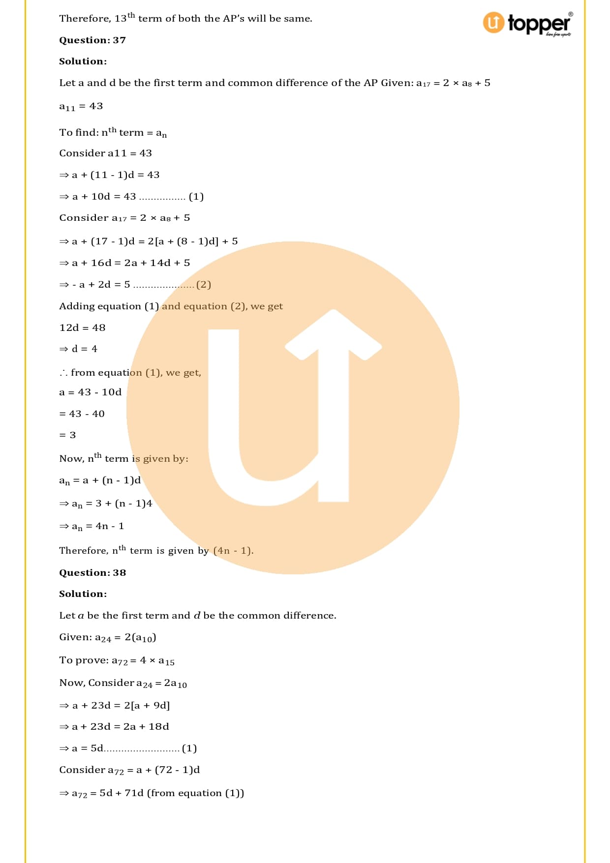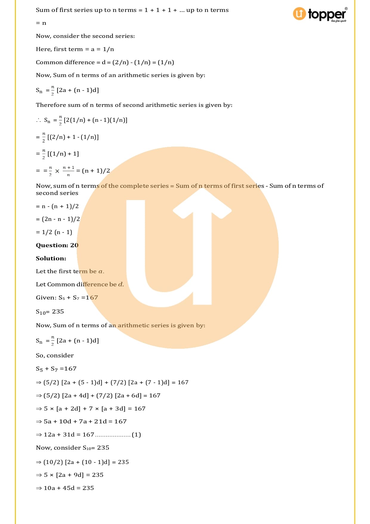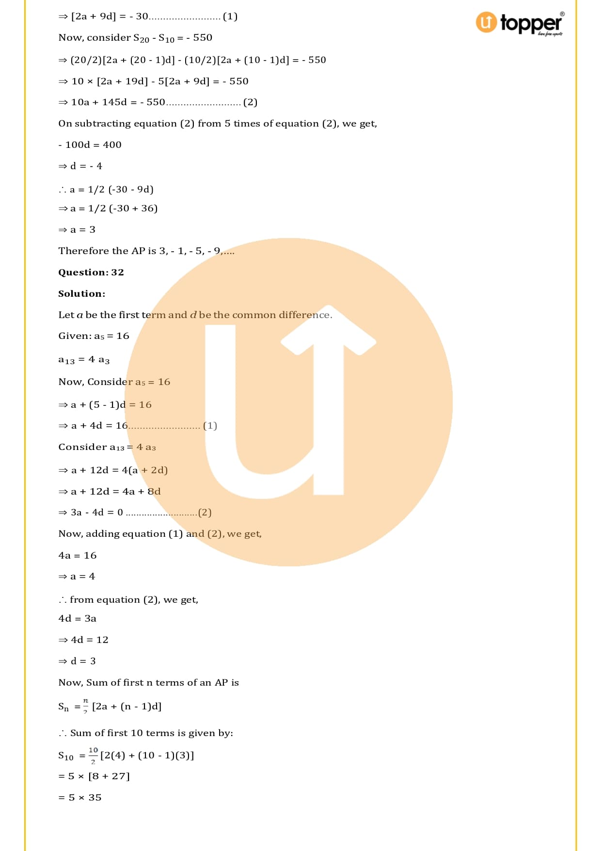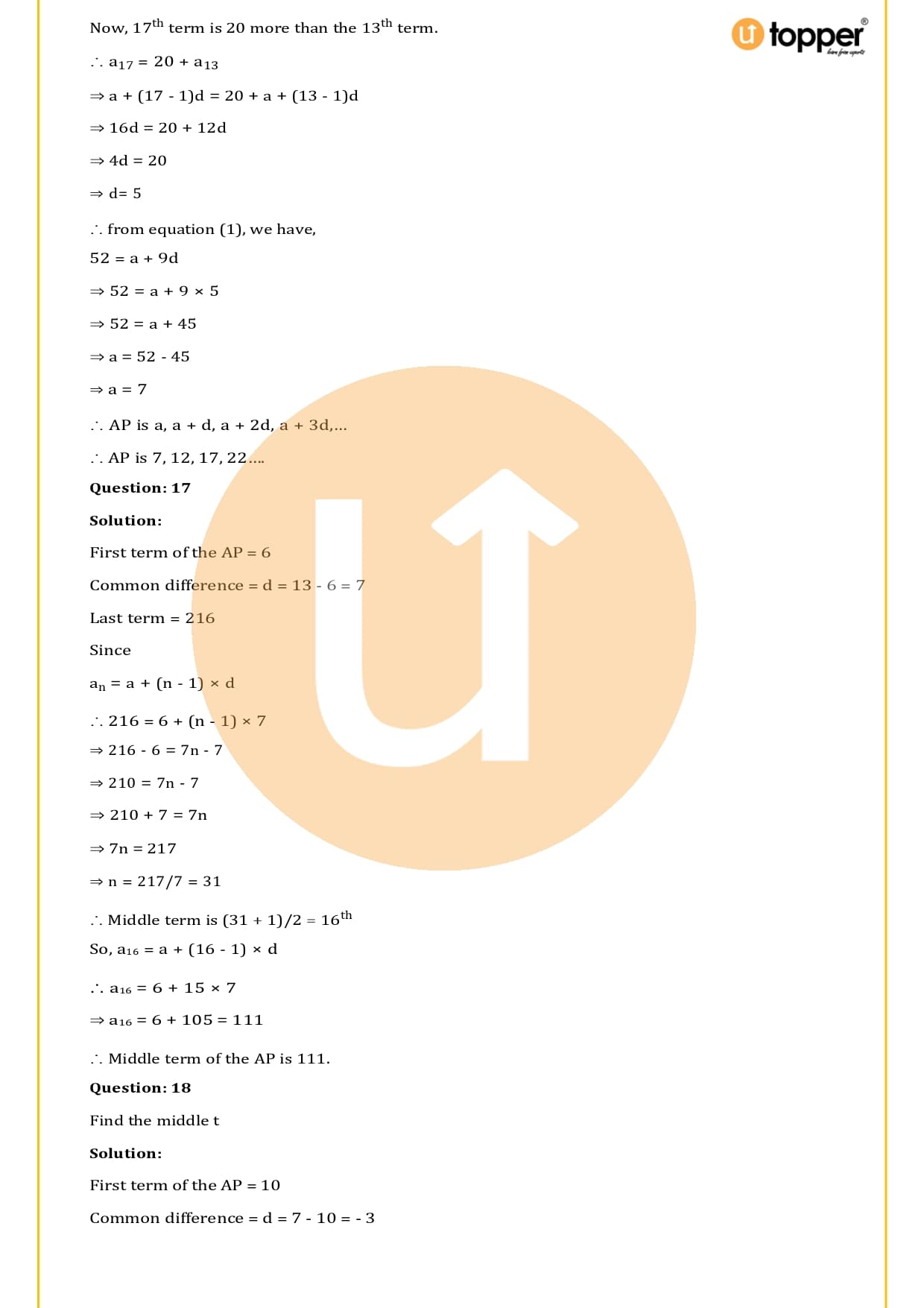Ans – To get the most out of Utopper’s Arithmetic Progression Solutions for RS Aggarwal Class 10 Chapter 11, students should start studying these solutions as soon as they finish the lesson plan for that chapter. Some students think that it’s a good idea to keep solving these problems at the end of the year. But Math and CBSE experts have told them that they shouldn’t do this. Instead, it is better and more helpful for students to study both the textbook and these solutions at the same time.