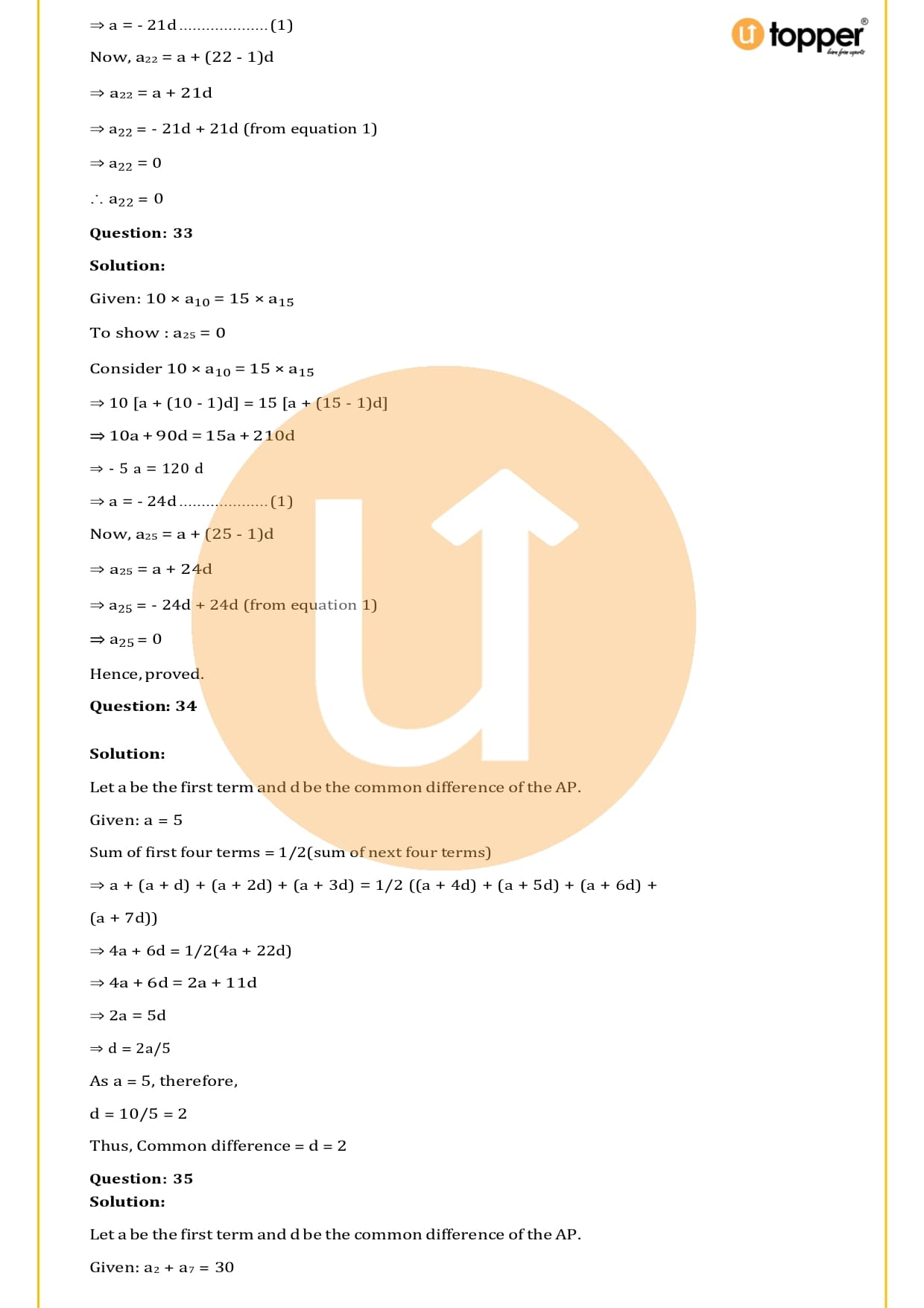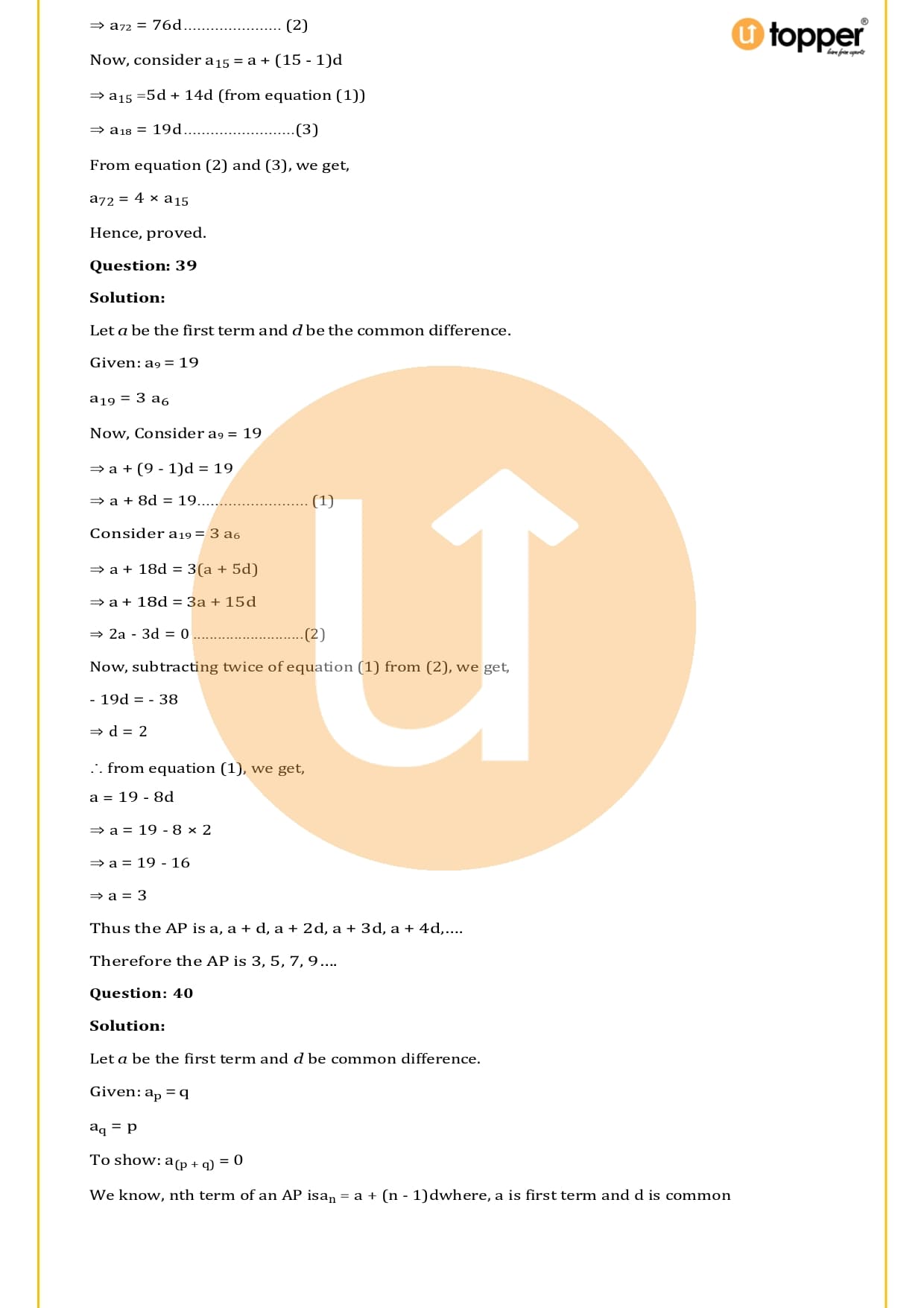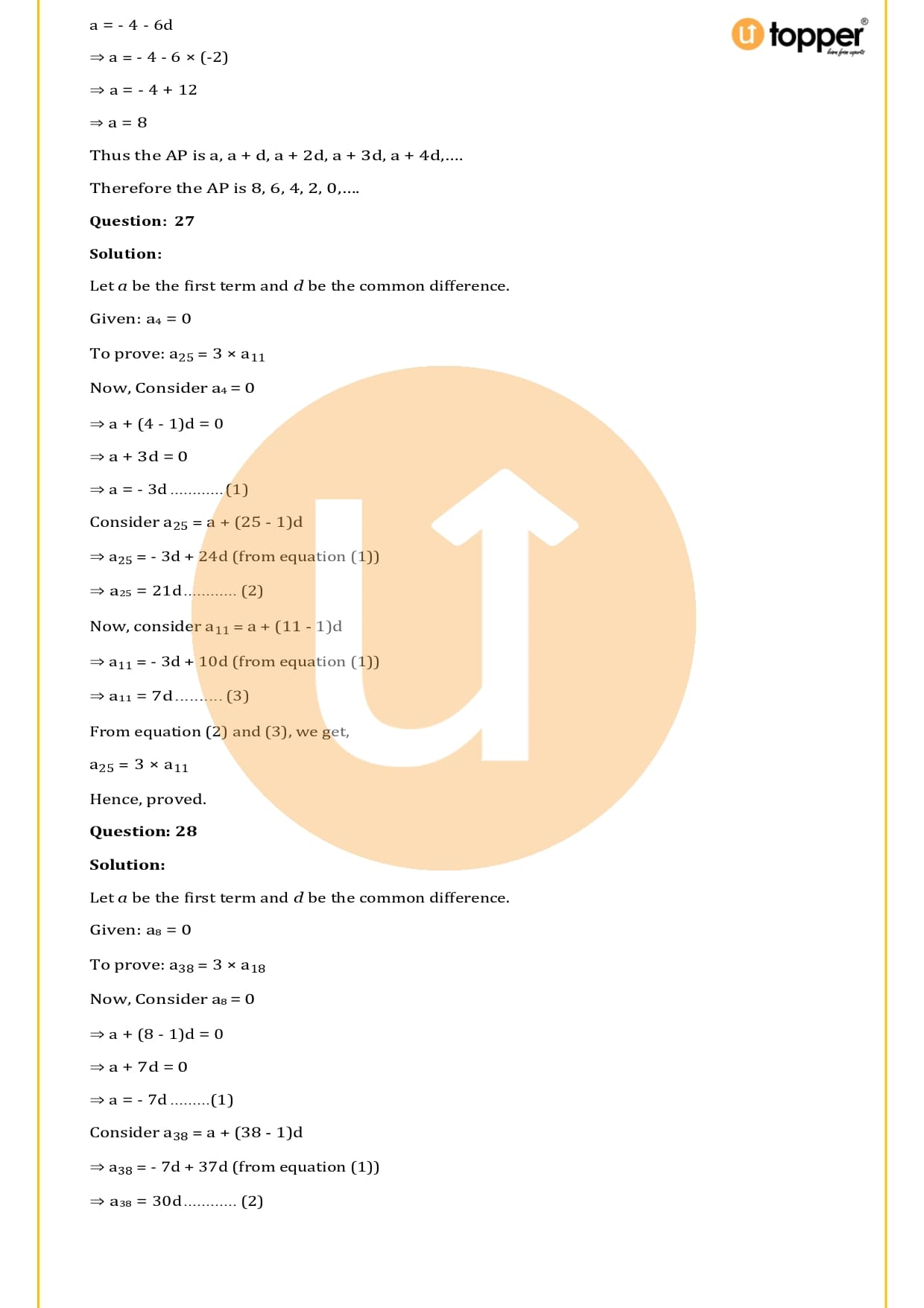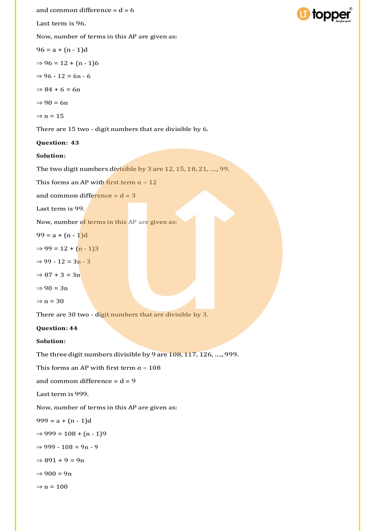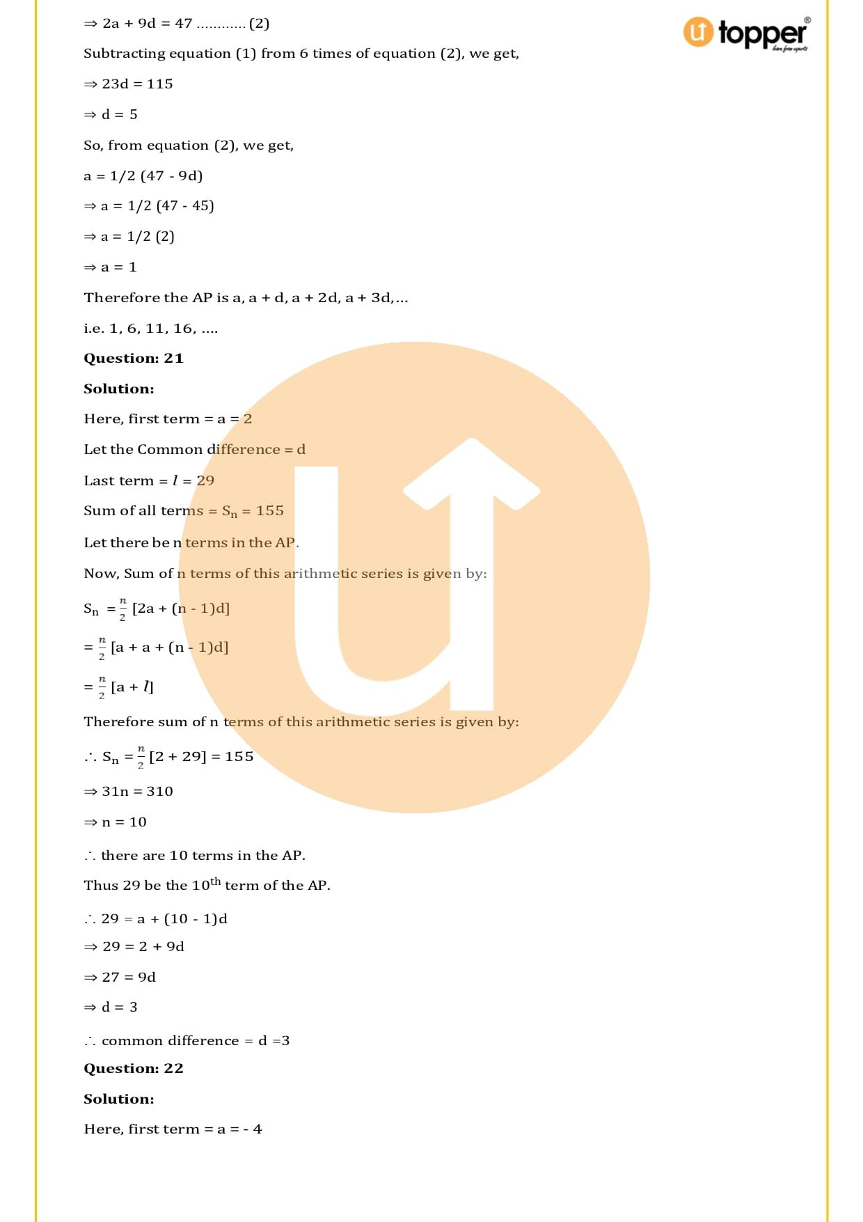 Ans – To get the most out of Utopper’s Arithmetic Progression Solutions for RS Aggarwal Class 10 Chapter 11, students should start studying these solutions as soon as they finish the lesson plan for that chapter. Some students think that it’s a good idea to keep solving these problems at the end of the year. But Math and CBSE experts have told them that they shouldn’t do this. Instead, it is better and more helpful for students to study both the textbook and these solutions at the same time.