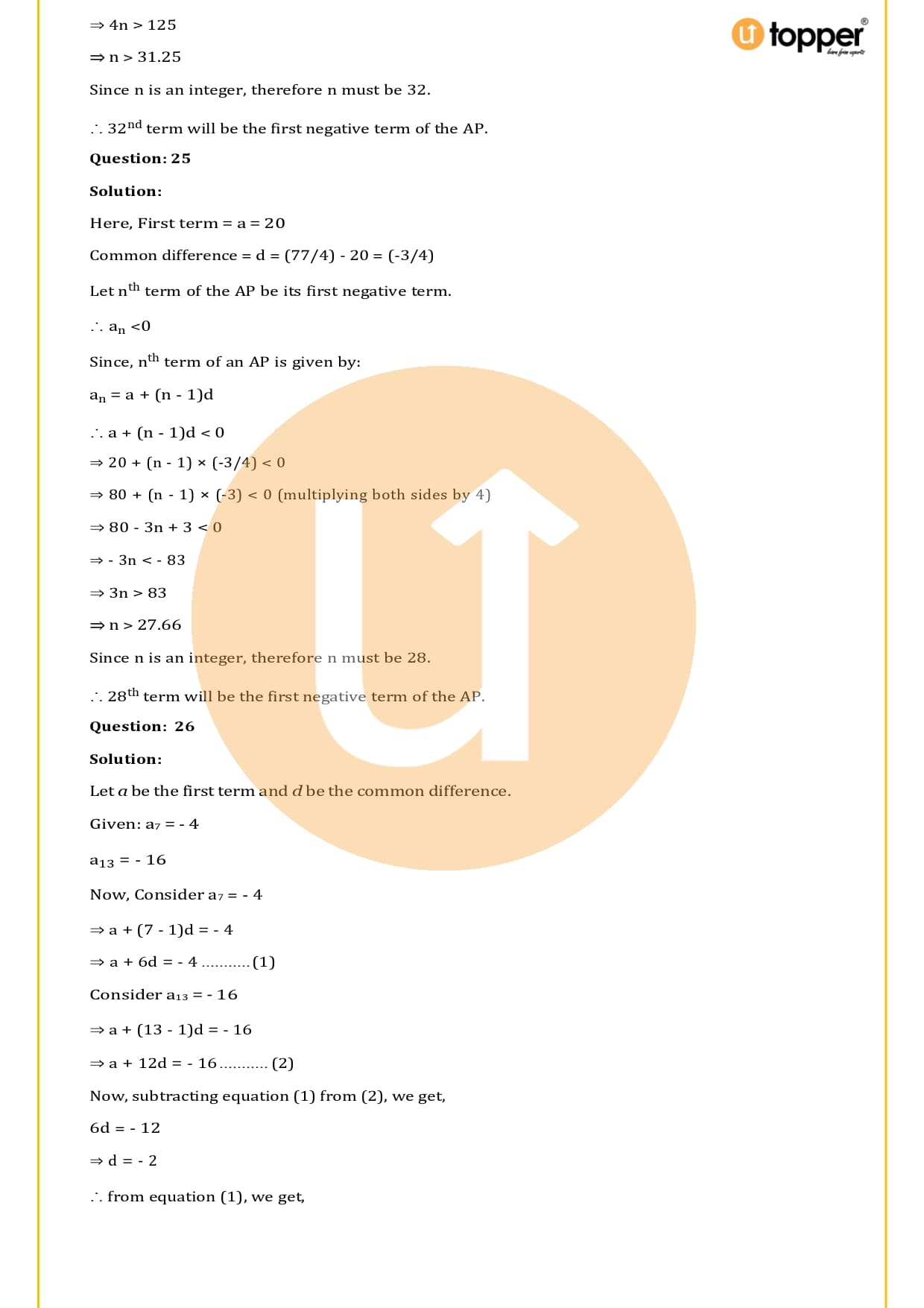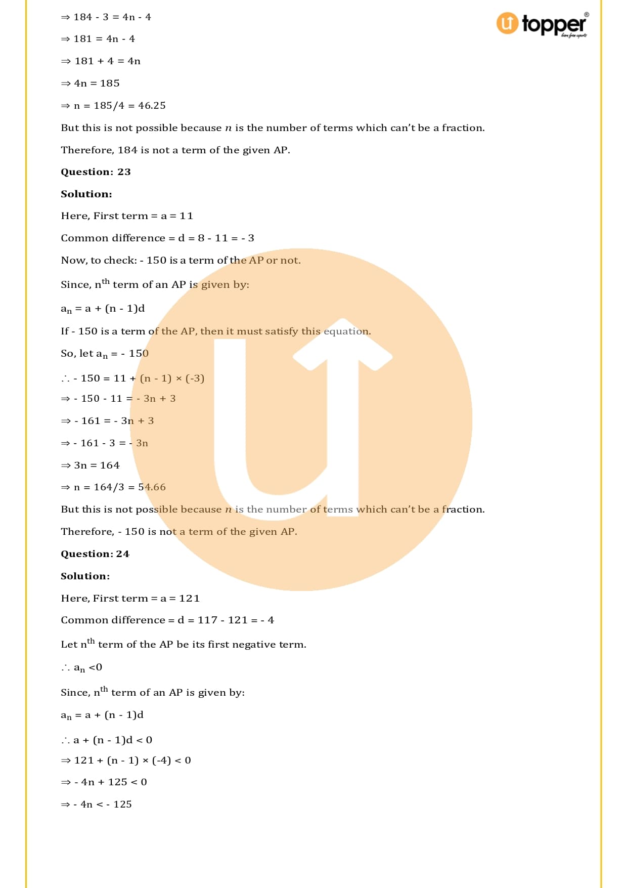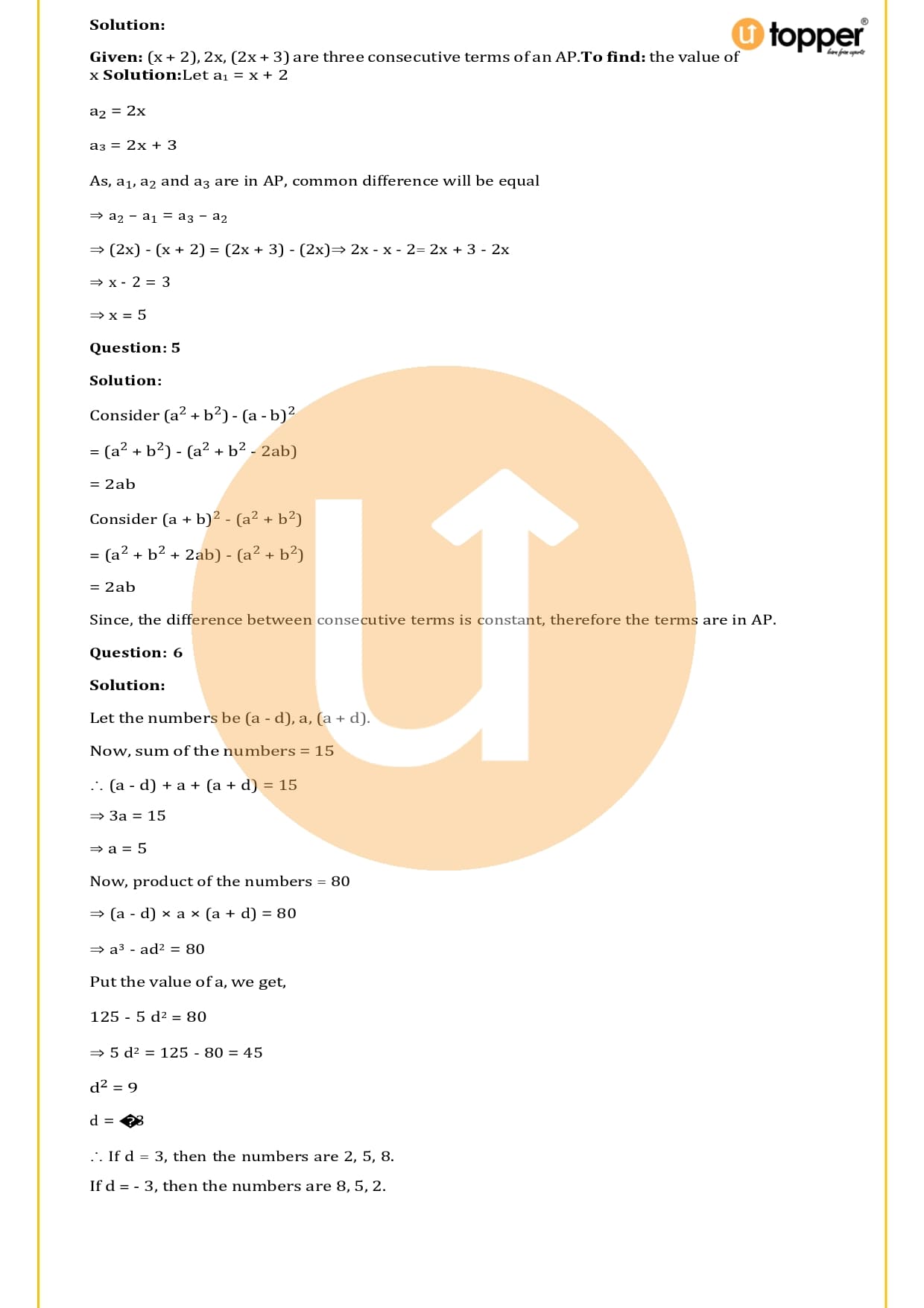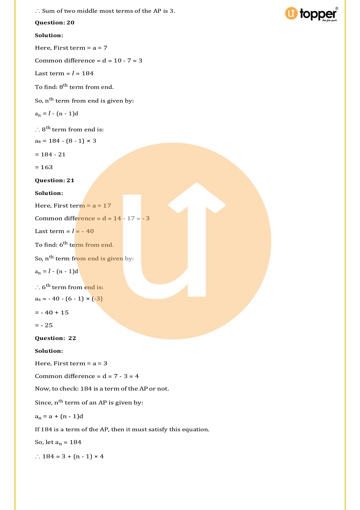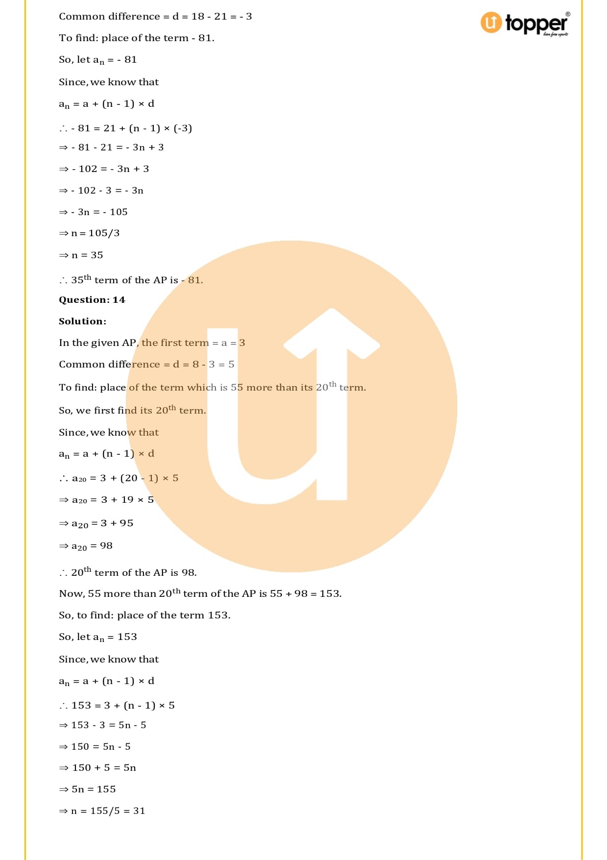 Ans – To get the most out of Utopper’s Arithmetic Progression Solutions for RS Aggarwal Class 10 Chapter 11, students should start studying these solutions as soon as they finish the lesson plan for that chapter. Some students think that it’s a good idea to keep solving these problems at the end of the year. But Math and CBSE experts have told them that they shouldn’t do this. Instead, it is better and more helpful for students to study both the textbook and these solutions at the same time.