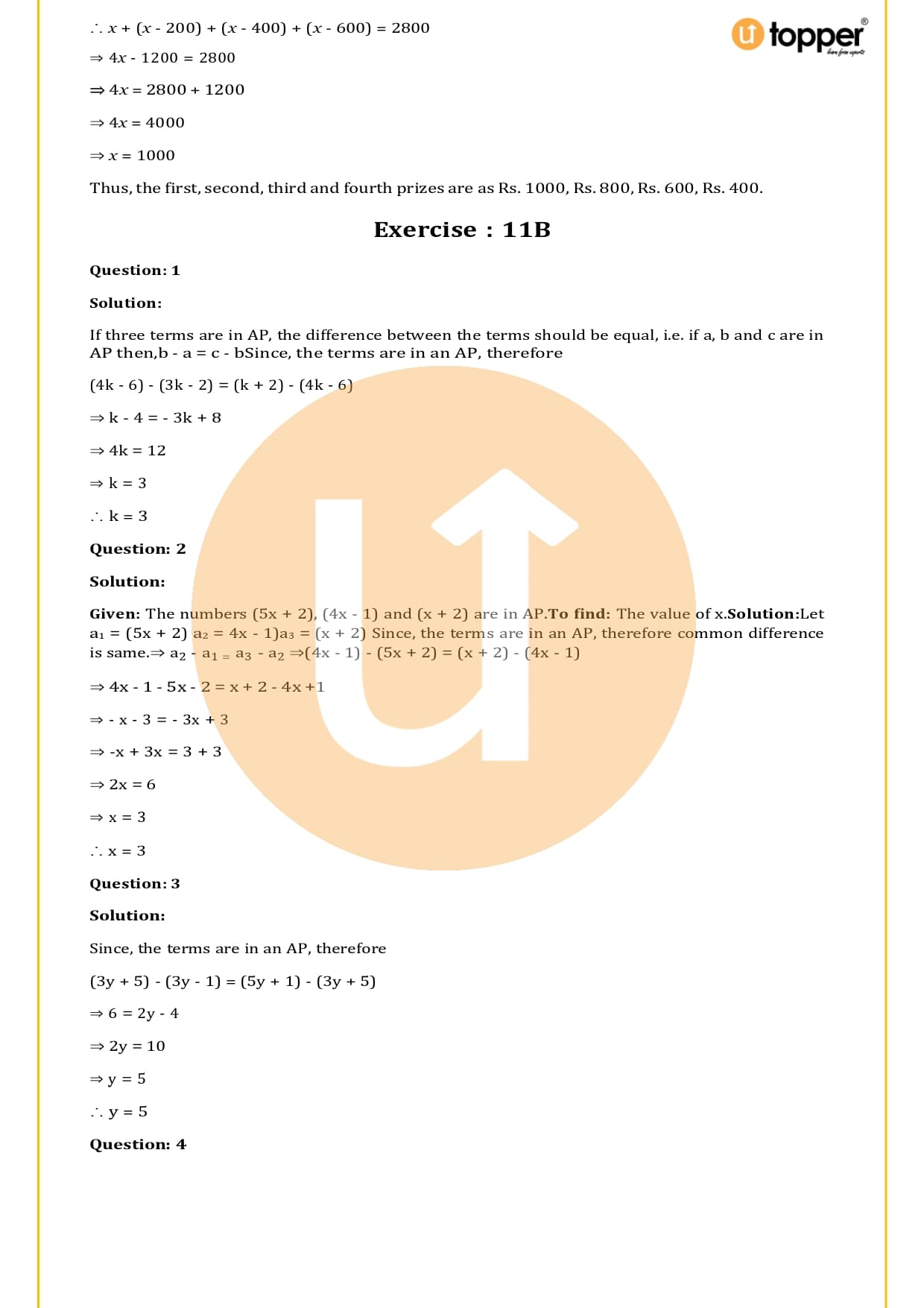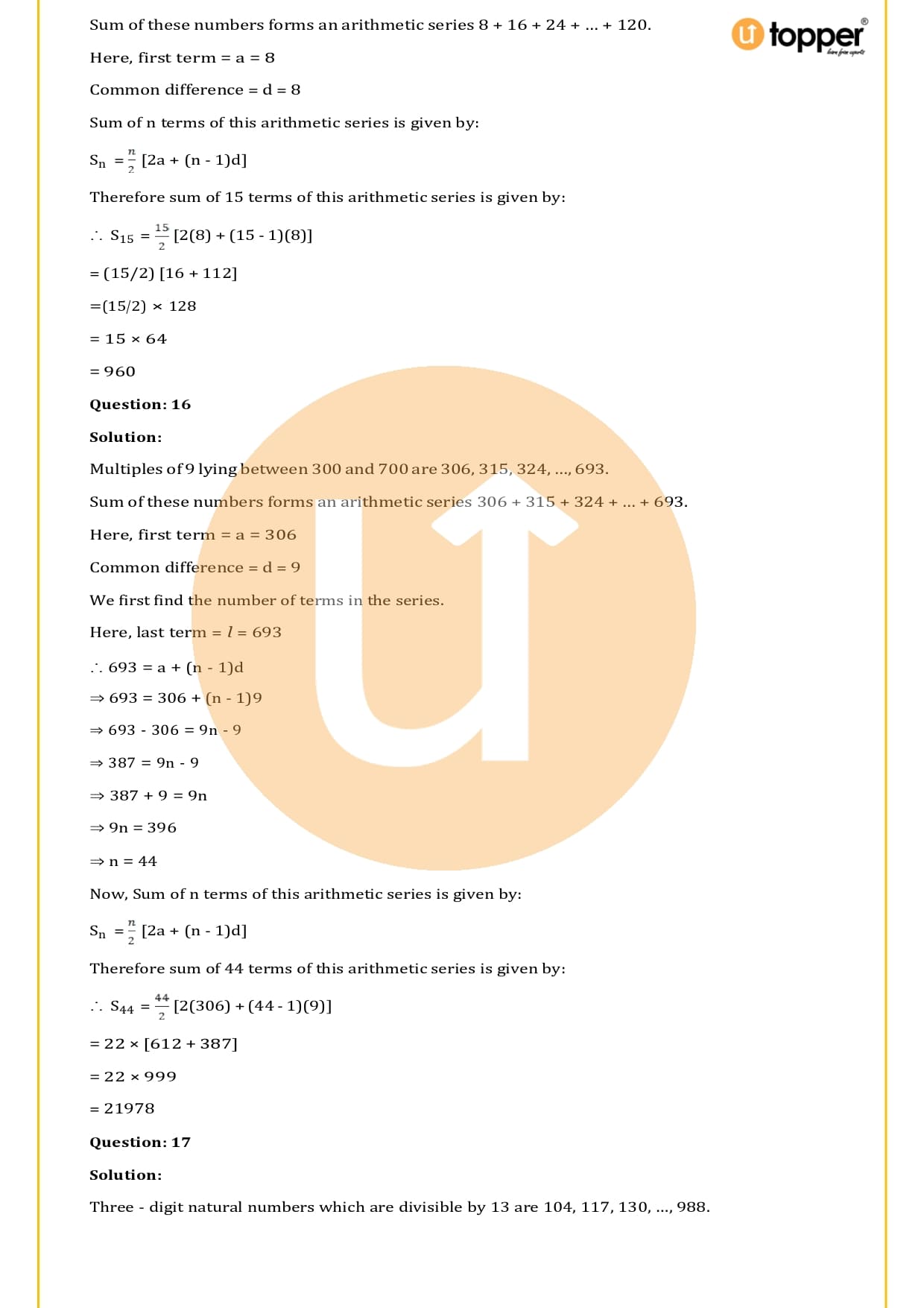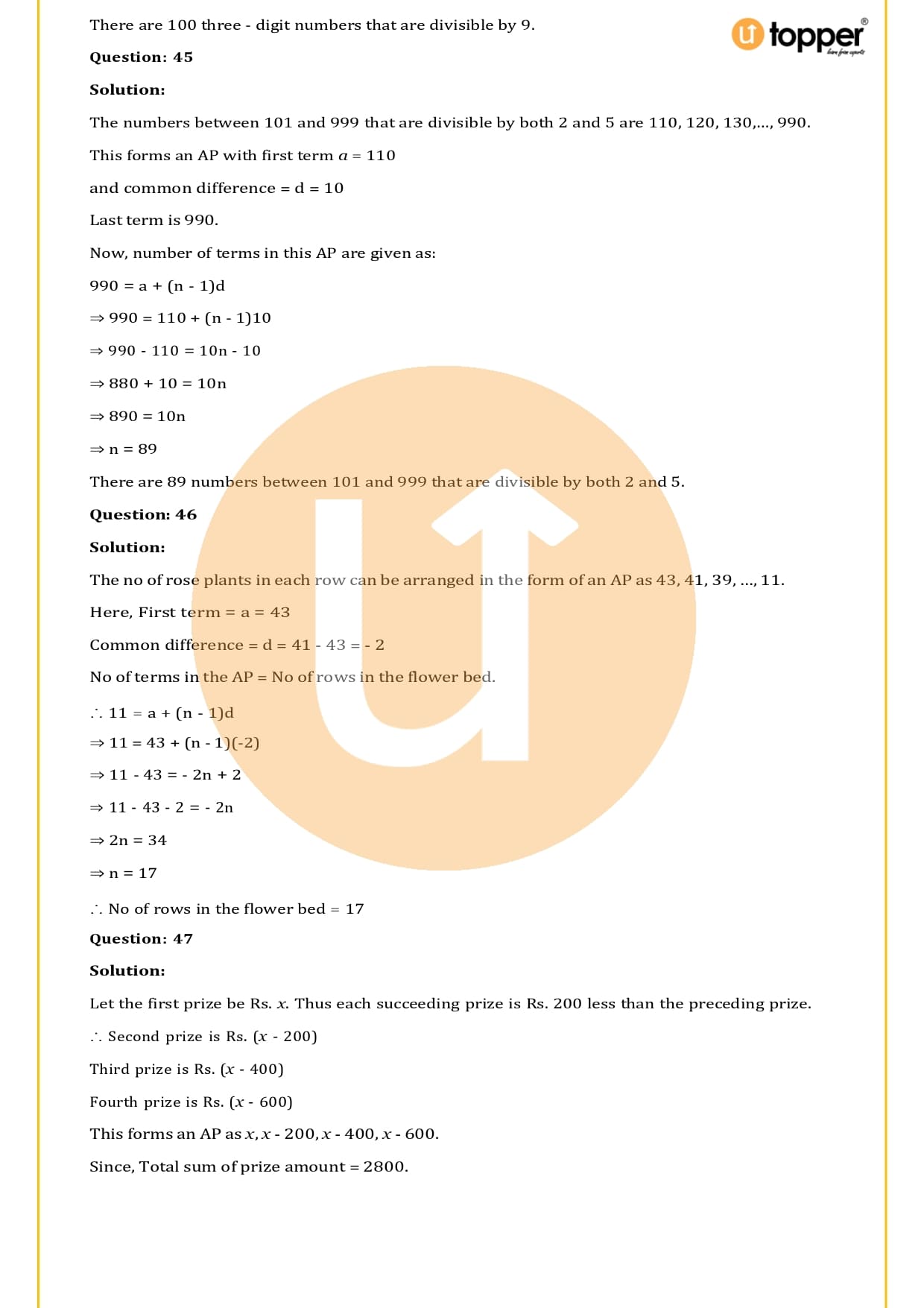 - Our RS Aggarwal Class 10 Solutions Chapter 11 “Arithmetic Progression” are sure to help you do better on your tests.