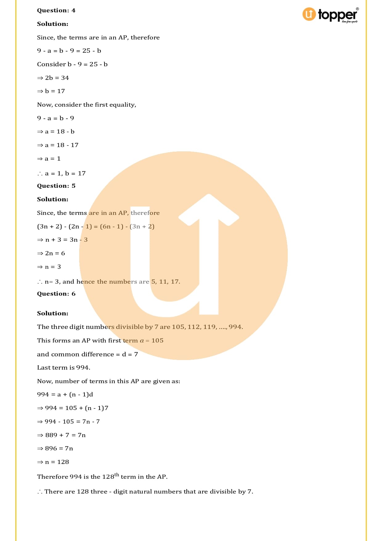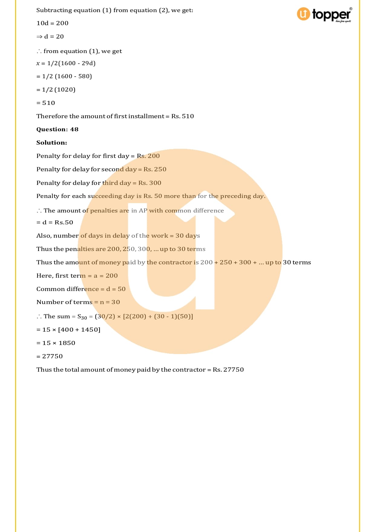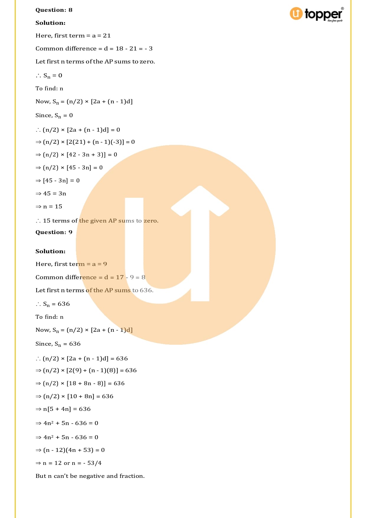 - Our RS Aggarwal Class 10 Solutions Chapter 11 “Arithmetic Progression” are sure to help you do better on your tests.