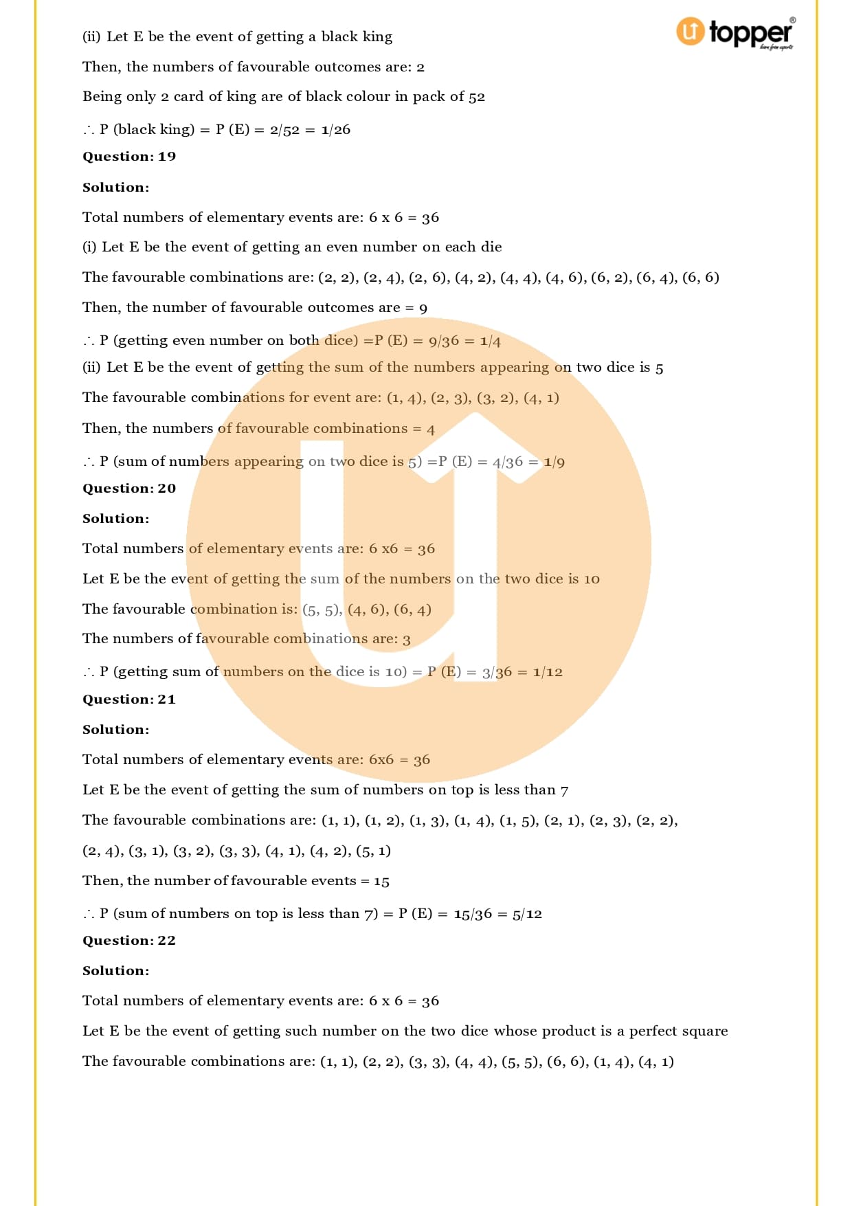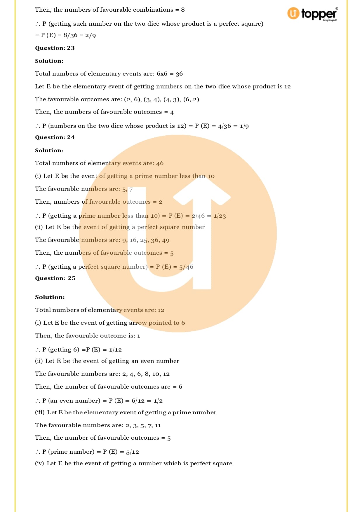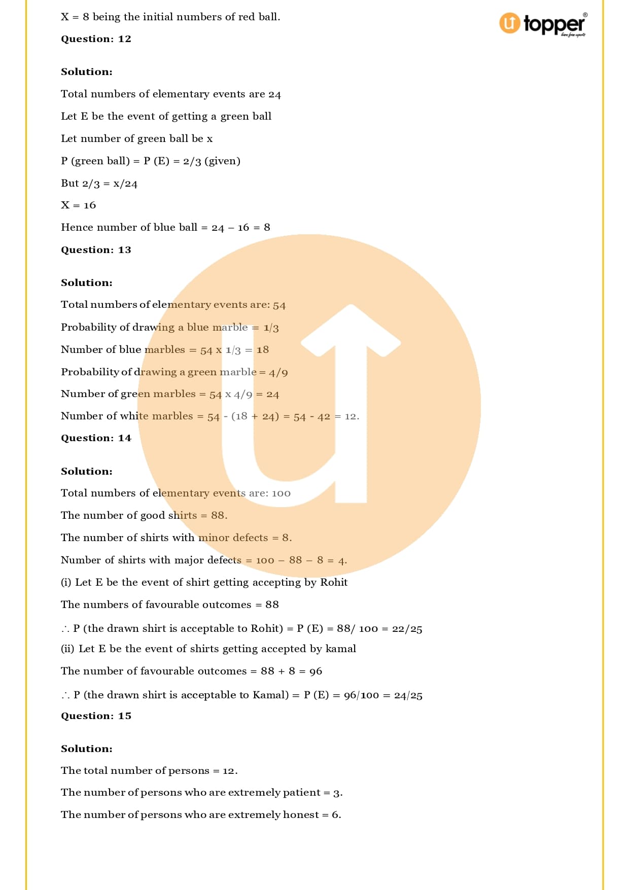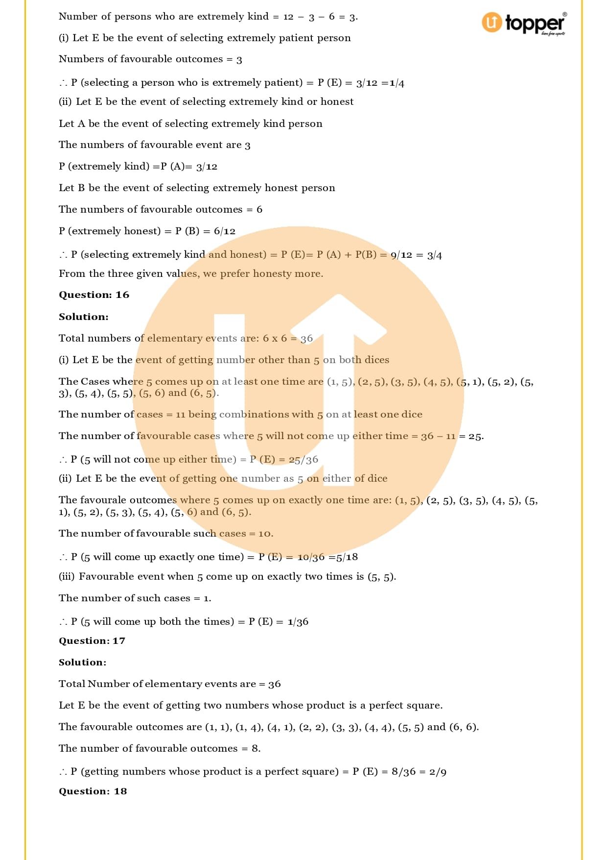 Ans – In this Chapter Probability you will learn about different terms and formulas related to probability, such as random experiment and possible outcomes, events, sample, space, the basics of probability and its properties, sure and impossible events, and events that happen together. Utopper Provide to you free study materials like Revision Notes, Important Questions, which helps them understand better and makes it less likely that they will make mistakes on their exams.