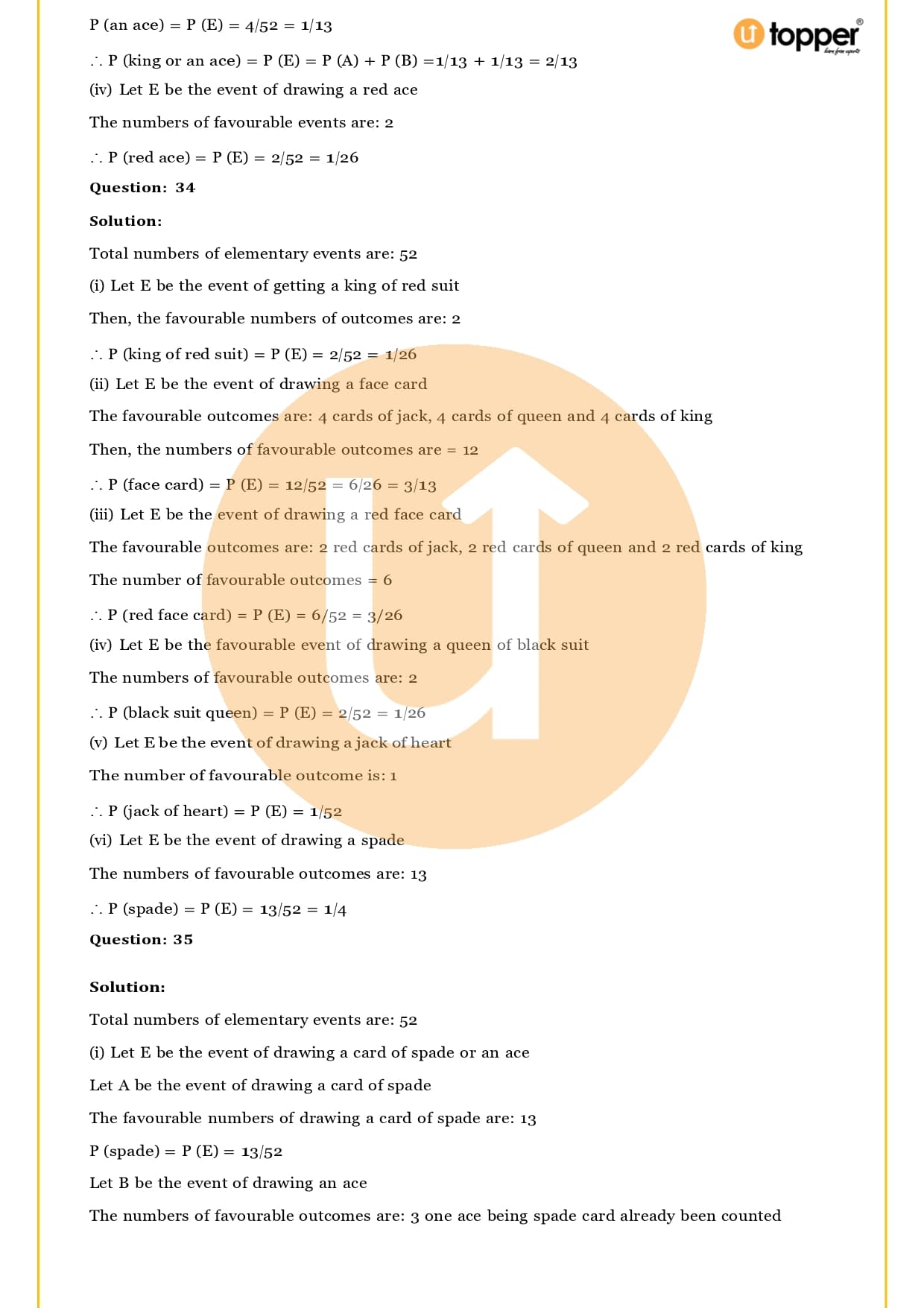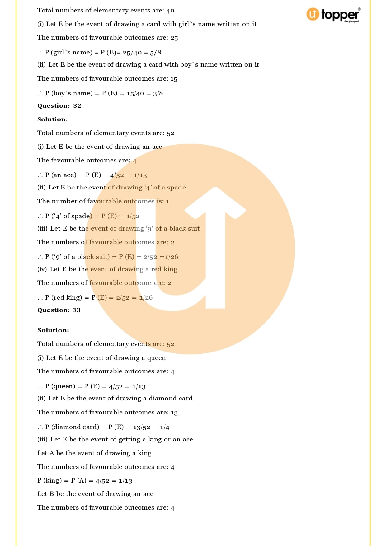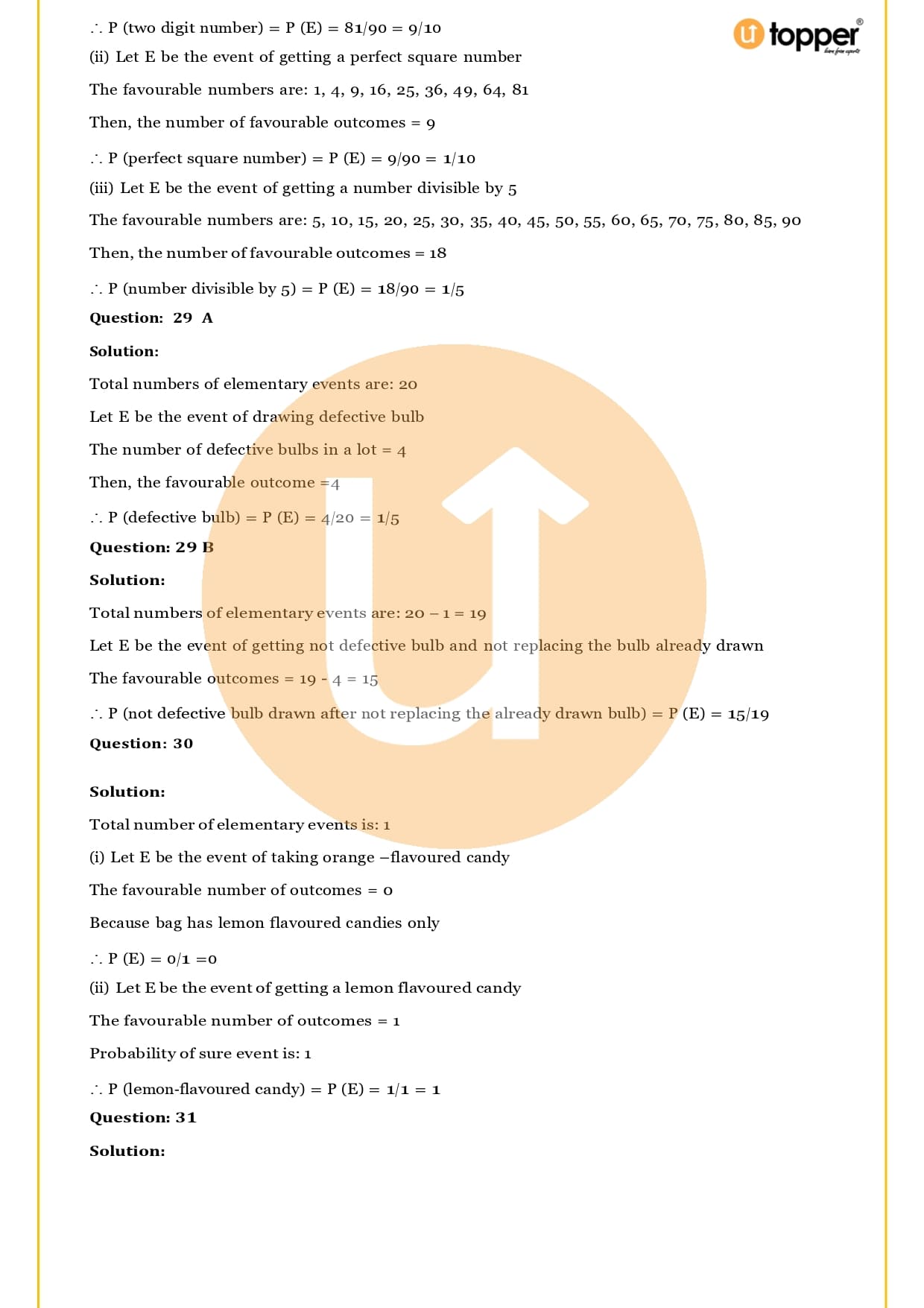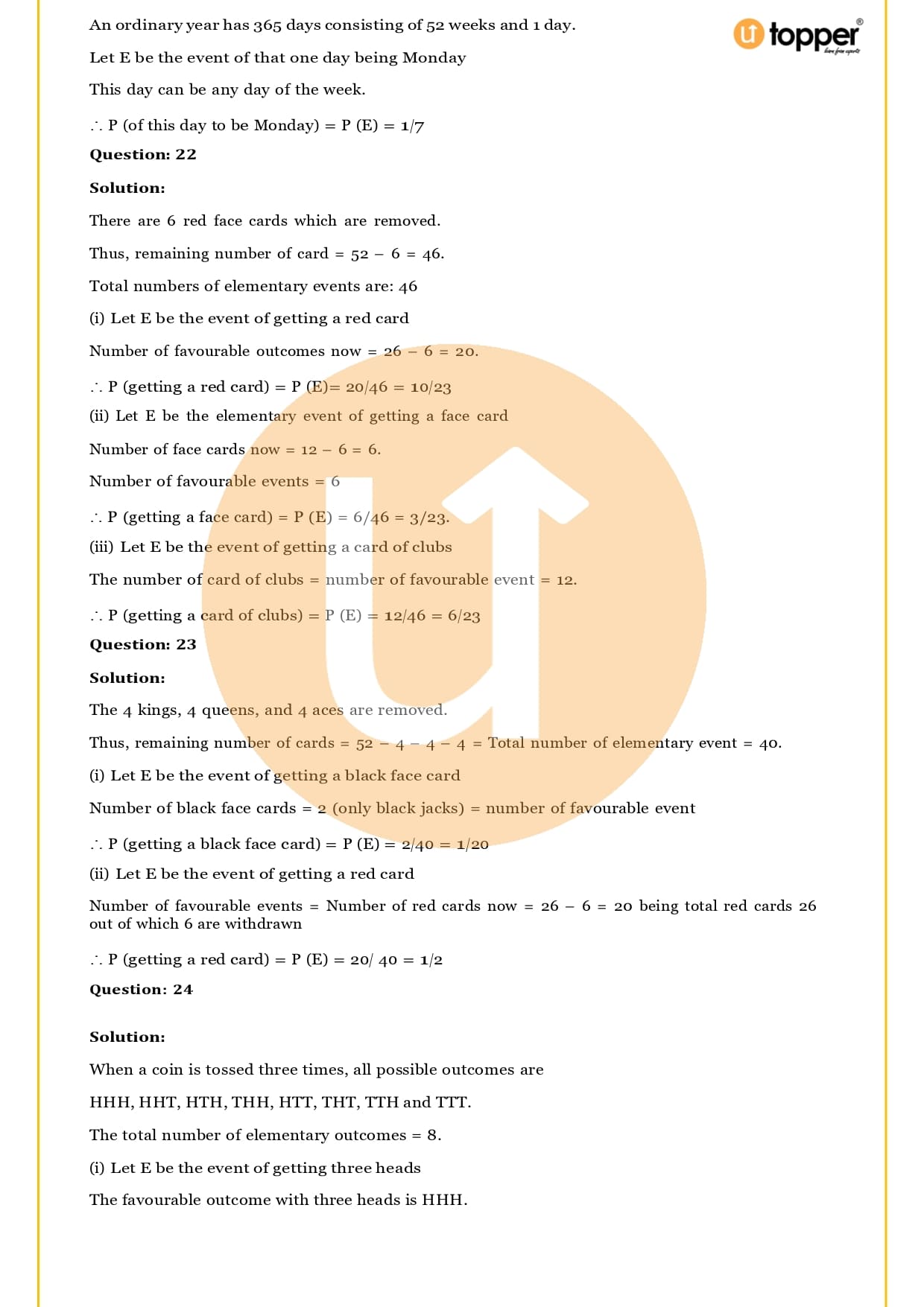 Ans – In this Chapter Probability you will learn about different terms and formulas related to probability, such as random experiment and possible outcomes, events, sample, space, the basics of probability and its properties, sure and impossible events, and events that happen together. Utopper Provide to you free study materials like Revision Notes, Important Questions, which helps them understand better and makes it less likely that they will make mistakes on their exams.