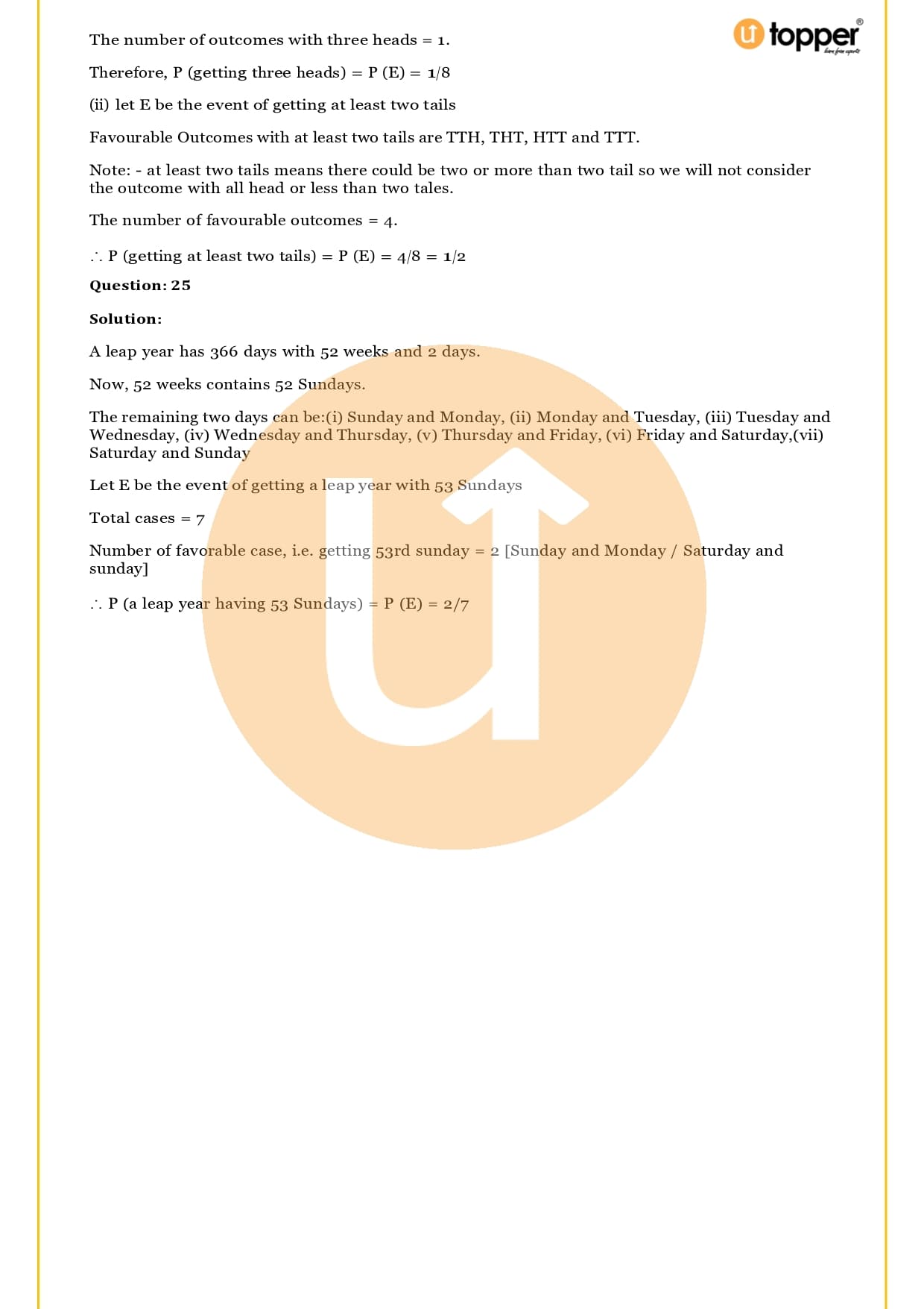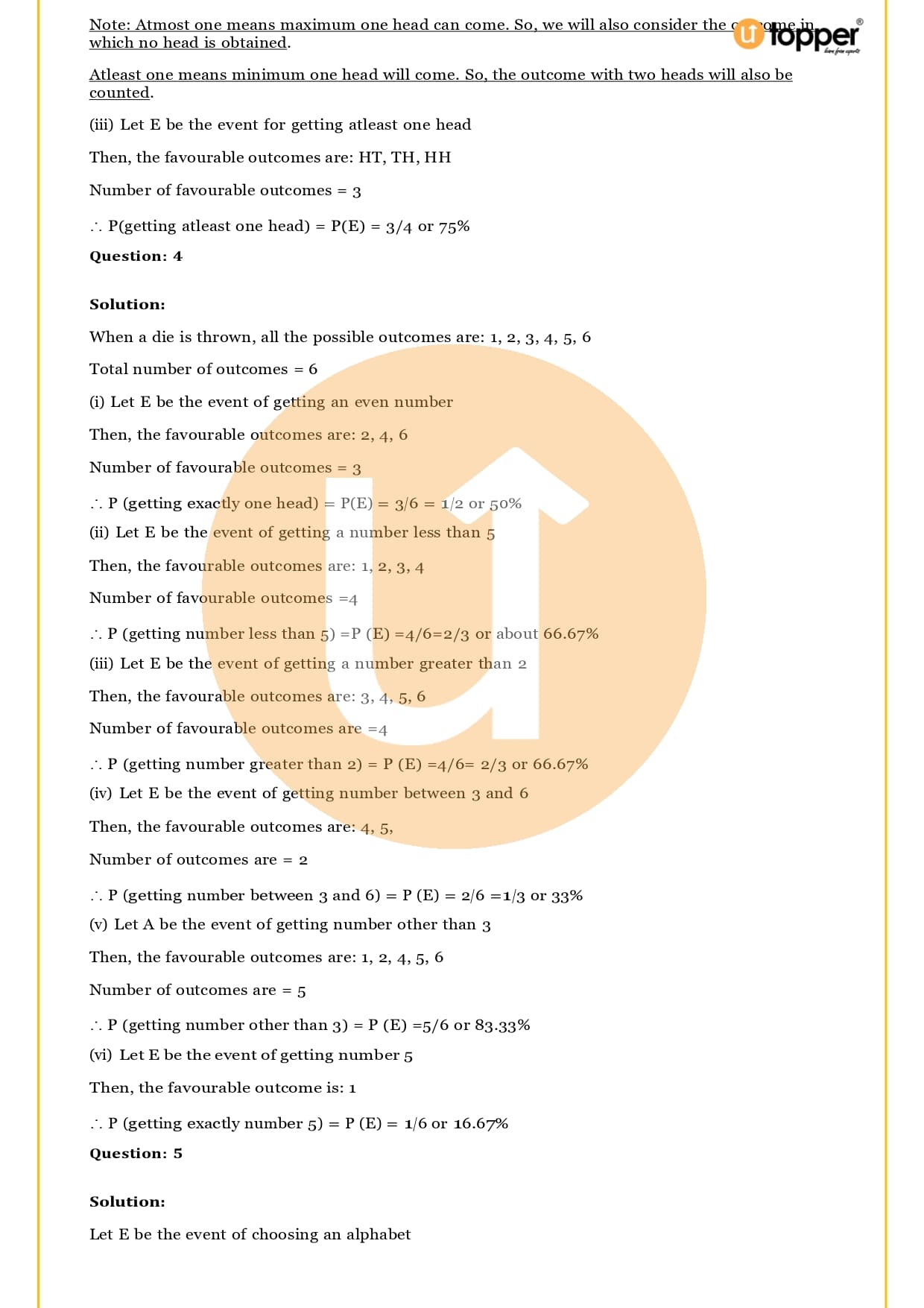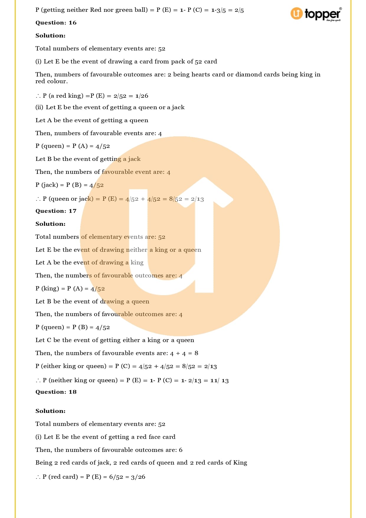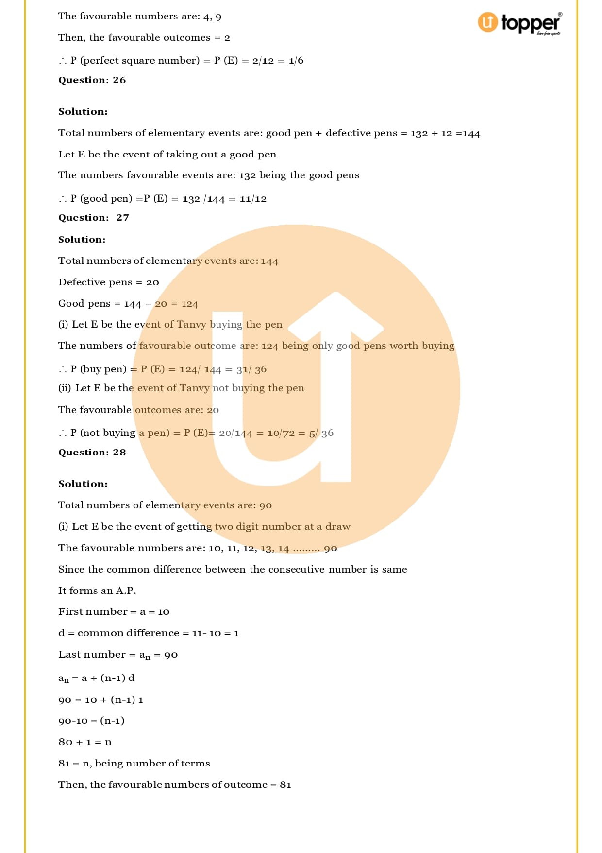 Ans – In this Chapter Probability you will learn about different terms and formulas related to probability, such as random experiment and possible outcomes, events, sample, space, the basics of probability and its properties, sure and impossible events, and events that happen together. Utopper Provide to you free study materials like Revision Notes, Important Questions, which helps them understand better and makes it less likely that they will make mistakes on their exams.