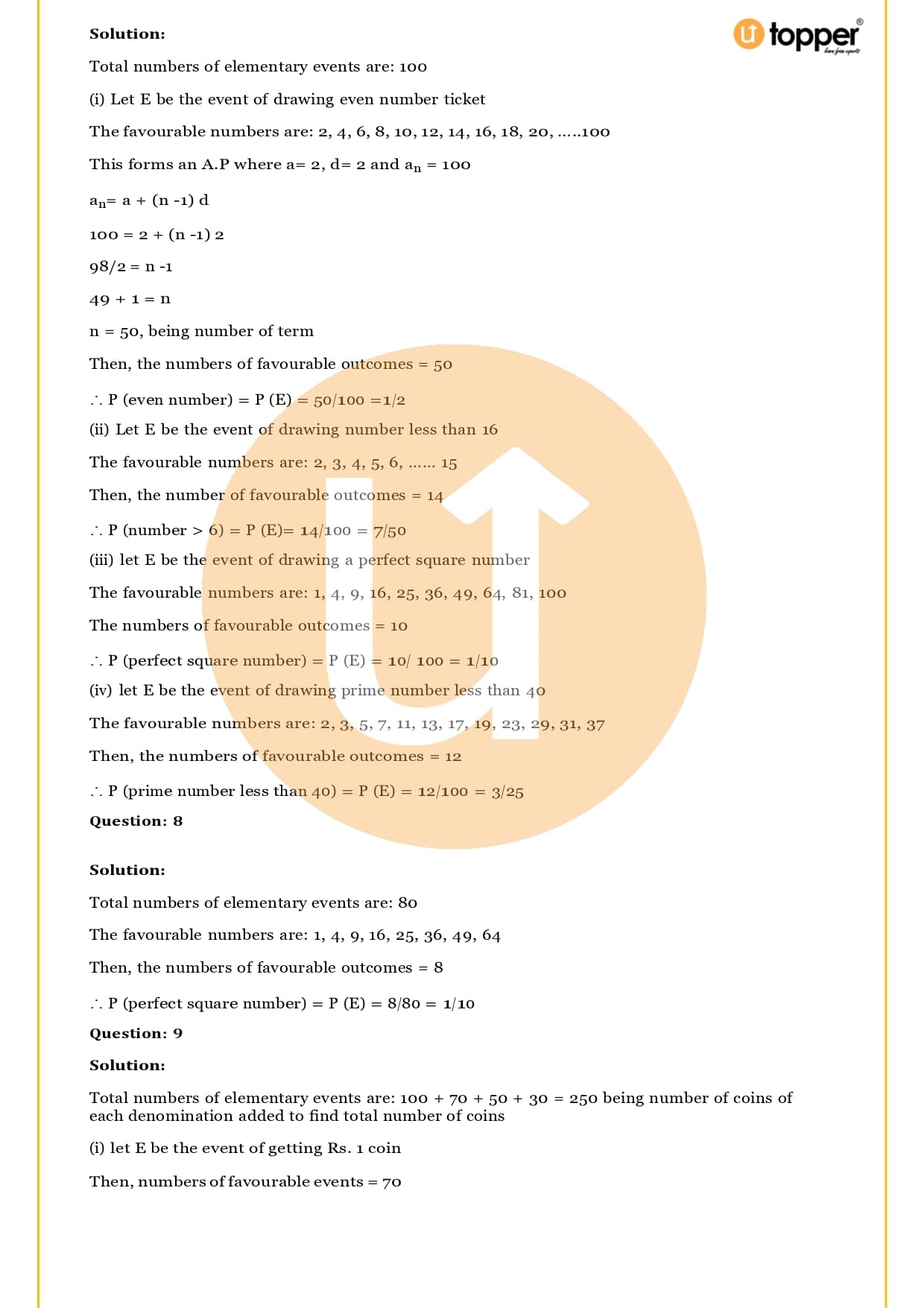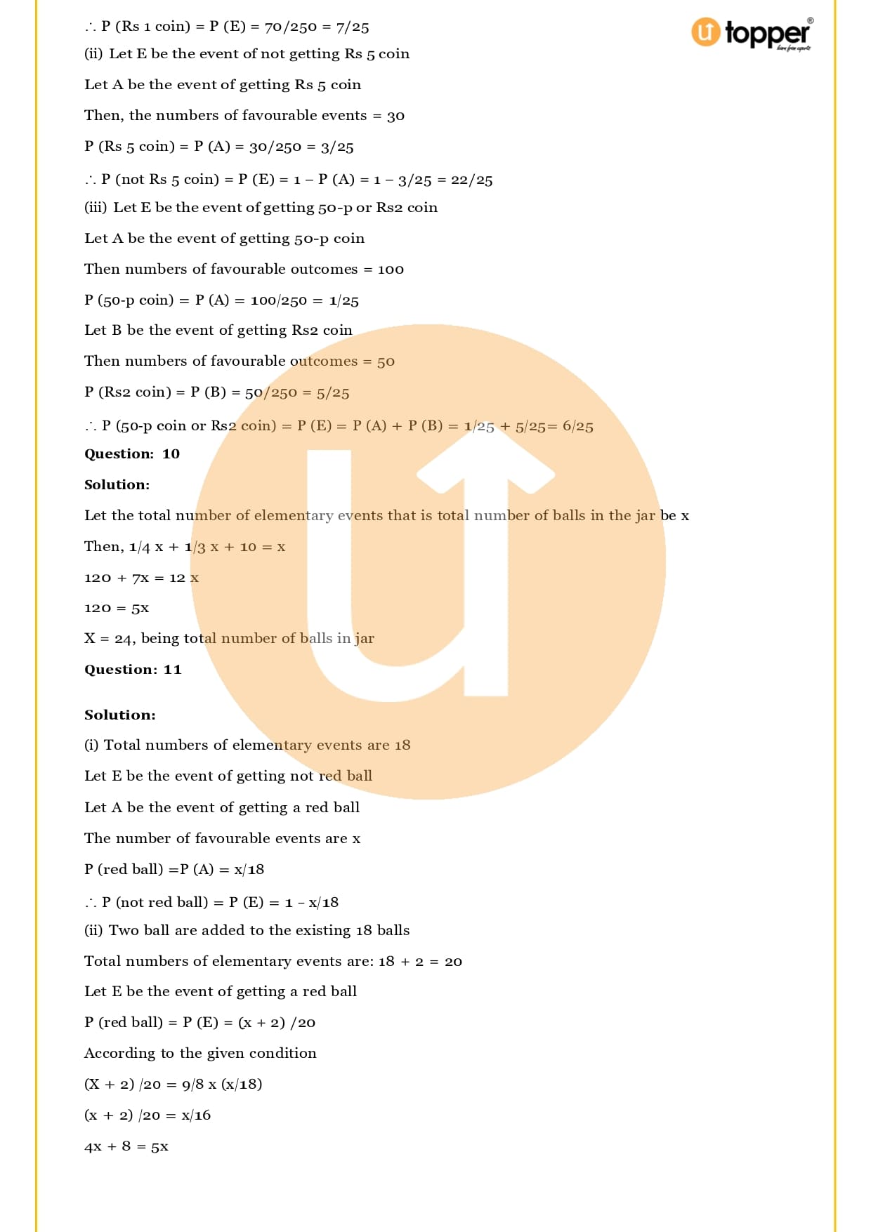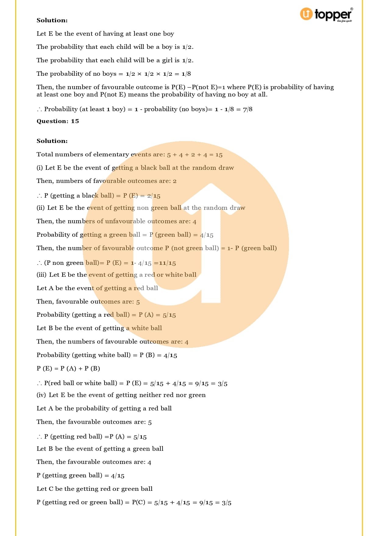Ans – Students in class 10 can start getting ready for the CBSE class 10 math board exam by taking each chapter seriously and evaluating it. Students can even start writing down the big problems they think will be on the test. And finally, the Solutions for RS Aggarwal Class 10 Chapter 15 Probability can be downloaded and studied. If they do all of these things at the same time, they will be ready to take the board exam with confidence. For More Preparation you can access free Utopper’s Study Materials like Rivision Notes, Important Questions and many more.