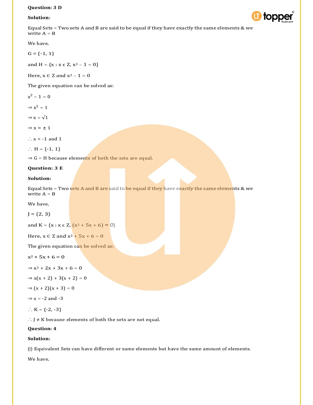 - Equivalent Set: Two sets that have the same number of elements are called equivalent sets.