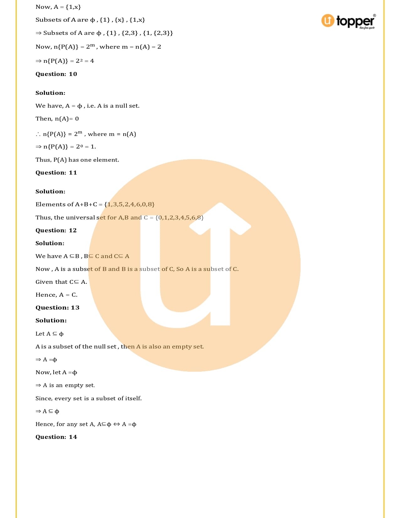 Chapter 1 Sets by Utopper are just right in every way. We made step-by-step answers so that you won’t have any trouble going over the chapter and the methods. Our team is well-trained and works hard to give you the best answers to all of your questions.