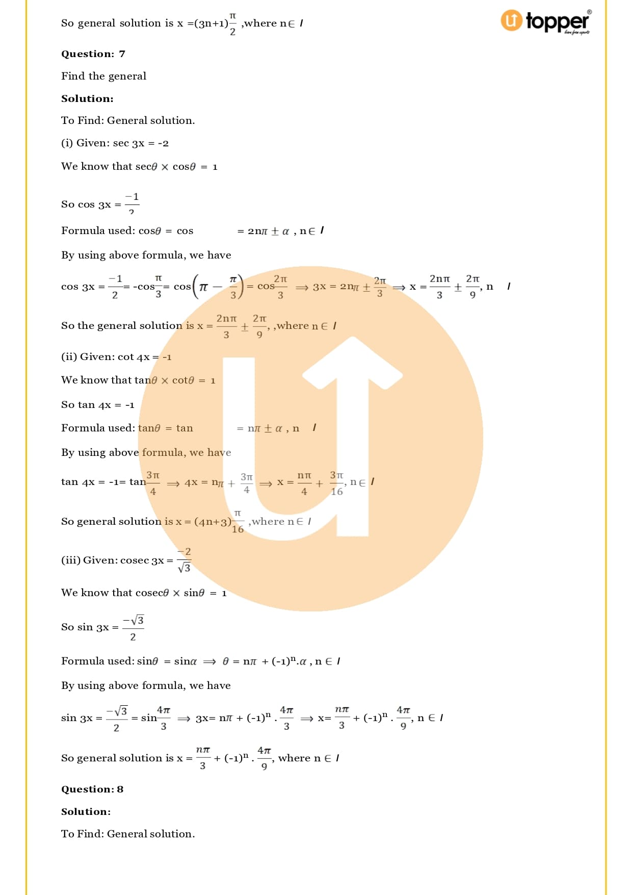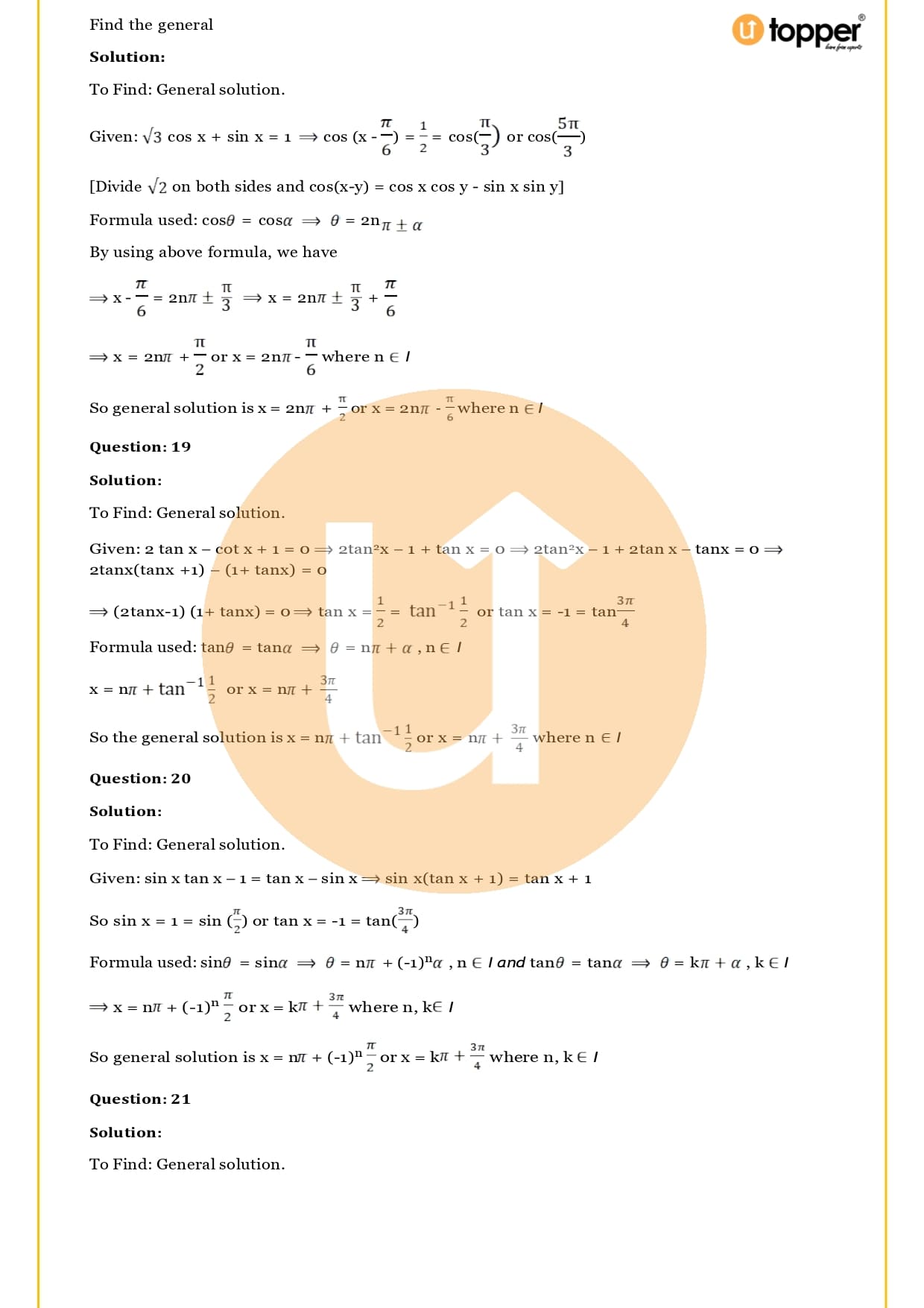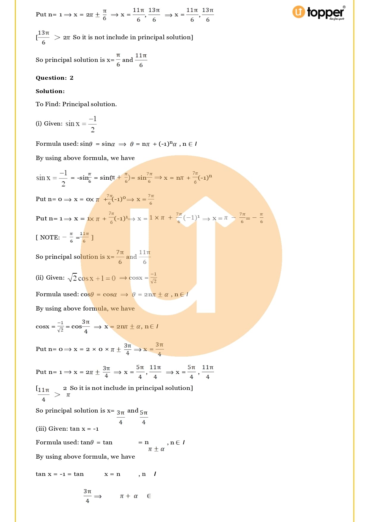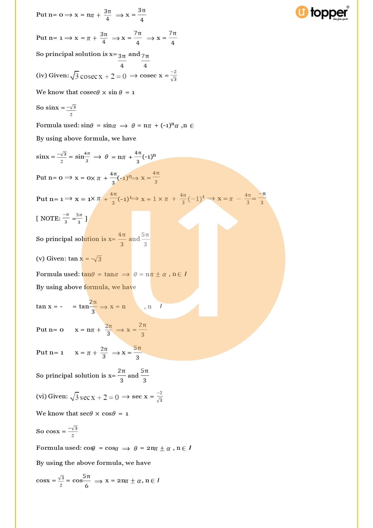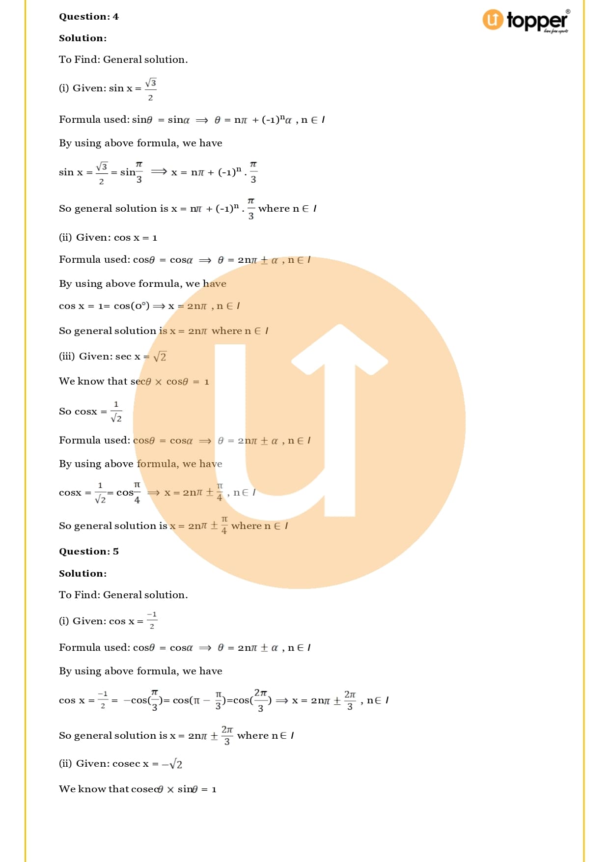 - Solutions of trigonometric equations