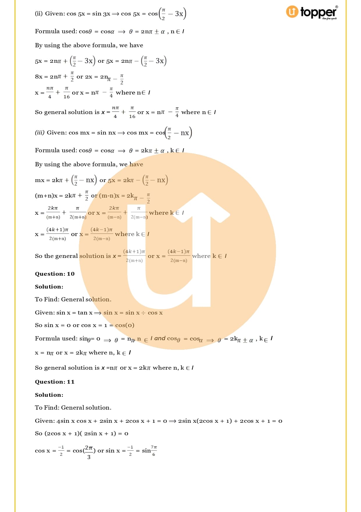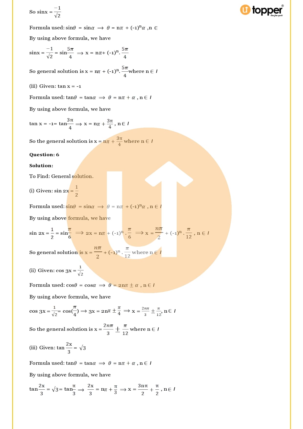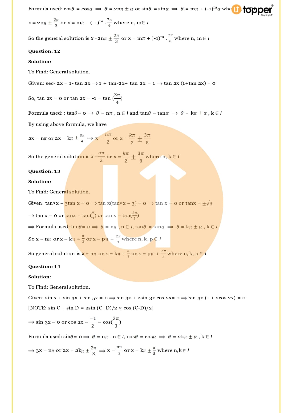 The RS Aggarwal solutions for Class 11 Maths Chapter 17 are free to download from the Utopper website. These answers can be found in a PDF file that can be downloaded. Let’s talk more about the chapter on trigonometric equations: