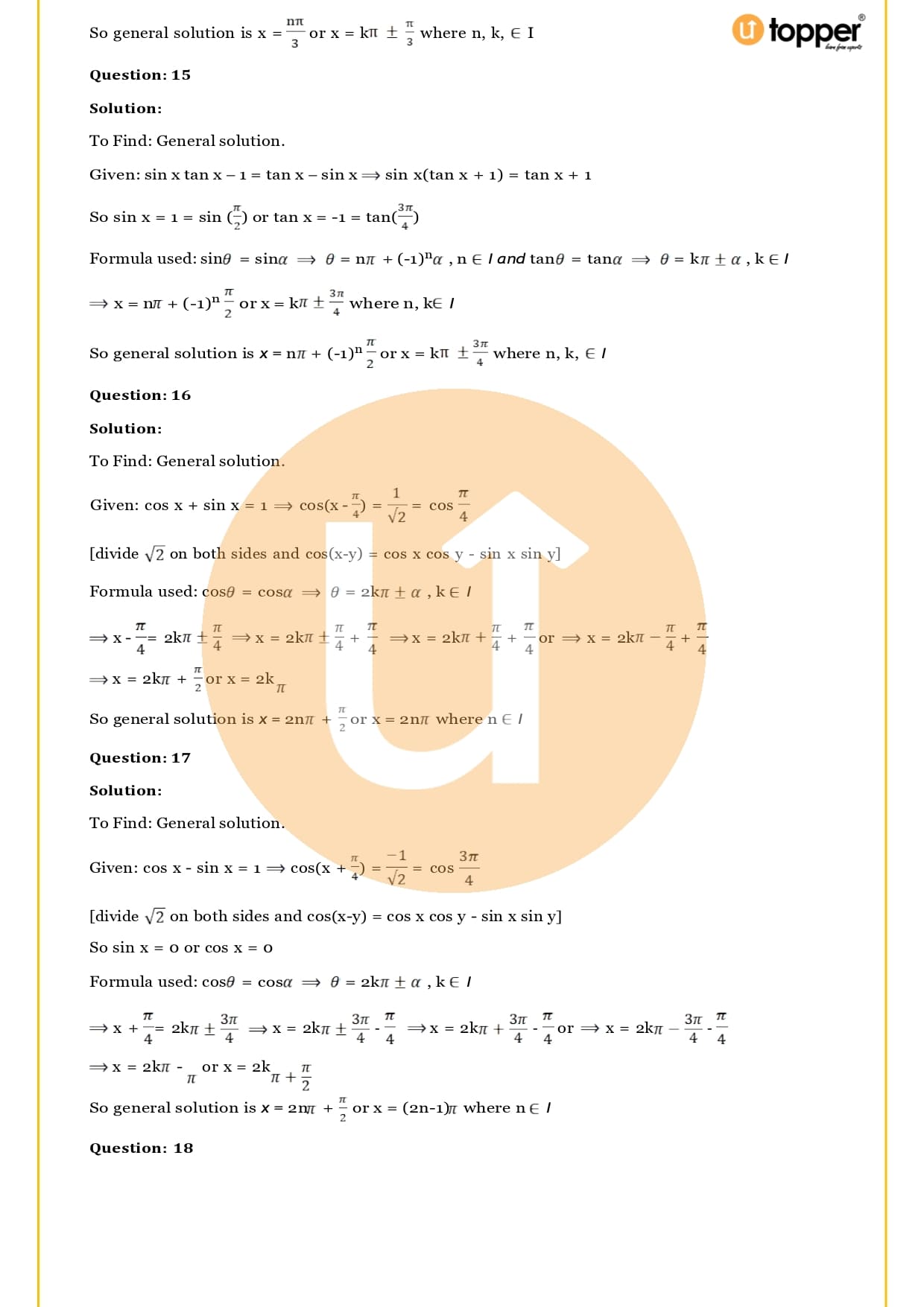 Important formulas from Chapter 17: Trigonometric Equations