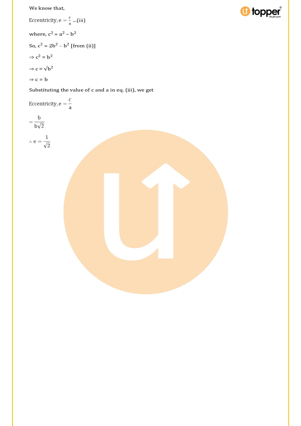 - Eccentricity e = c/a