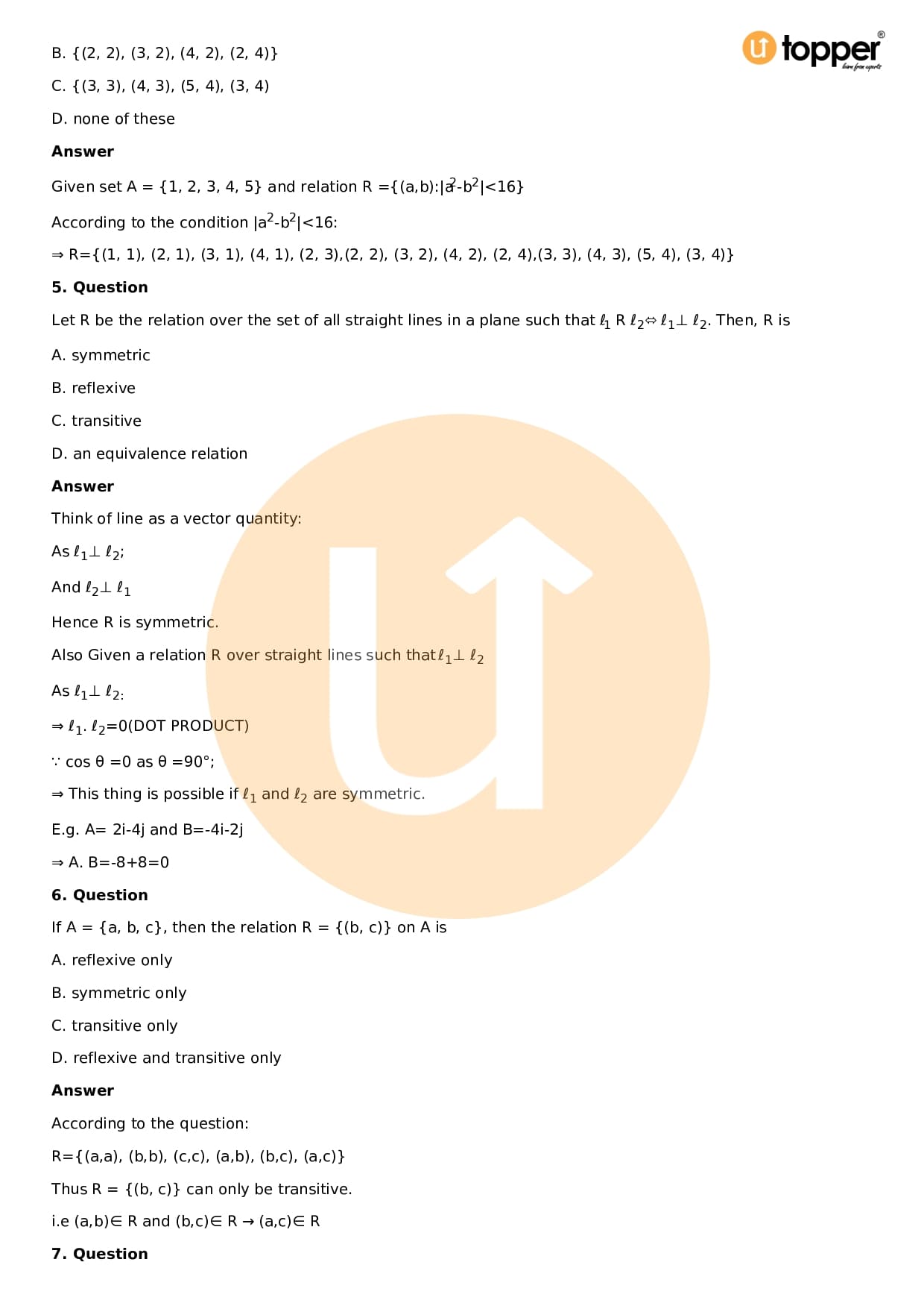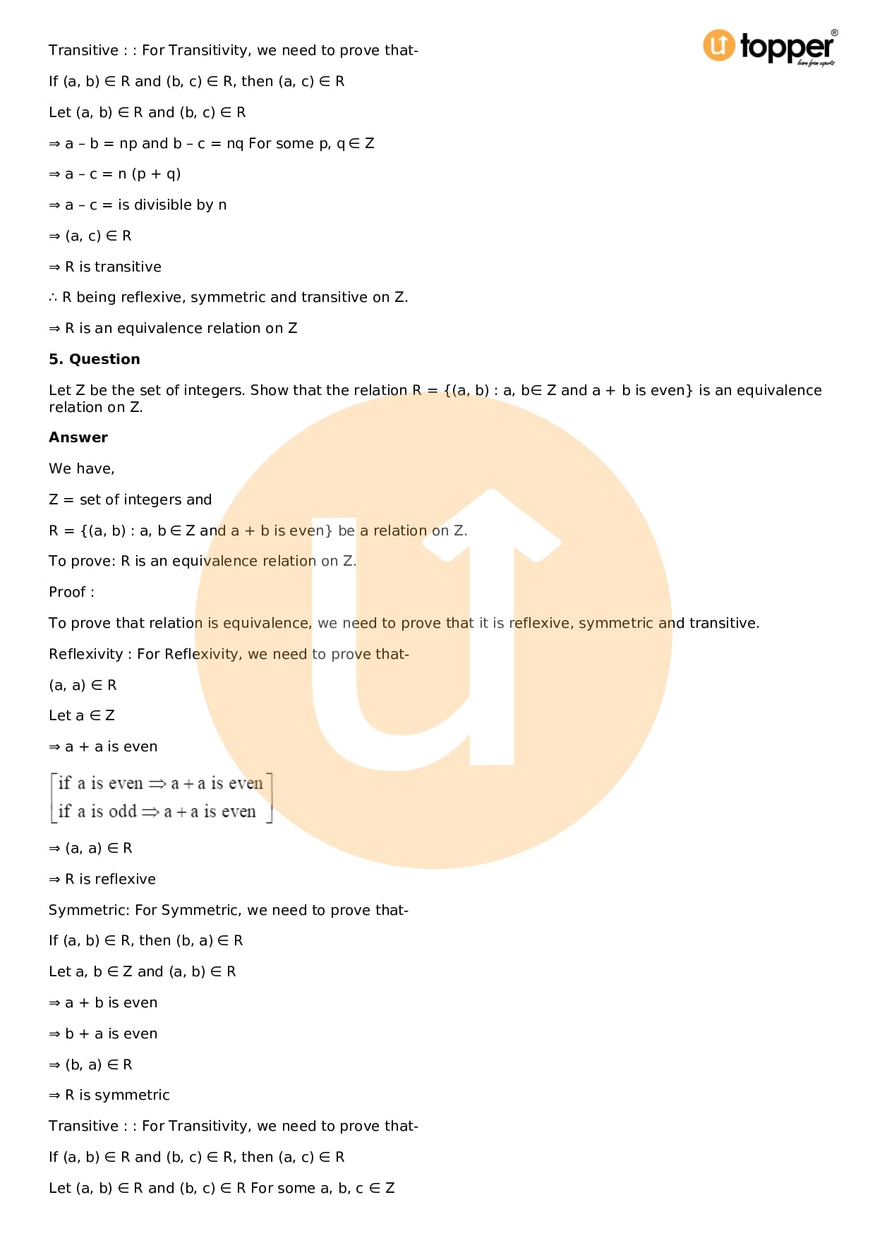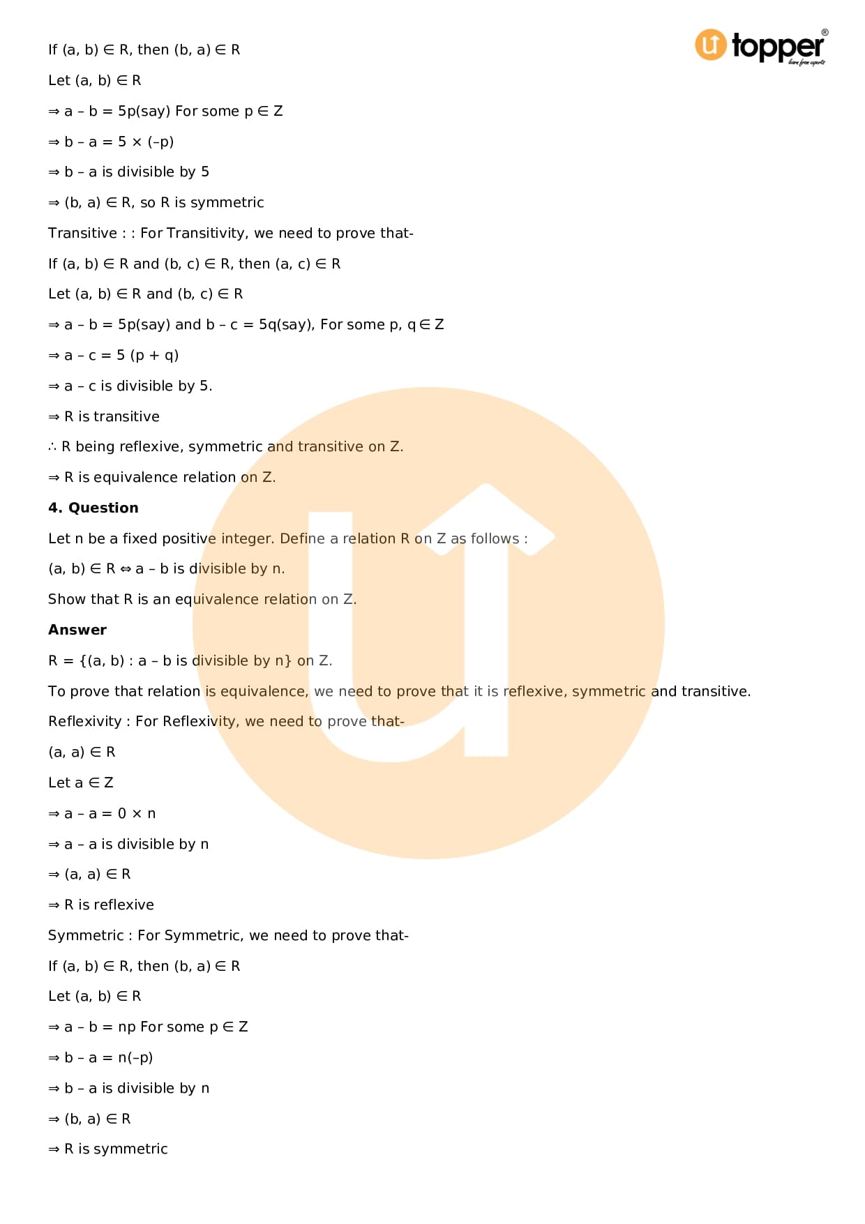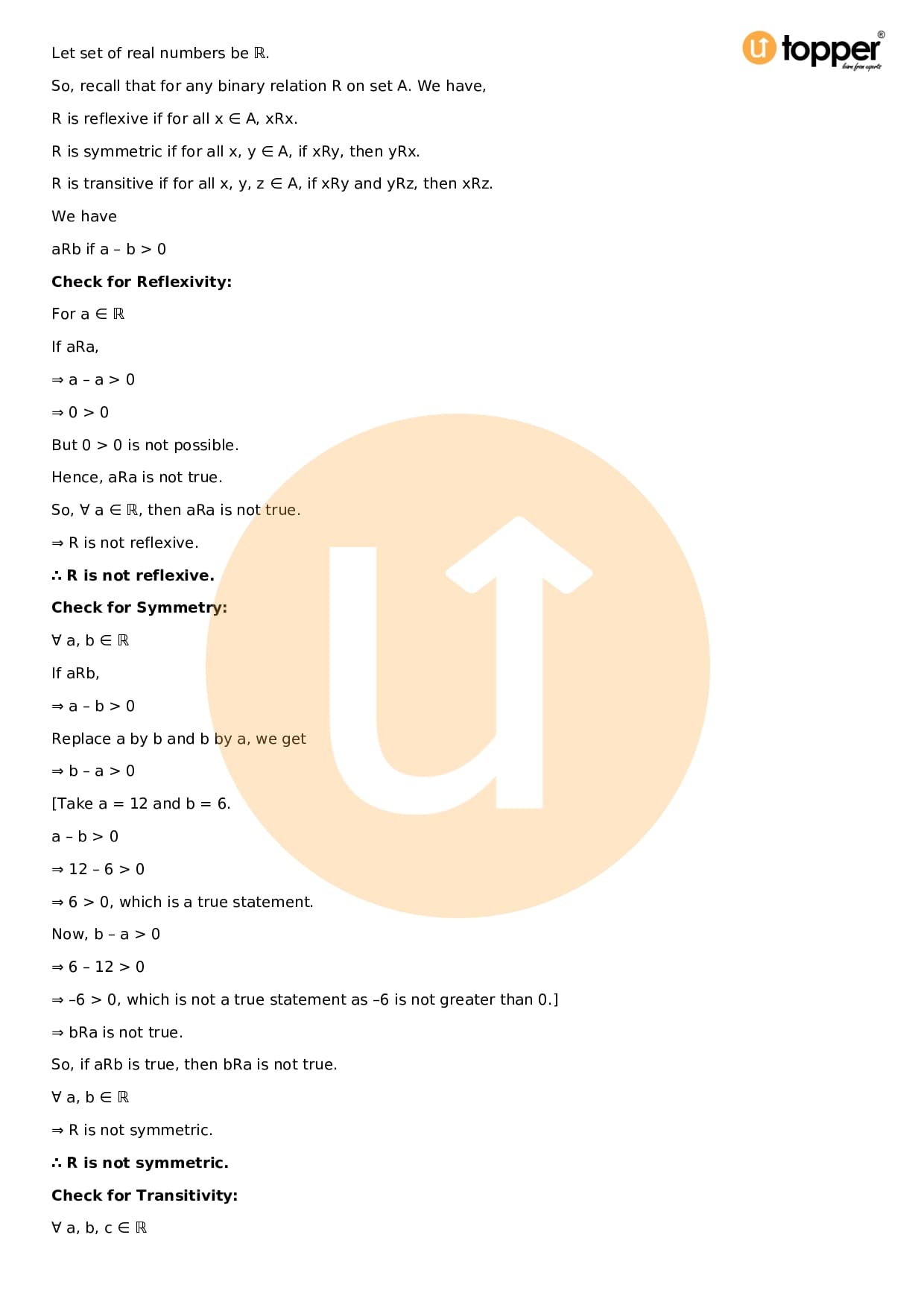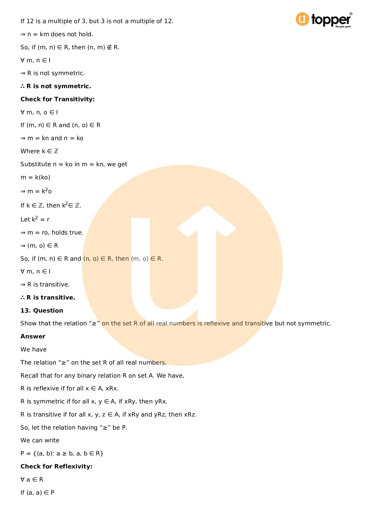 Download the latest version of RD Sharma Solutions for Class 12 Maths Chapter 1 Relations PDF at Utopper. It provides step by step Solution PDF. You can download RD Sharma Maths Solutions with a free PDF download option, which includes chapter wise solutions. All the questions in RD Sharma Solutions have been solved and explained by expert mathematics teachers as per the CBSE Board guidelines. By studying these Maths Solutions, you can easily get good marks in the CBSE board exams.