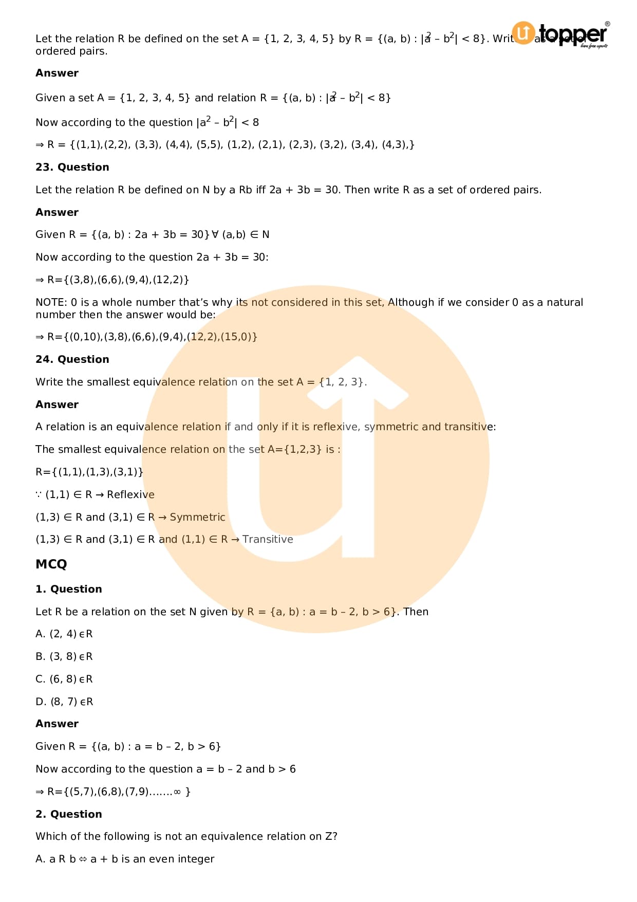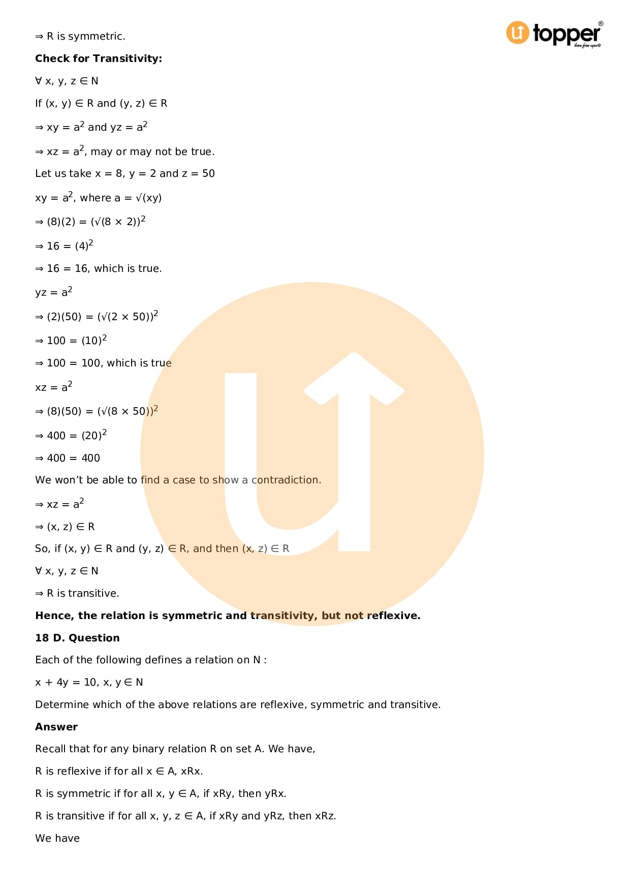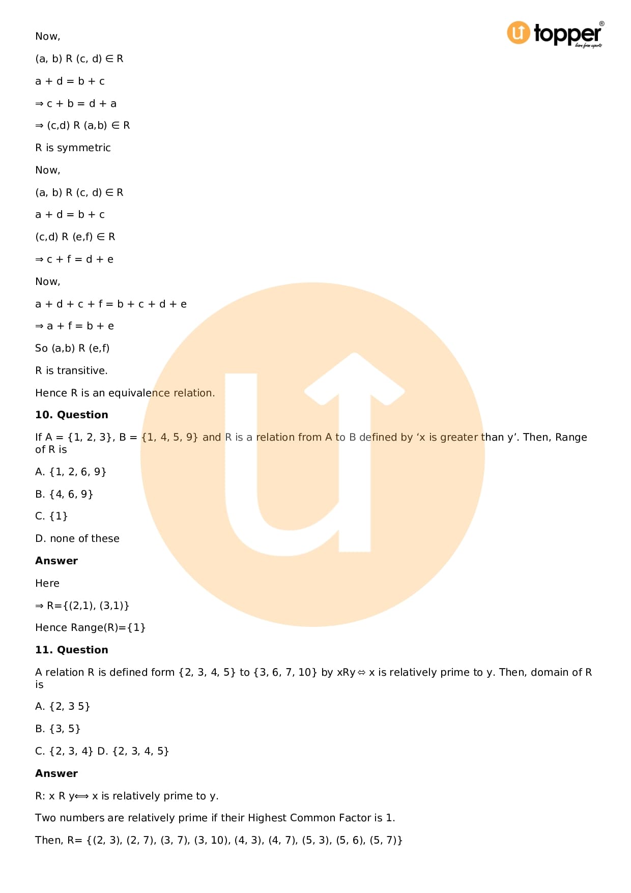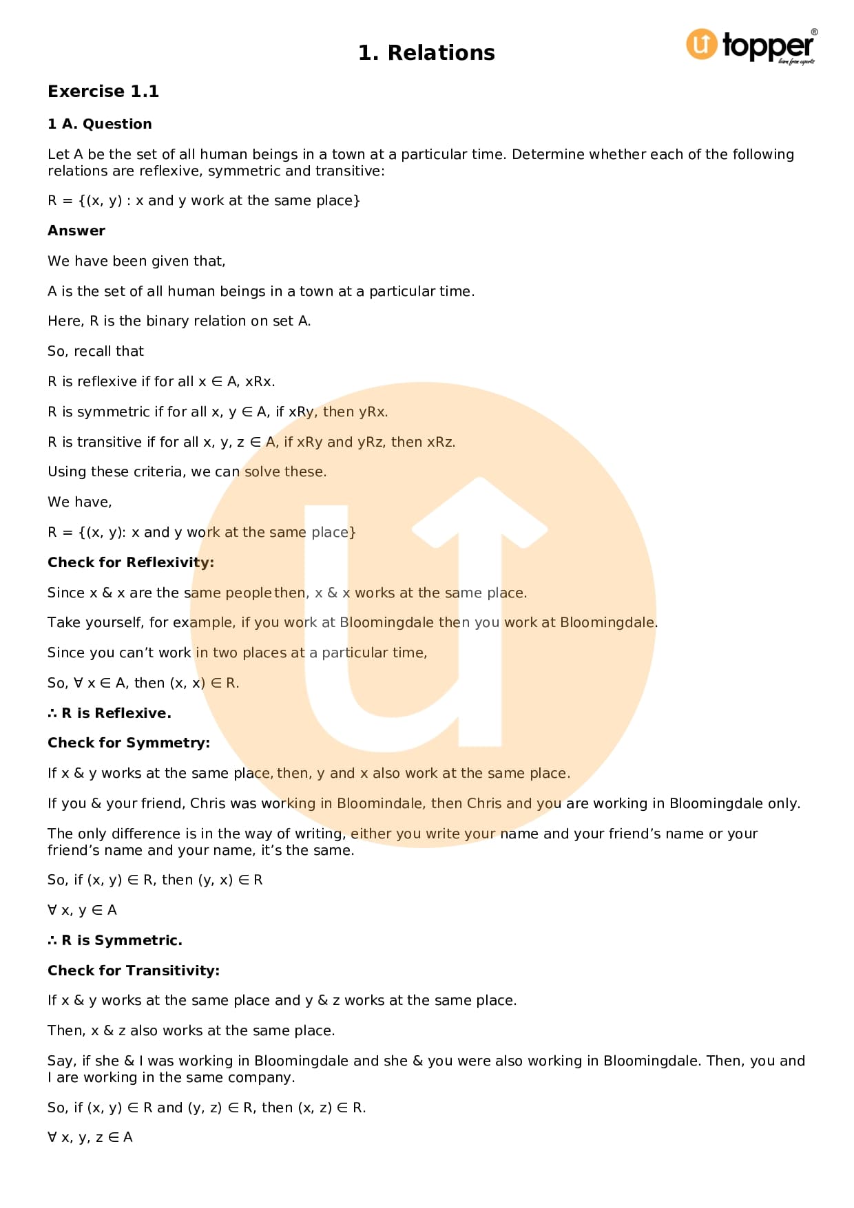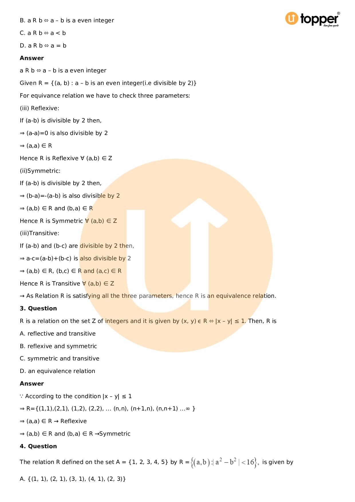 Download the latest version of RD Sharma Solutions for Class 12 Maths Chapter 1 Relations PDF at Utopper. It provides step by step Solution PDF. You can download RD Sharma Maths Solutions with a free PDF download option, which includes chapter wise solutions. All the questions in RD Sharma Solutions have been solved and explained by expert mathematics teachers as per the CBSE Board guidelines. By studying these Maths Solutions, you can easily get good marks in the CBSE board exams.