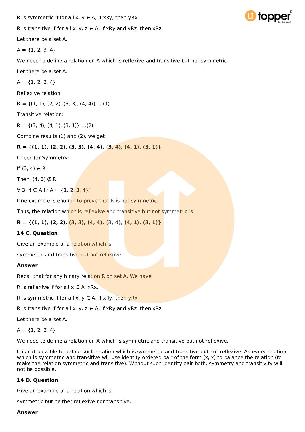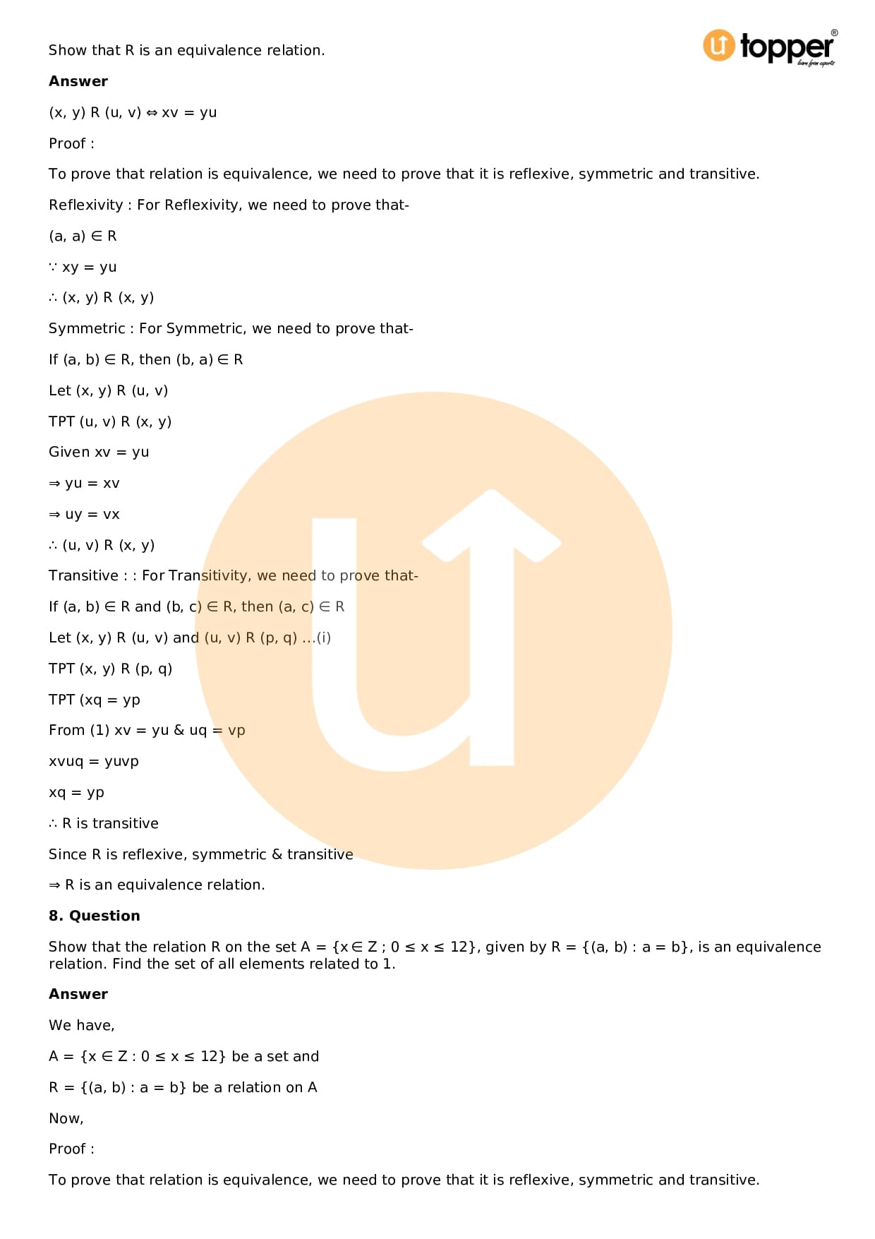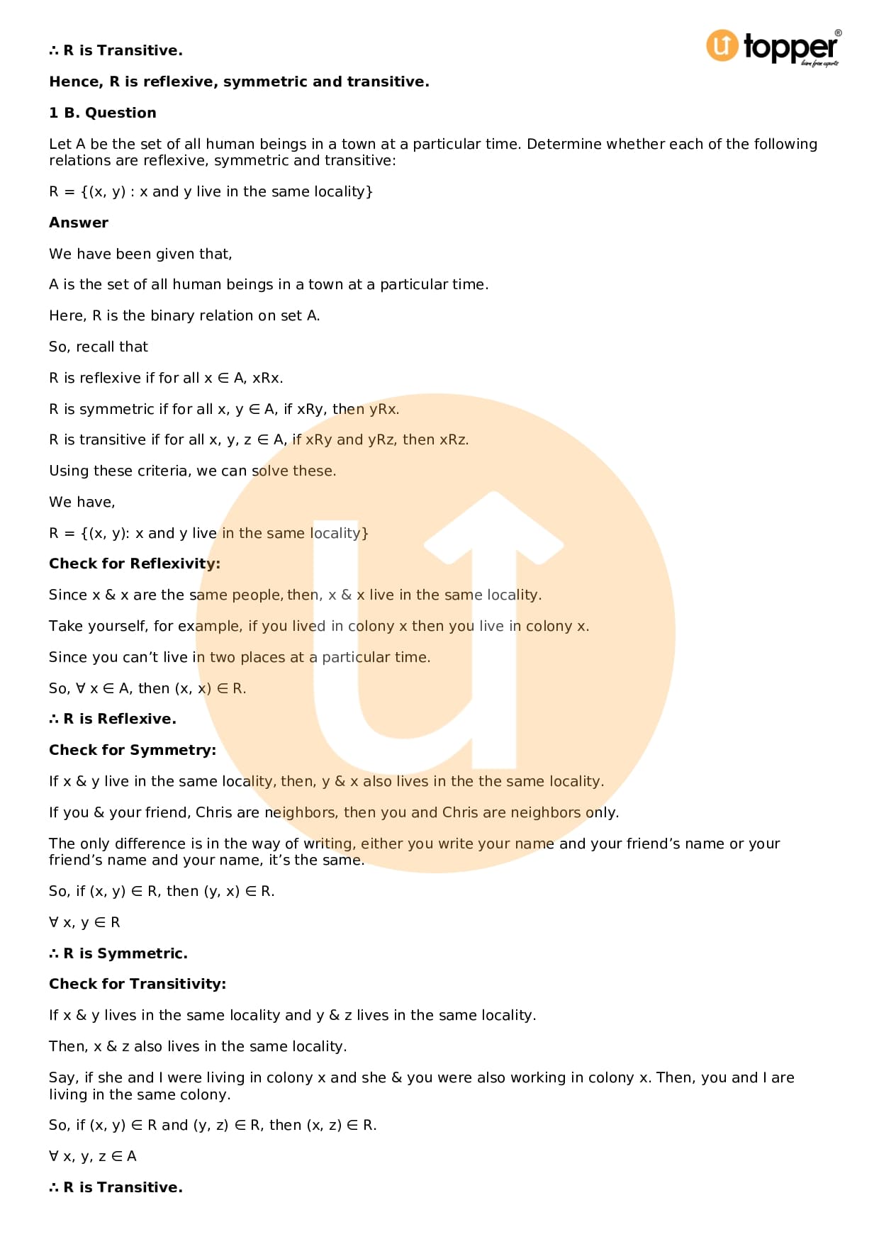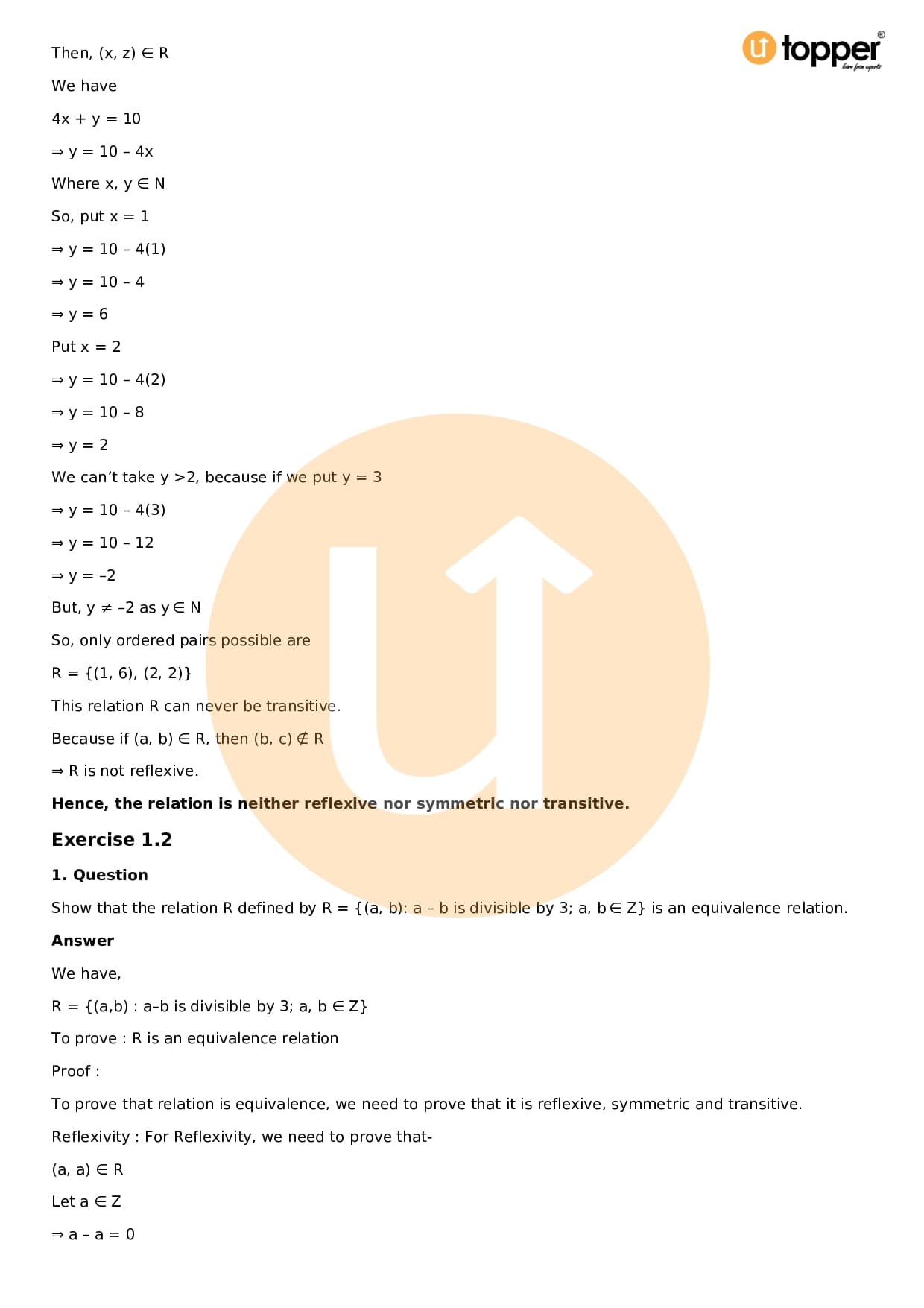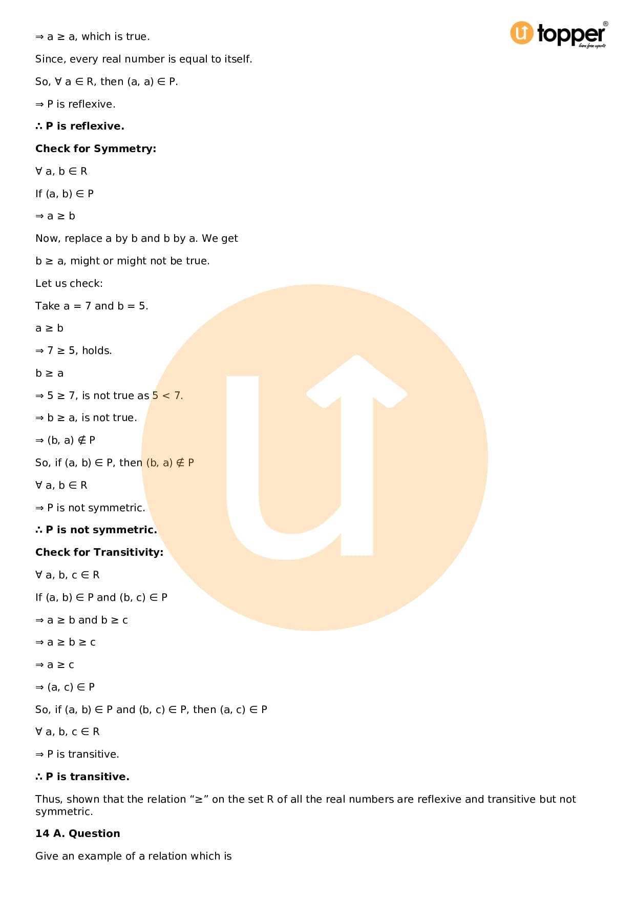 Download the latest version of RD Sharma Solutions for Class 12 Maths Chapter 1 Relations PDF at Utopper. It provides step by step Solution PDF. You can download RD Sharma Maths Solutions with a free PDF download option, which includes chapter wise solutions. All the questions in RD Sharma Solutions have been solved and explained by expert mathematics teachers as per the CBSE Board guidelines. By studying these Maths Solutions, you can easily get good marks in the CBSE board exams.