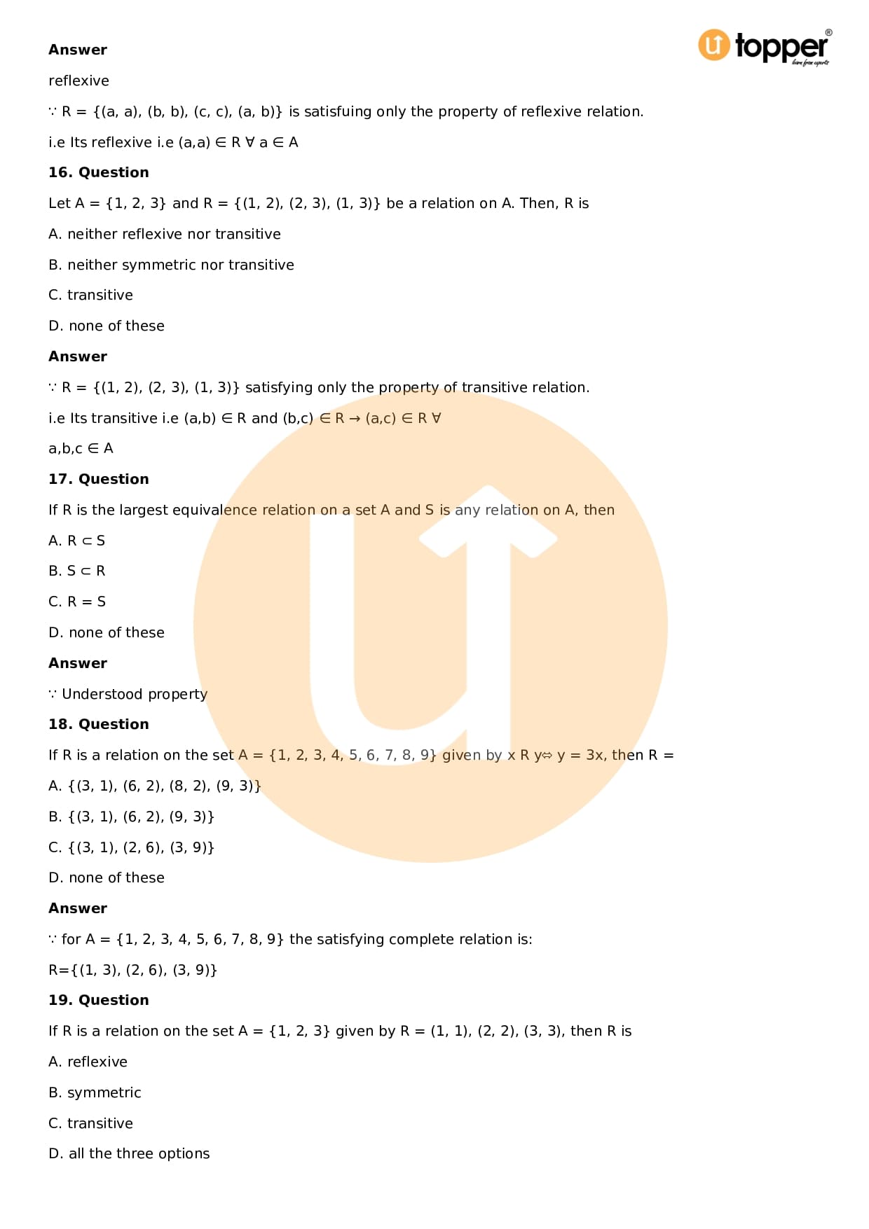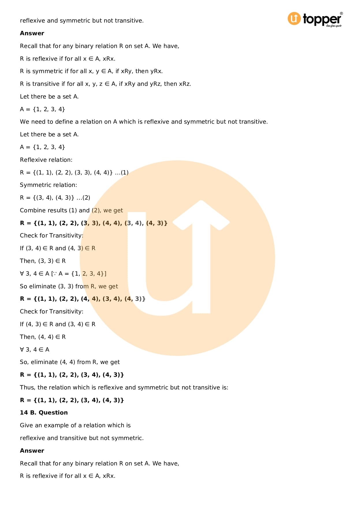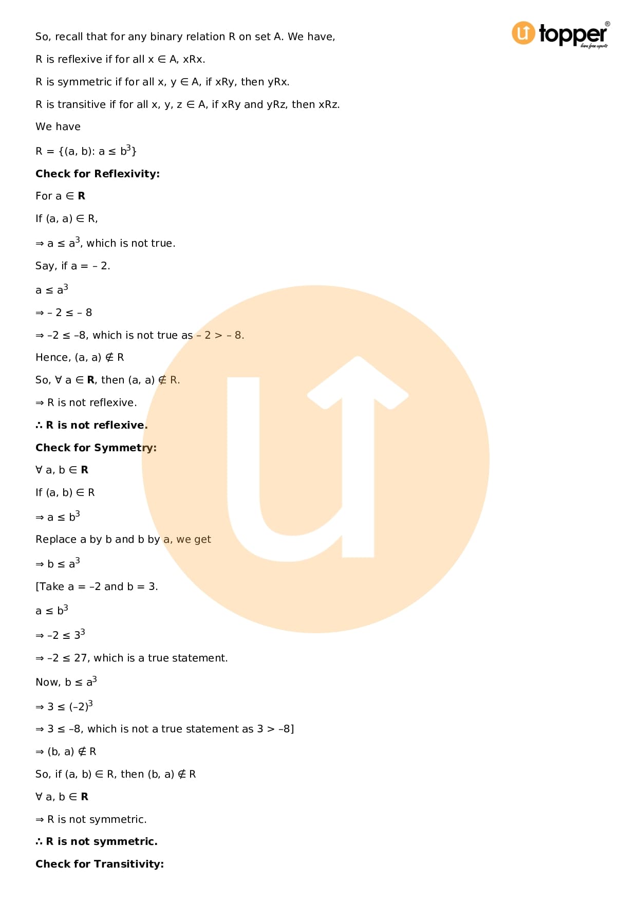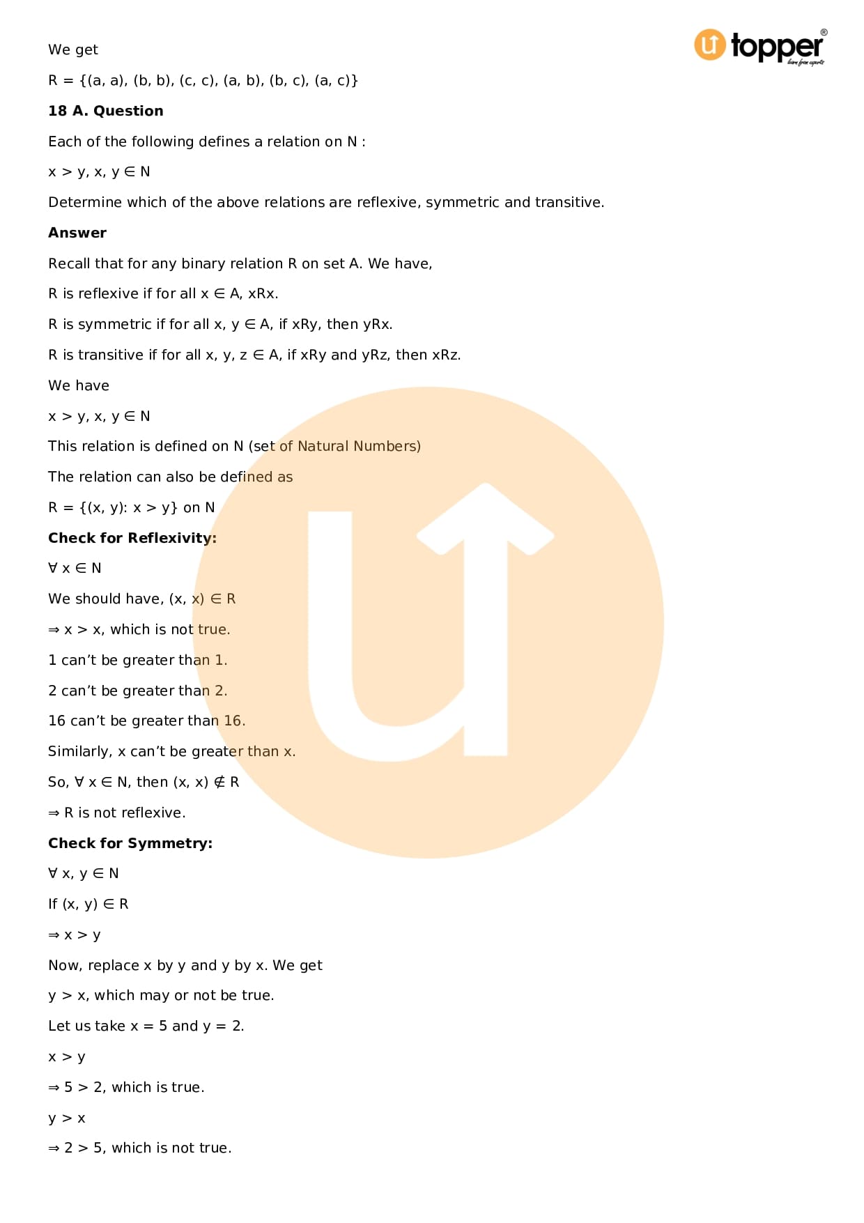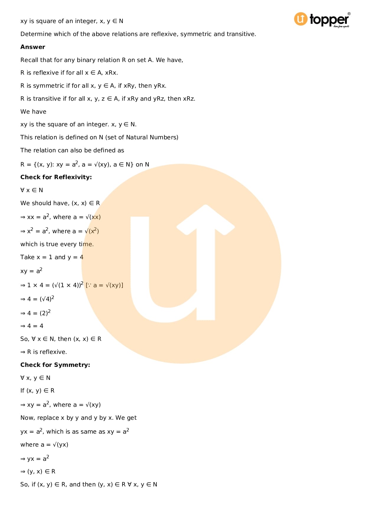 Download the latest version of RD Sharma Solutions for Class 12 Maths Chapter 1 Relations PDF at Utopper. It provides step by step Solution PDF. You can download RD Sharma Maths Solutions with a free PDF download option, which includes chapter wise solutions. All the questions in RD Sharma Solutions have been solved and explained by expert mathematics teachers as per the CBSE Board guidelines. By studying these Maths Solutions, you can easily get good marks in the CBSE board exams.