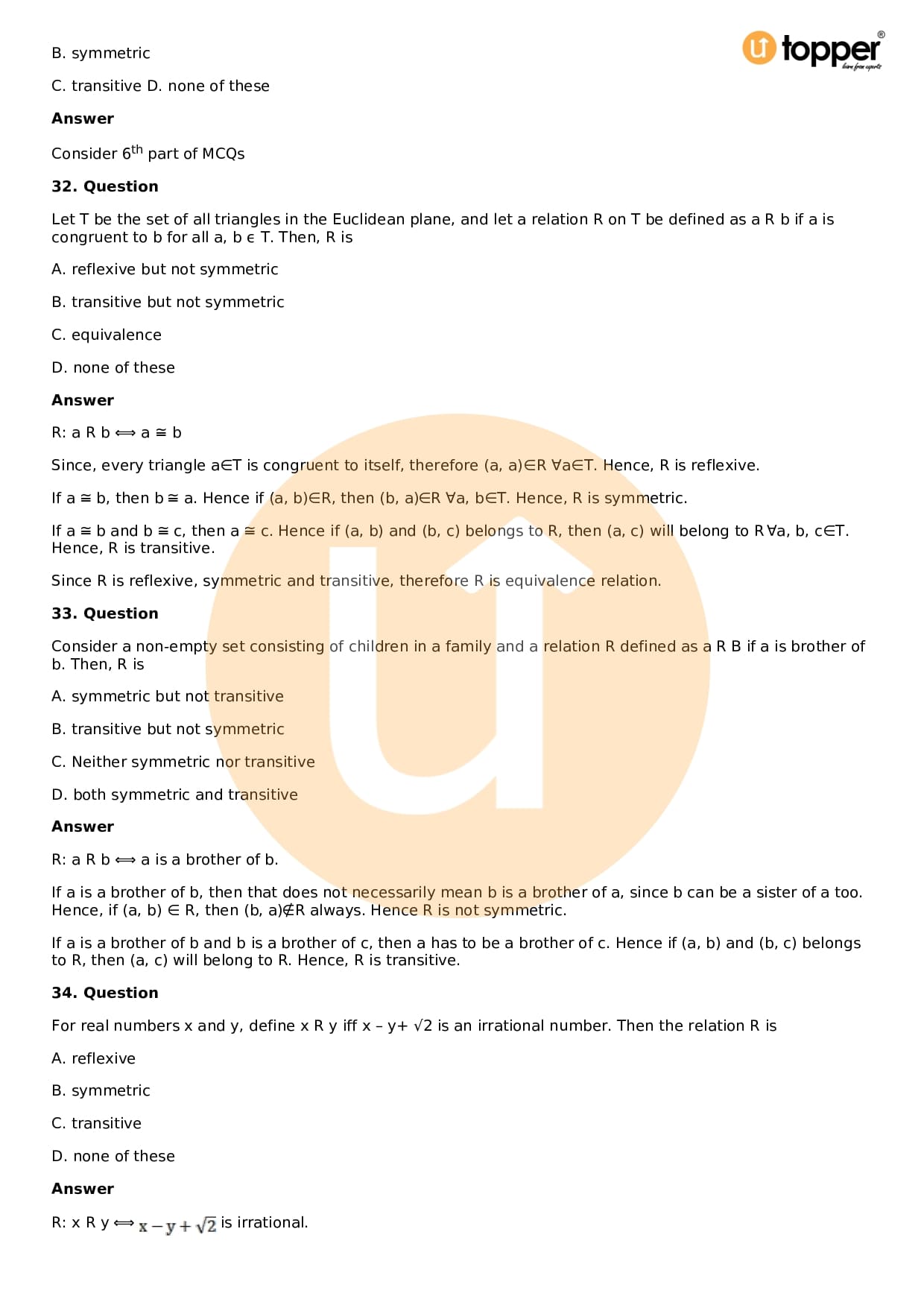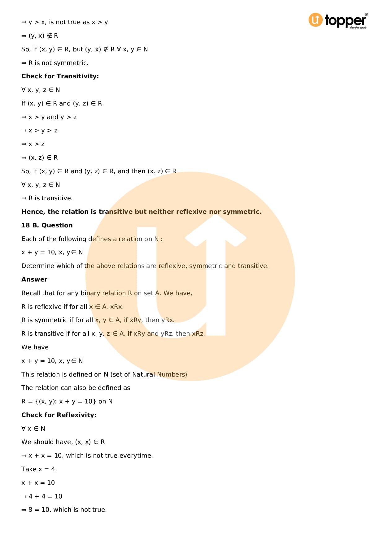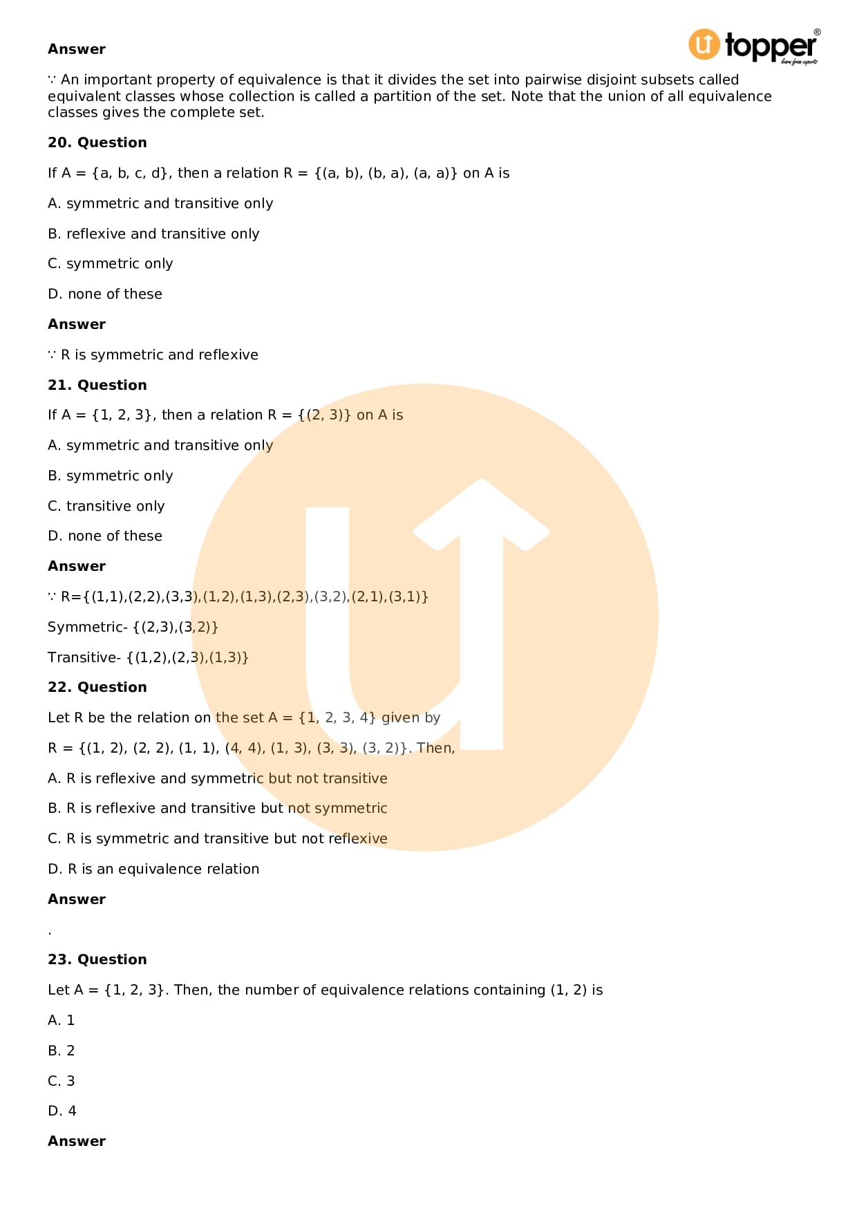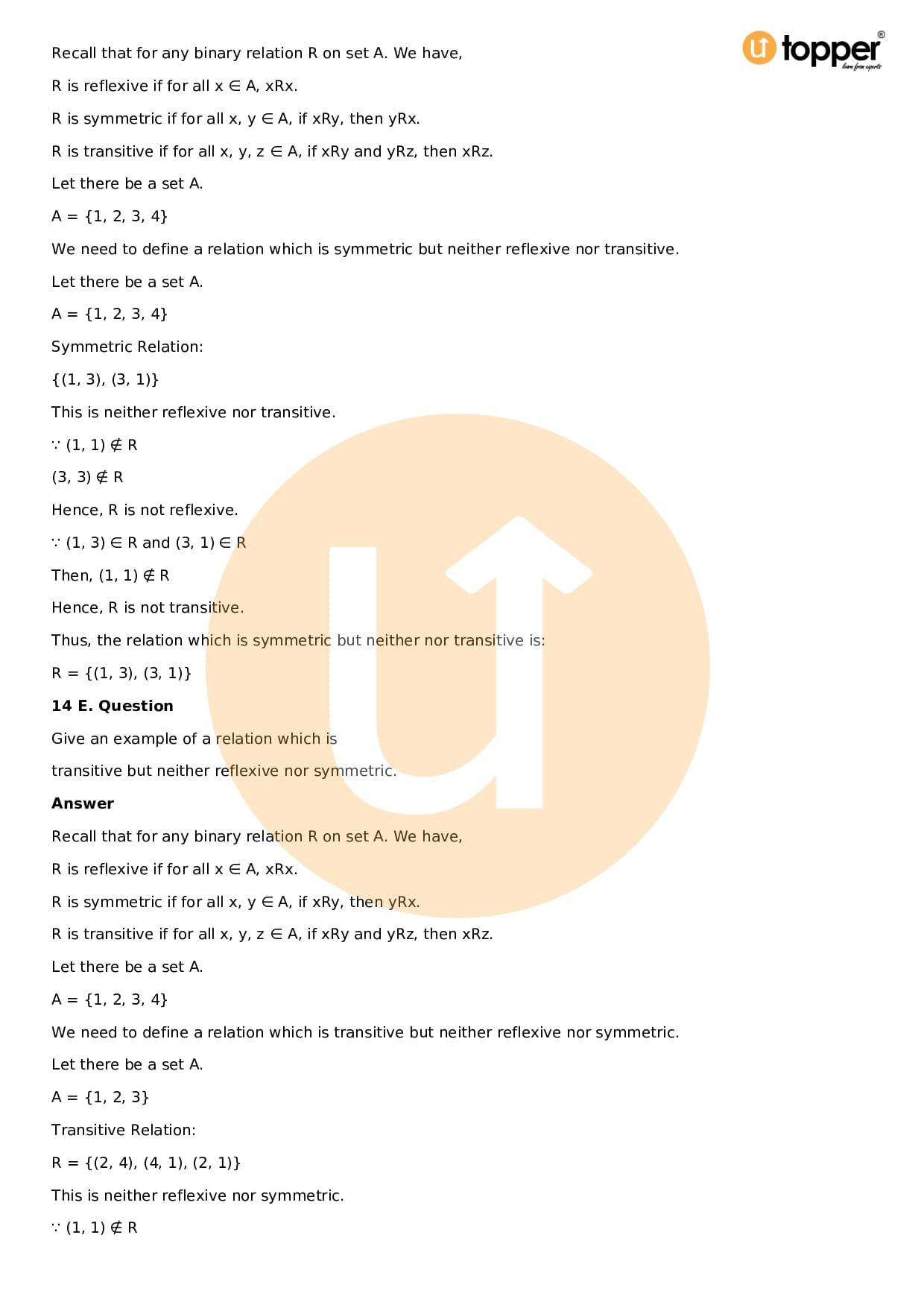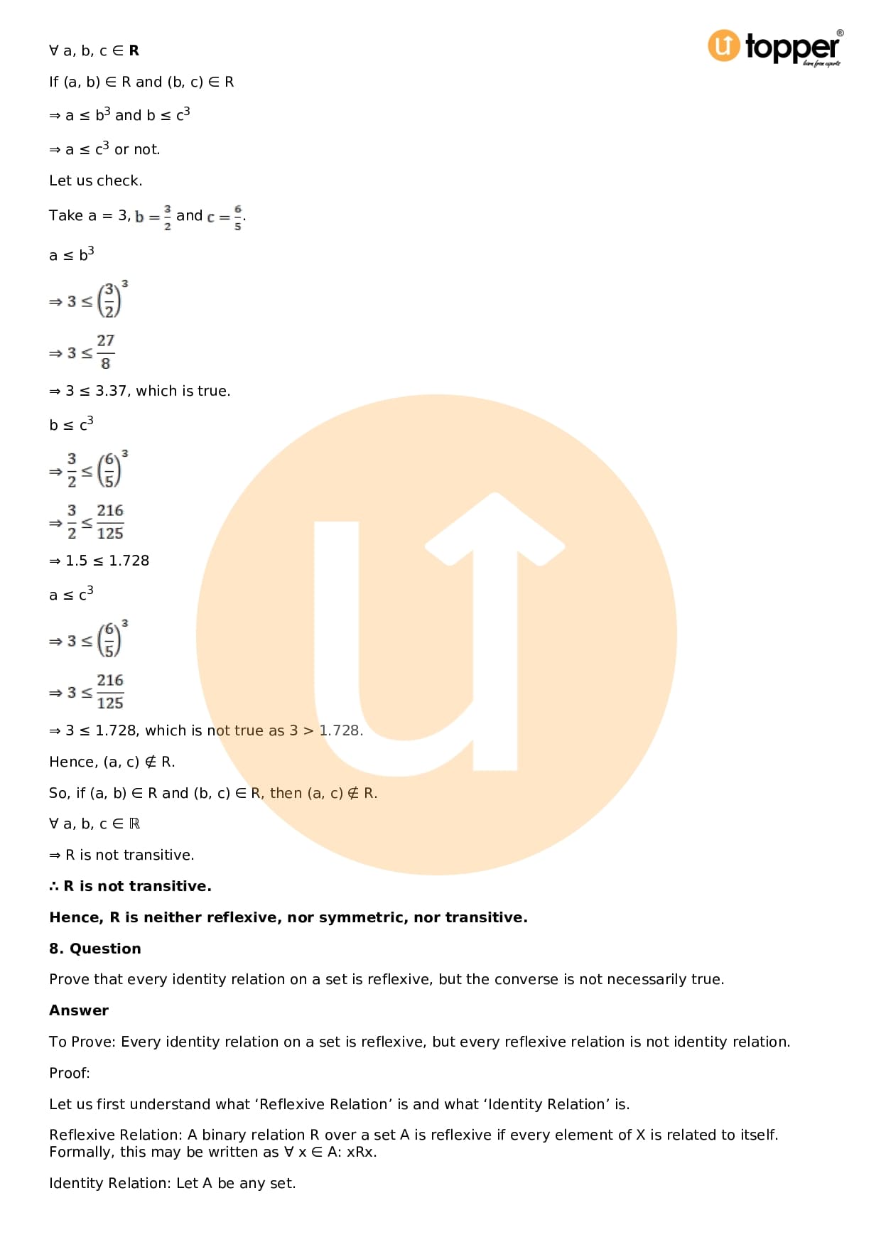 Download the latest version of RD Sharma Solutions for Class 12 Maths Chapter 1 Relations PDF at Utopper. It provides step by step Solution PDF. You can download RD Sharma Maths Solutions with a free PDF download option, which includes chapter wise solutions. All the questions in RD Sharma Solutions have been solved and explained by expert mathematics teachers as per the CBSE Board guidelines. By studying these Maths Solutions, you can easily get good marks in the CBSE board exams.