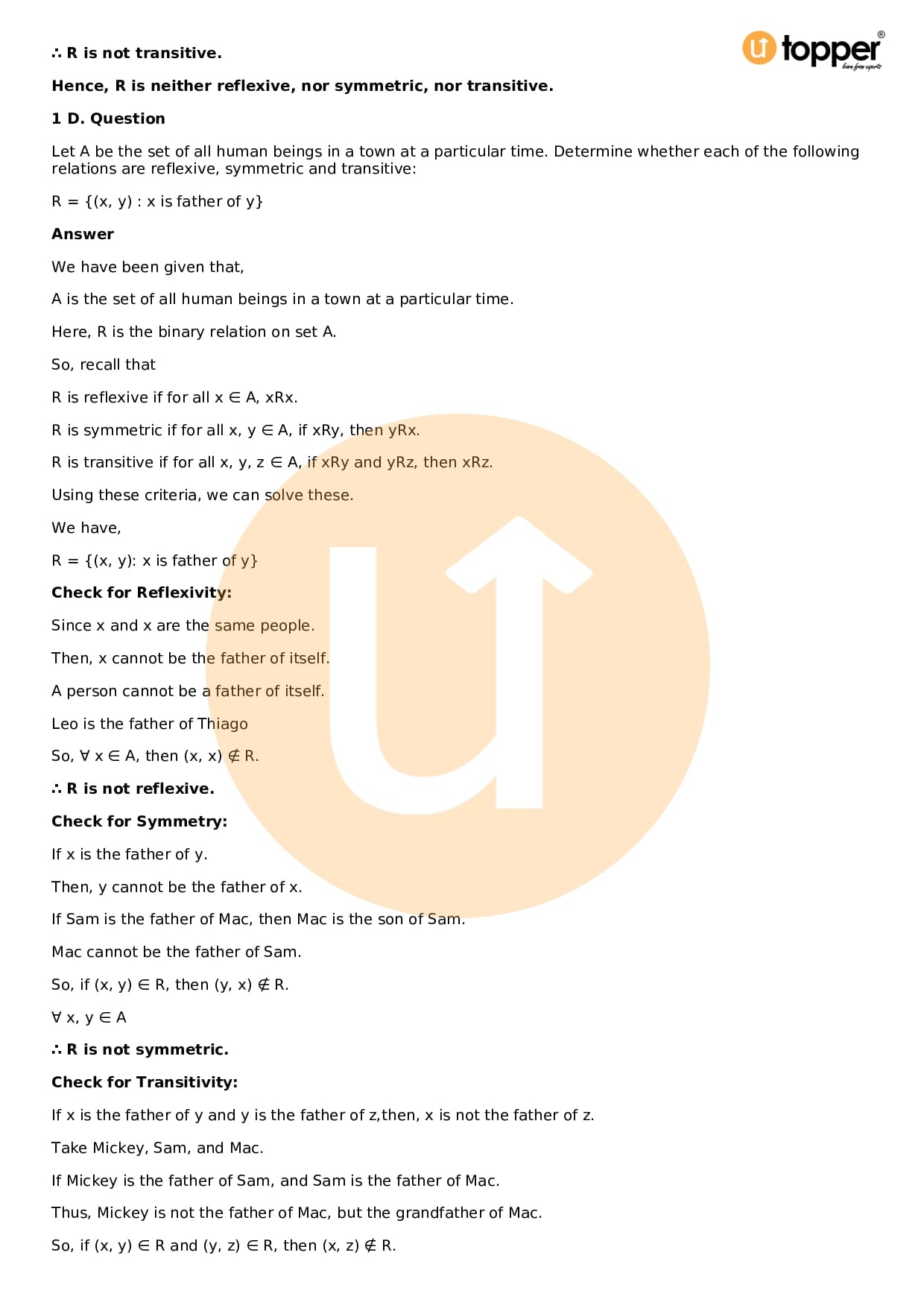 RD Sharma Class 12 Maths Chapter 1 Relations Solutions PDF Download