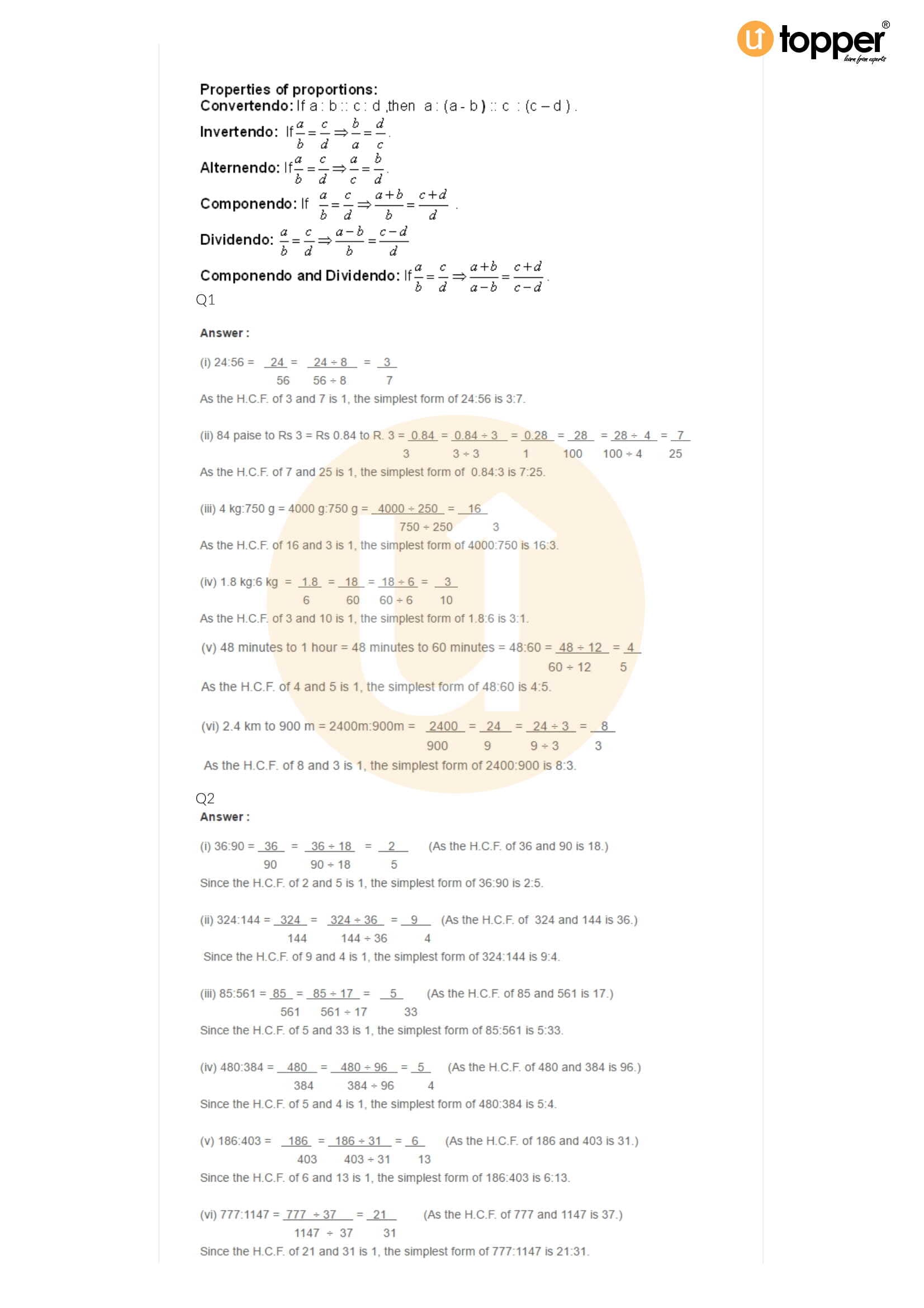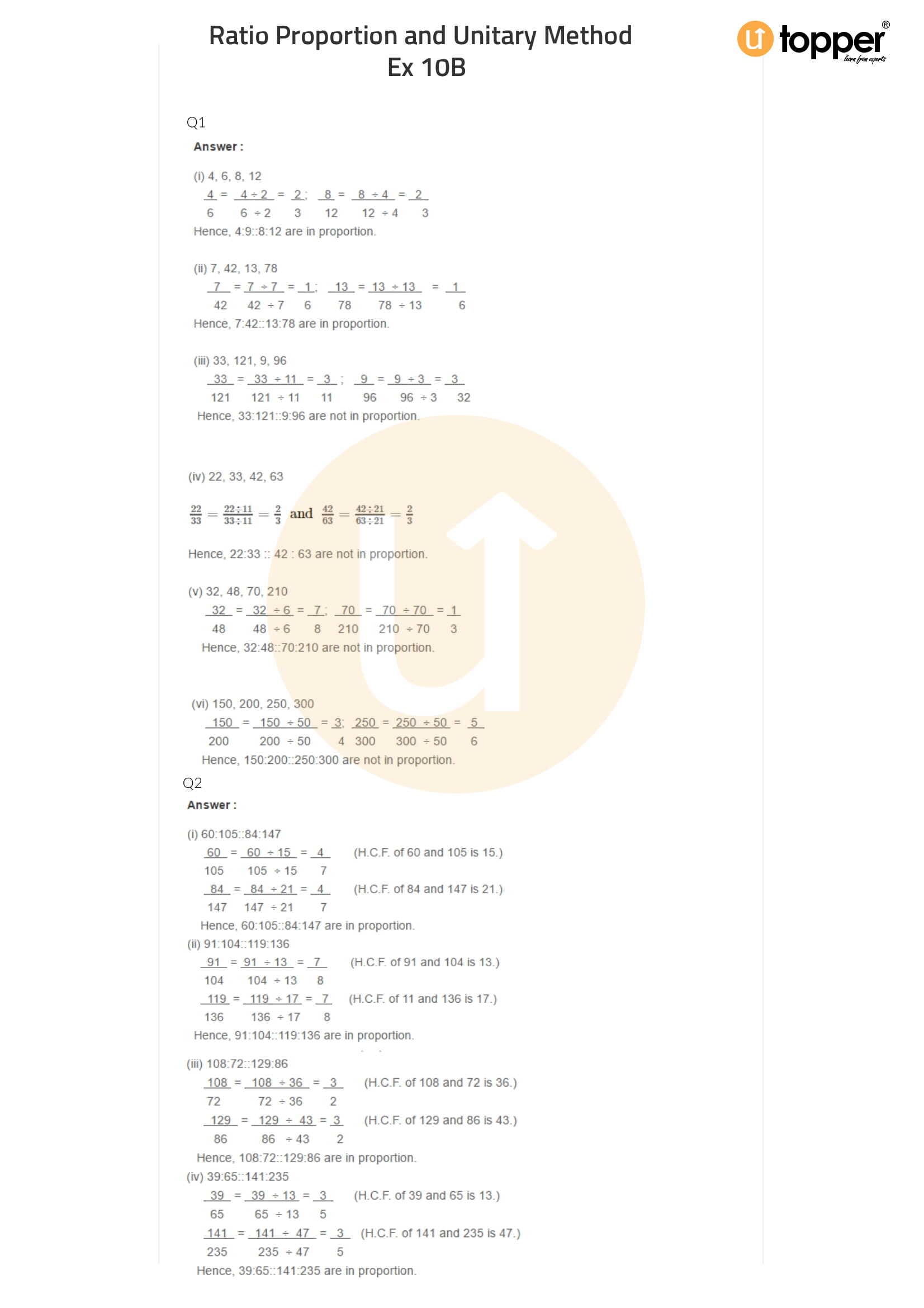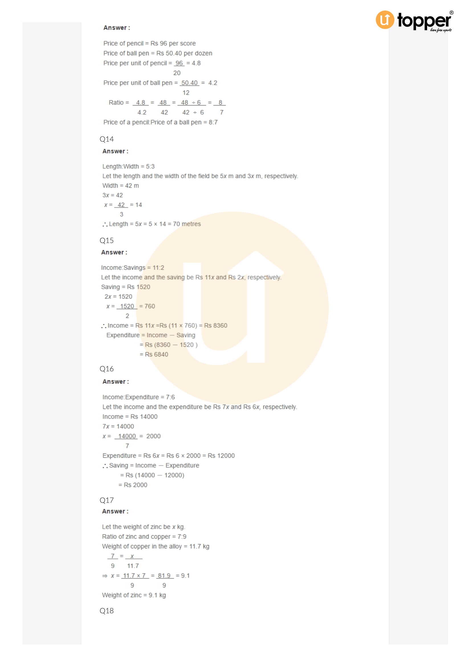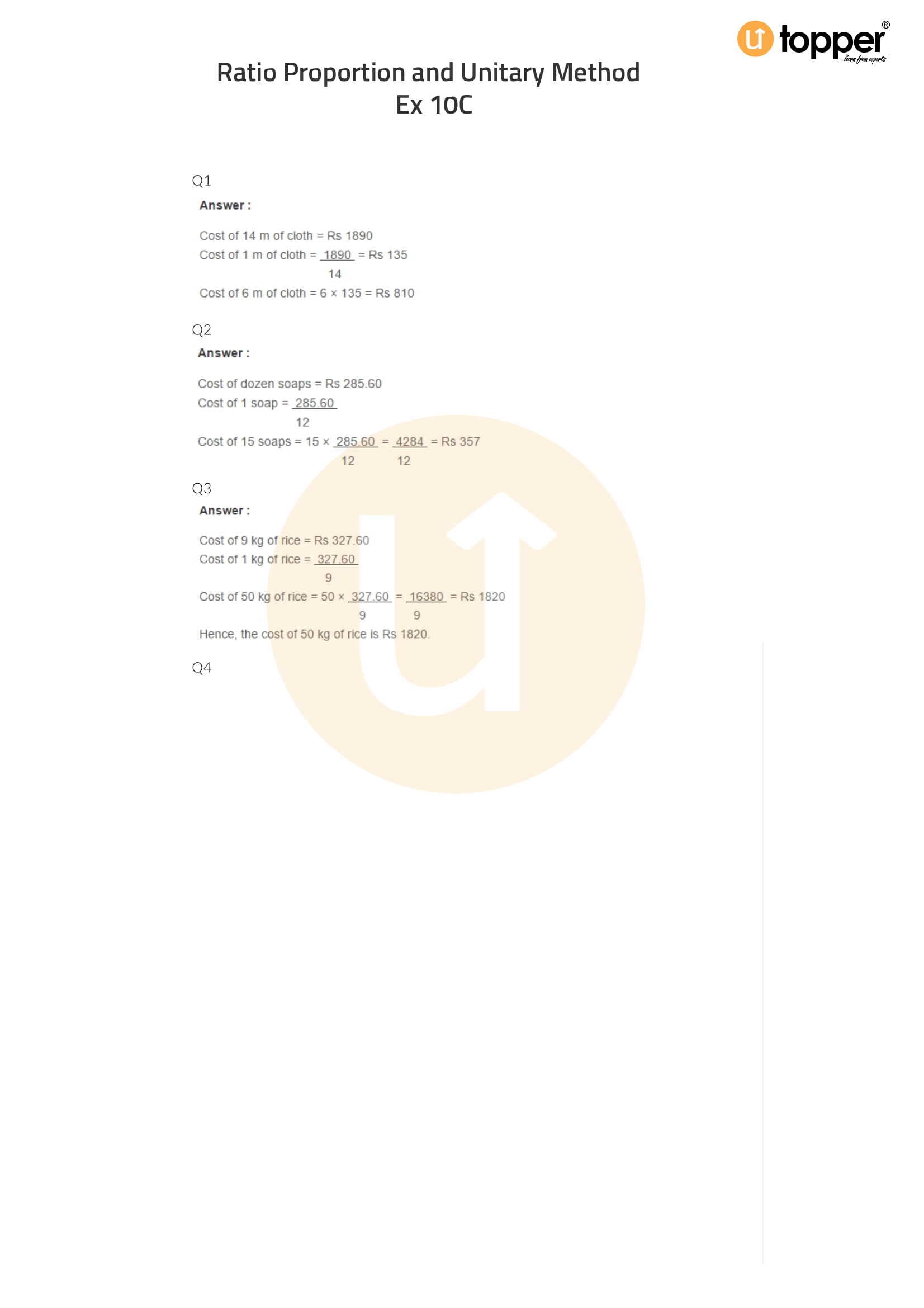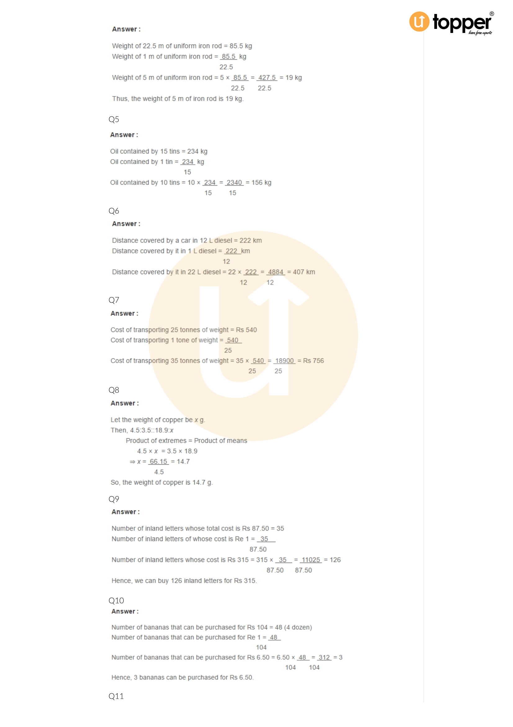 RS Aggarwal Class 6 Maths Chapter 10 – Ratio, Proportion and Unitary Method Solutions PDF