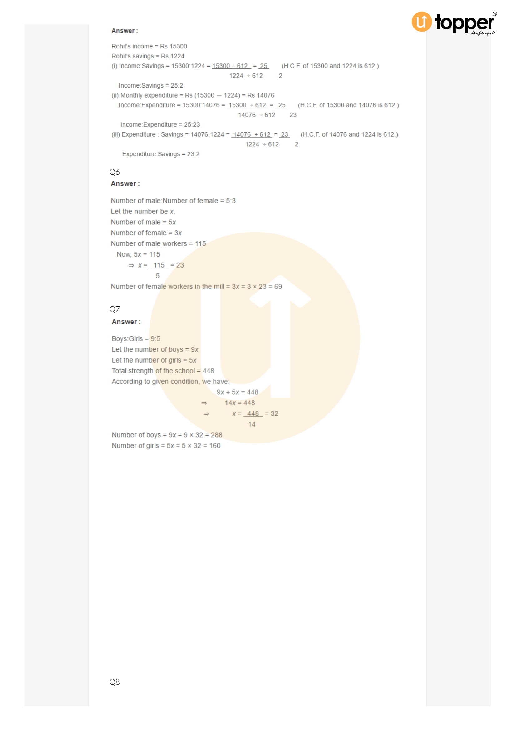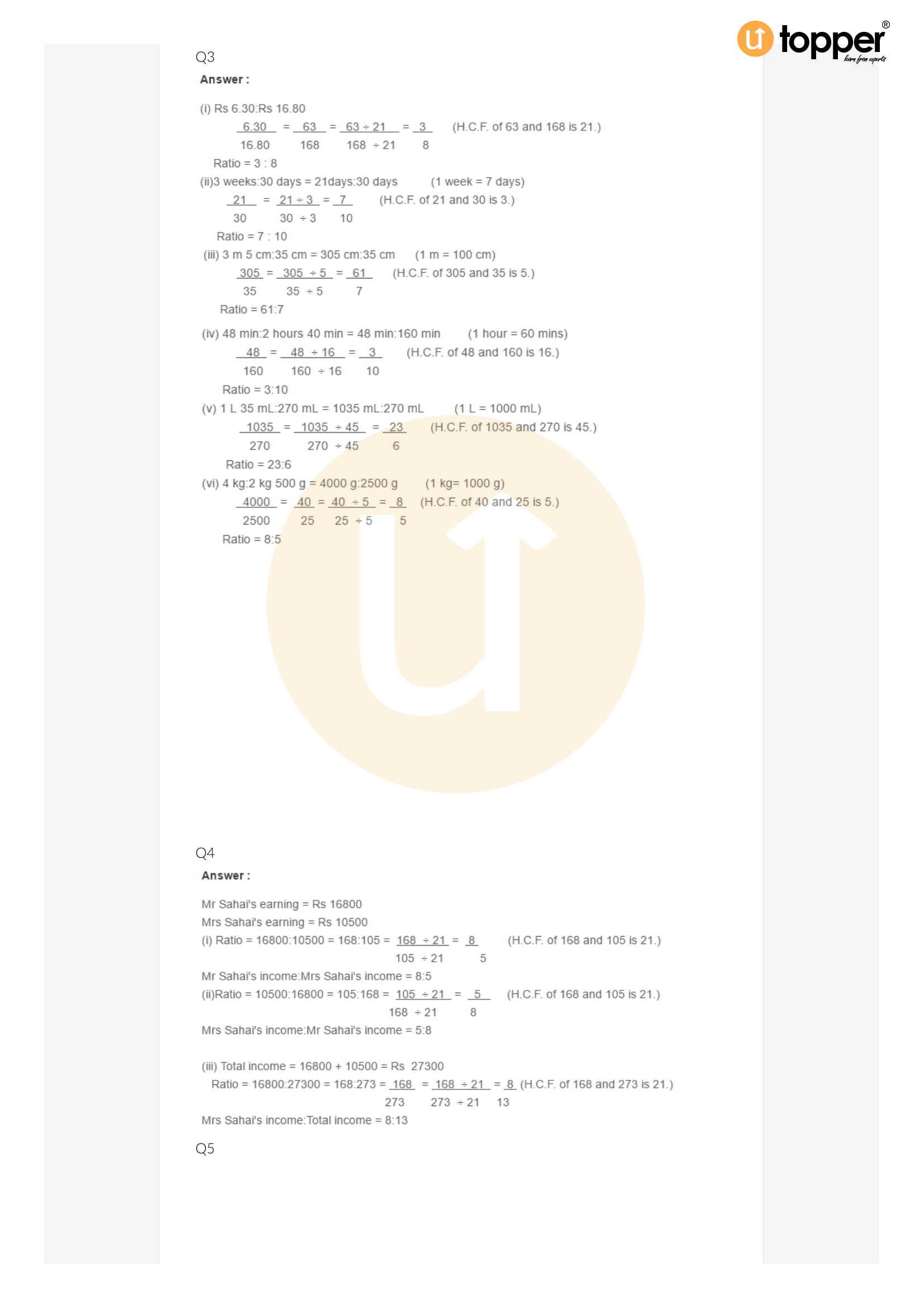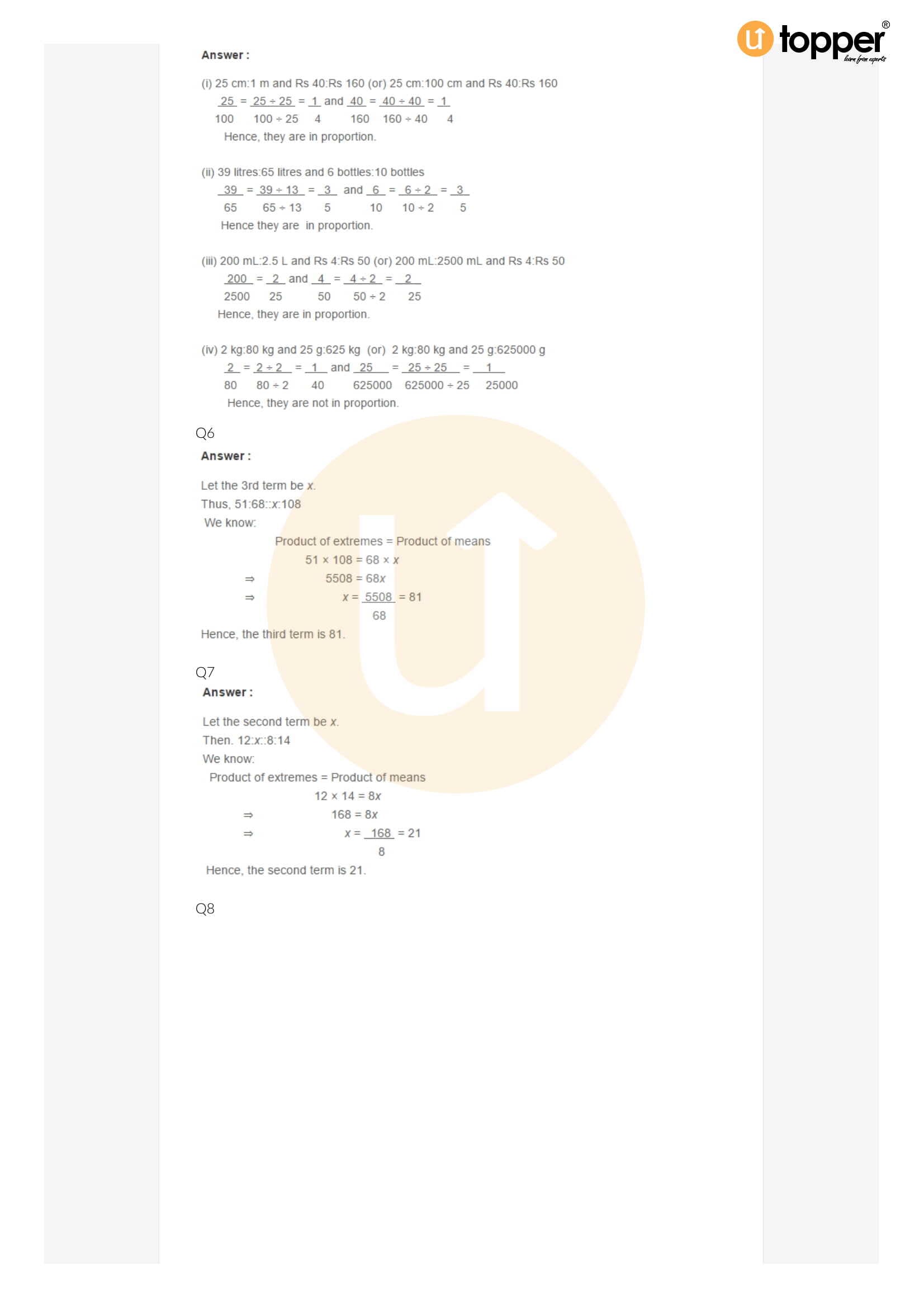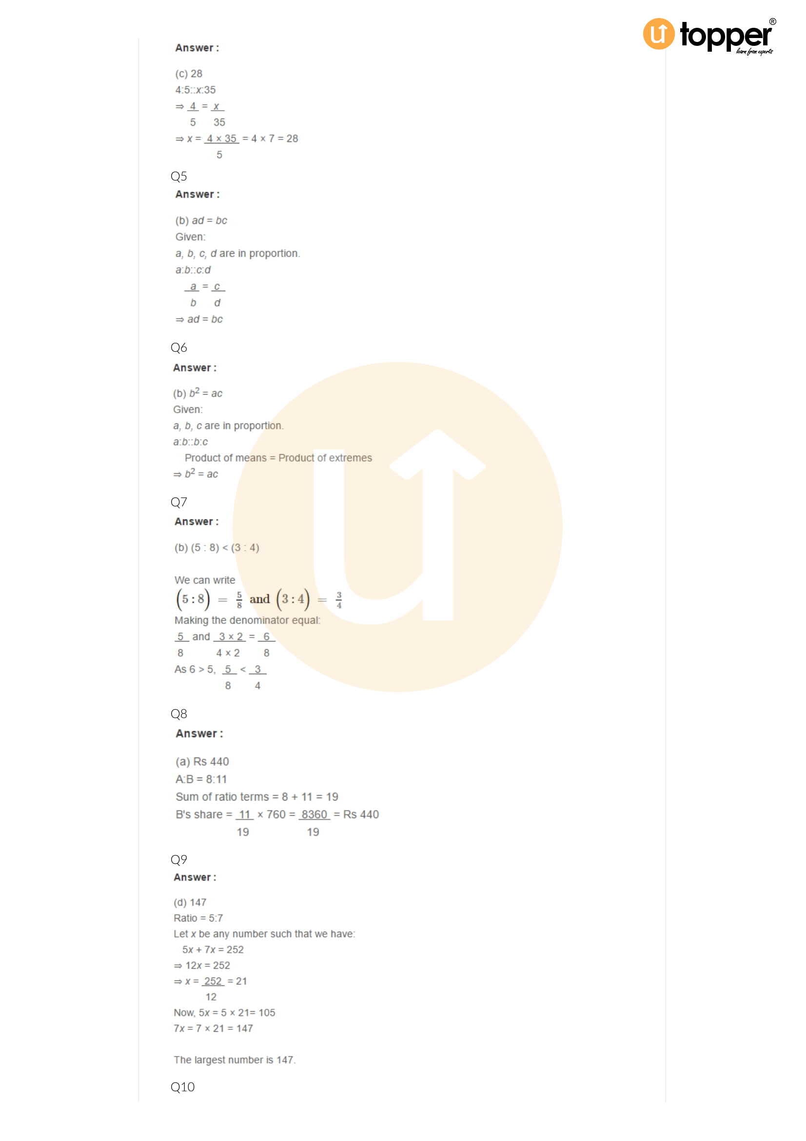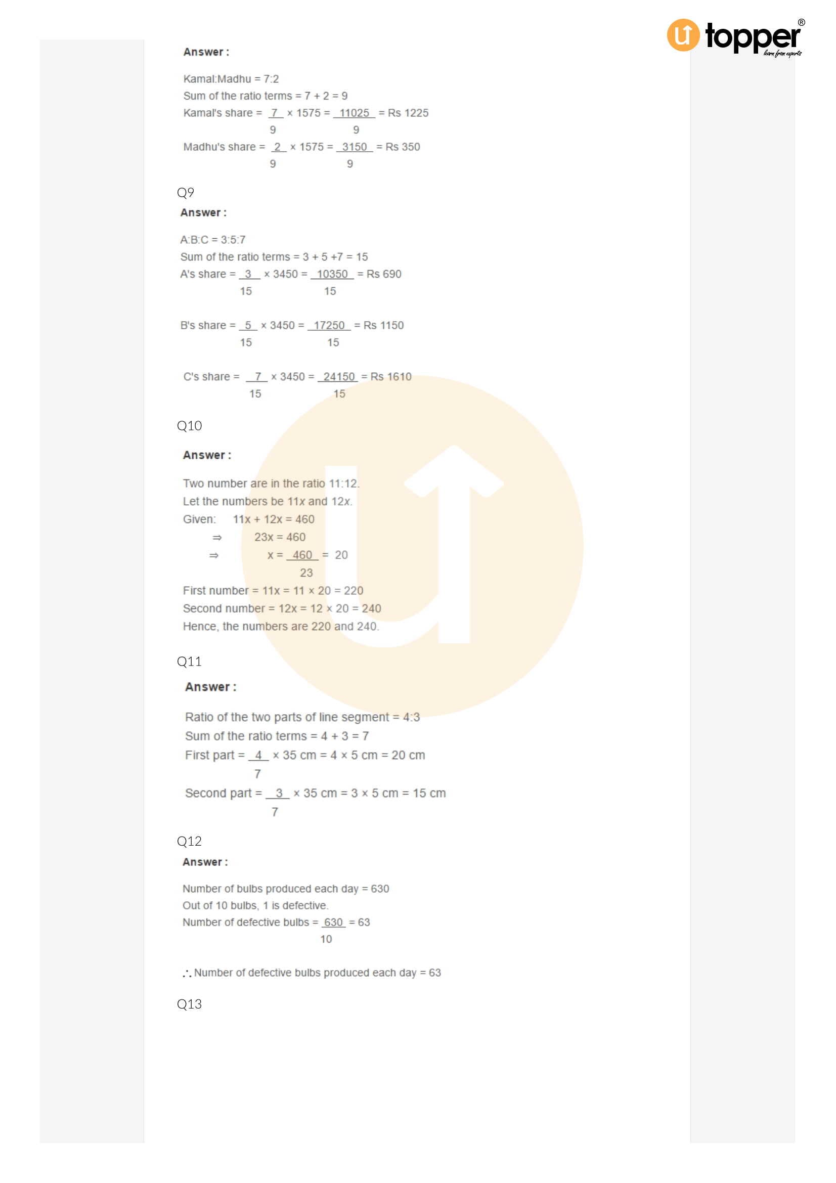 RS Aggarwal Class 6 Maths Chapter 10 – Ratio, Proportion and Unitary Method Solutions PDF