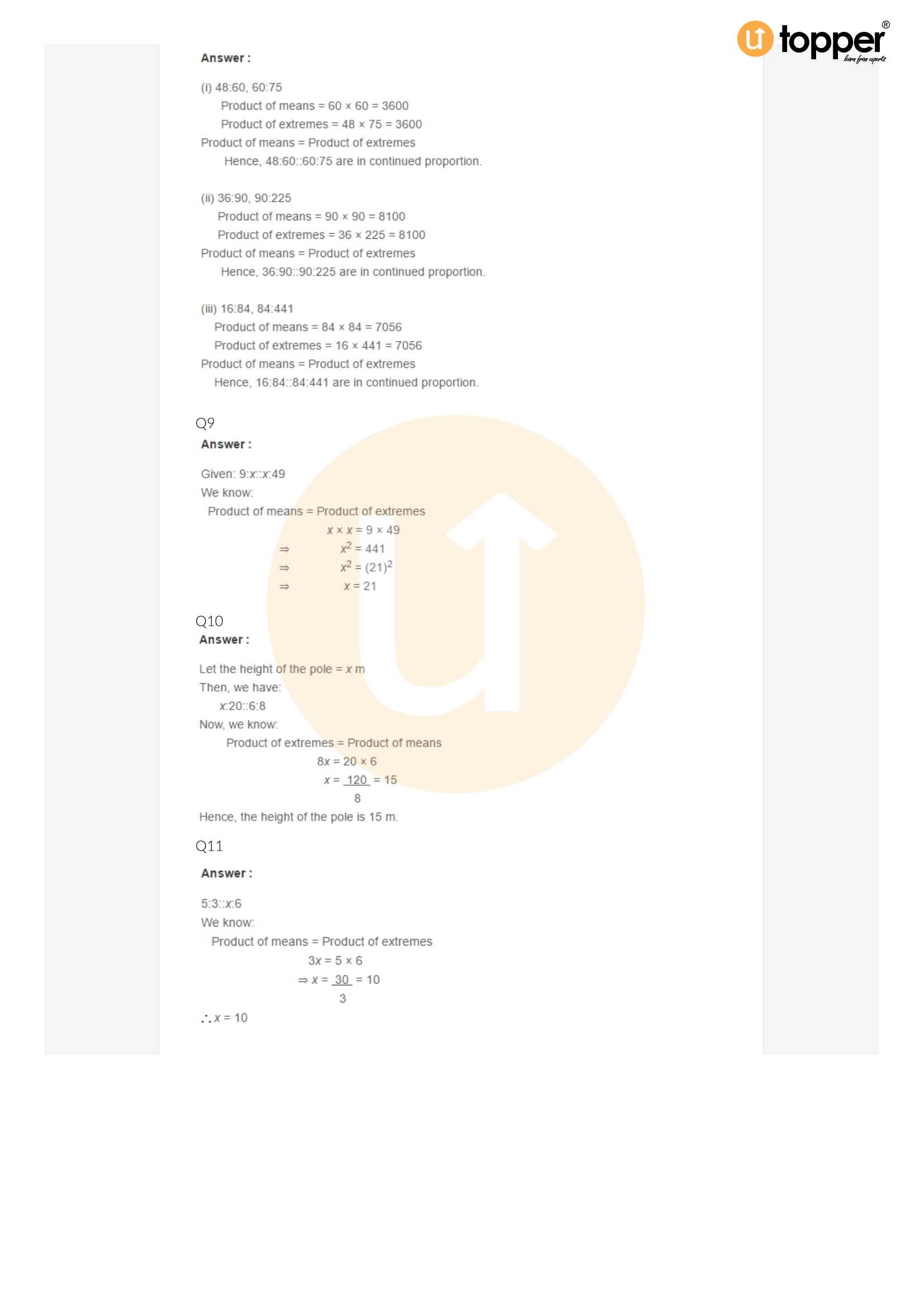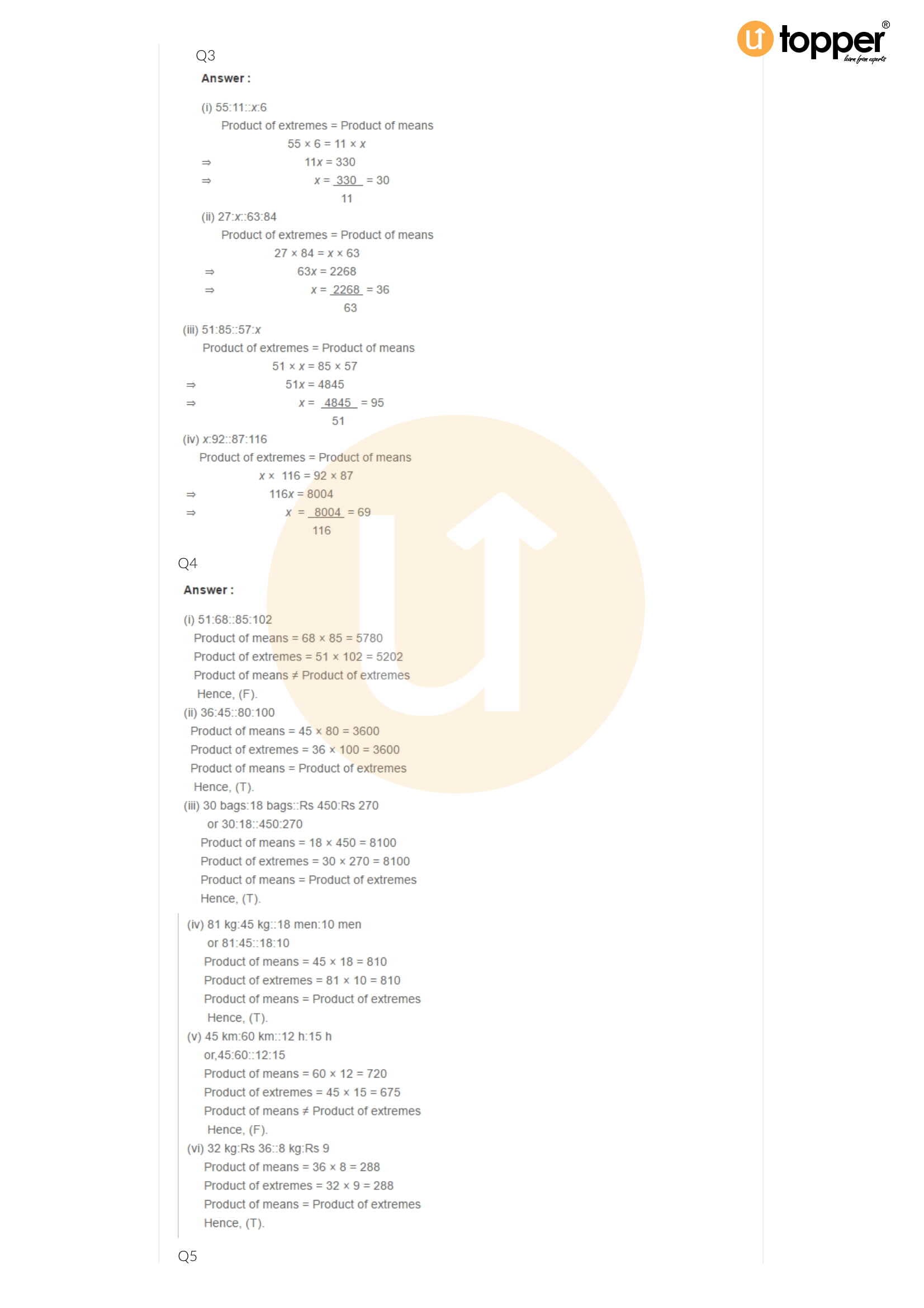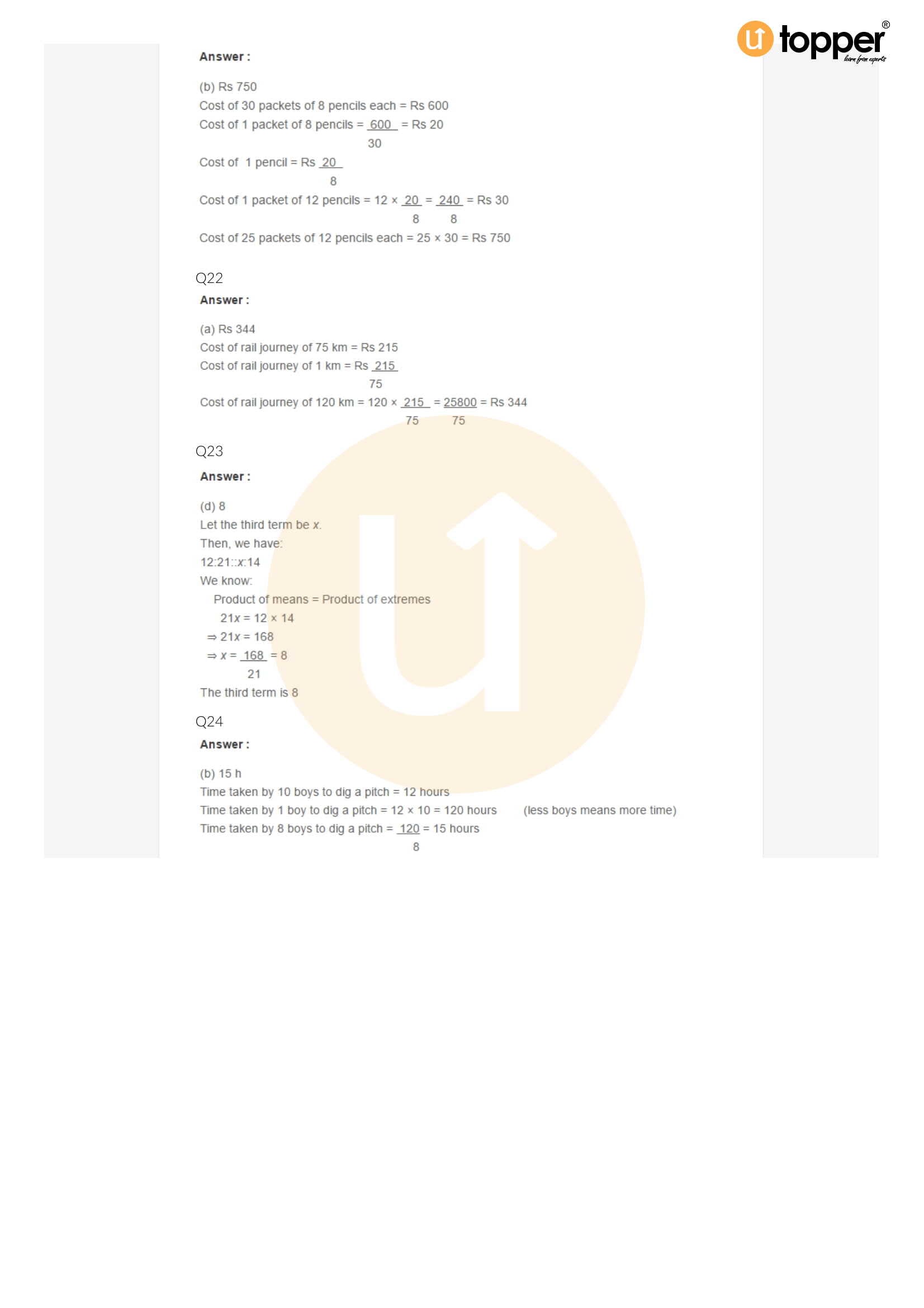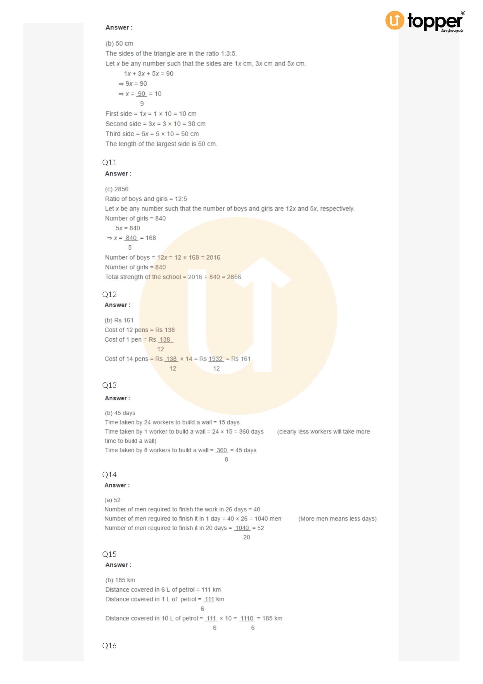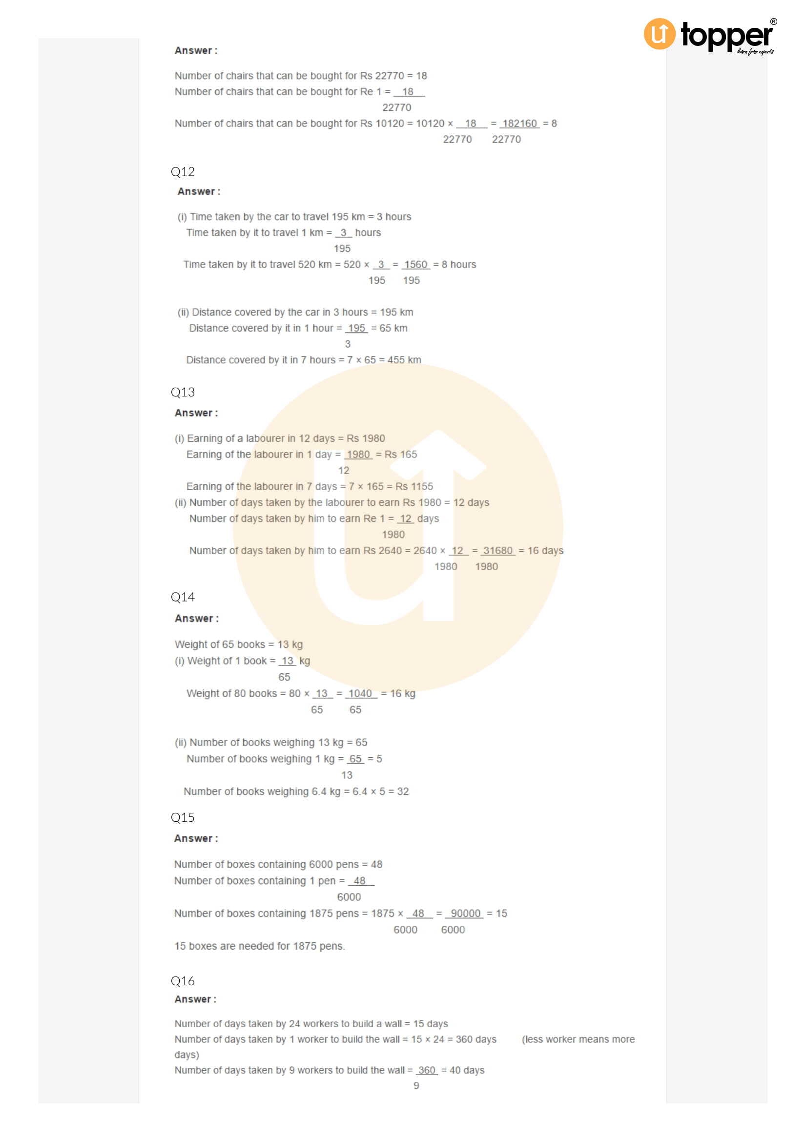 RS Aggarwal Class 6 Maths Chapter 10 – Ratio, Proportion and Unitary Method Solutions PDF