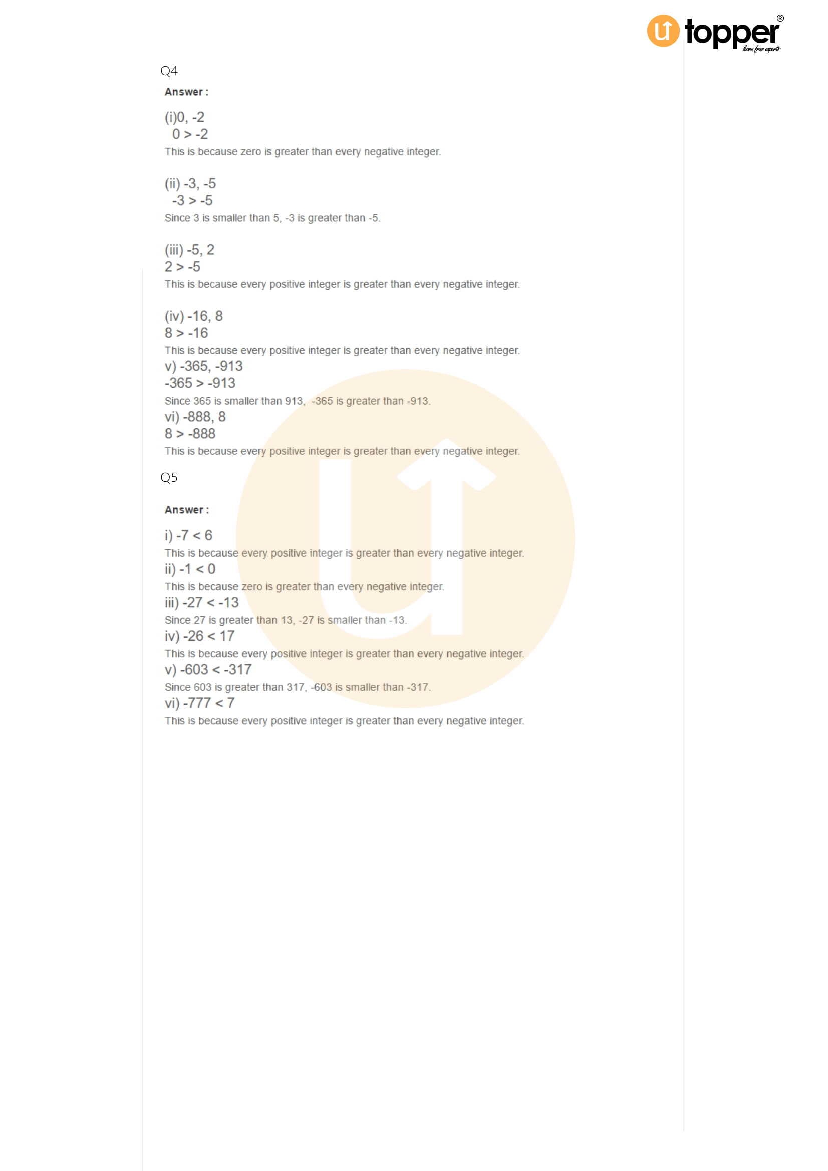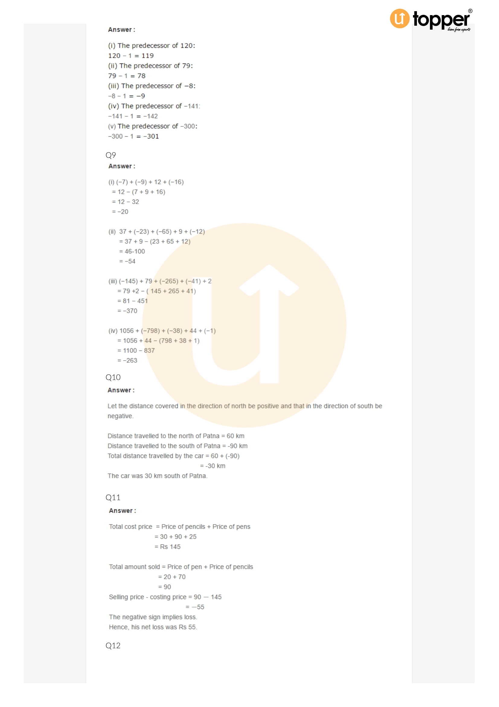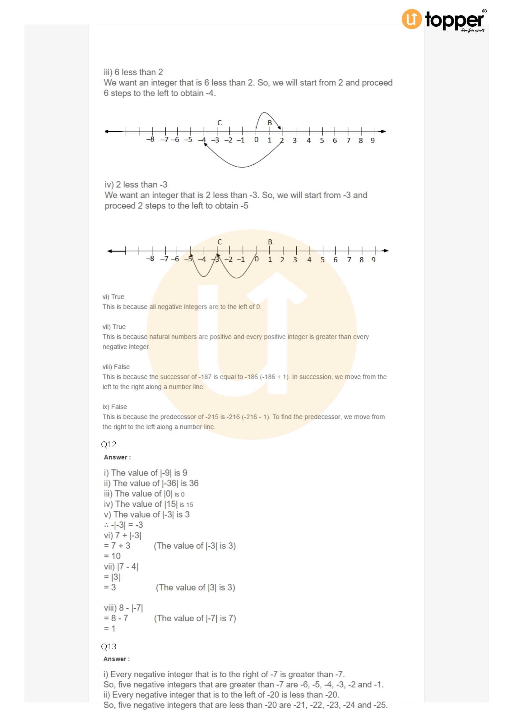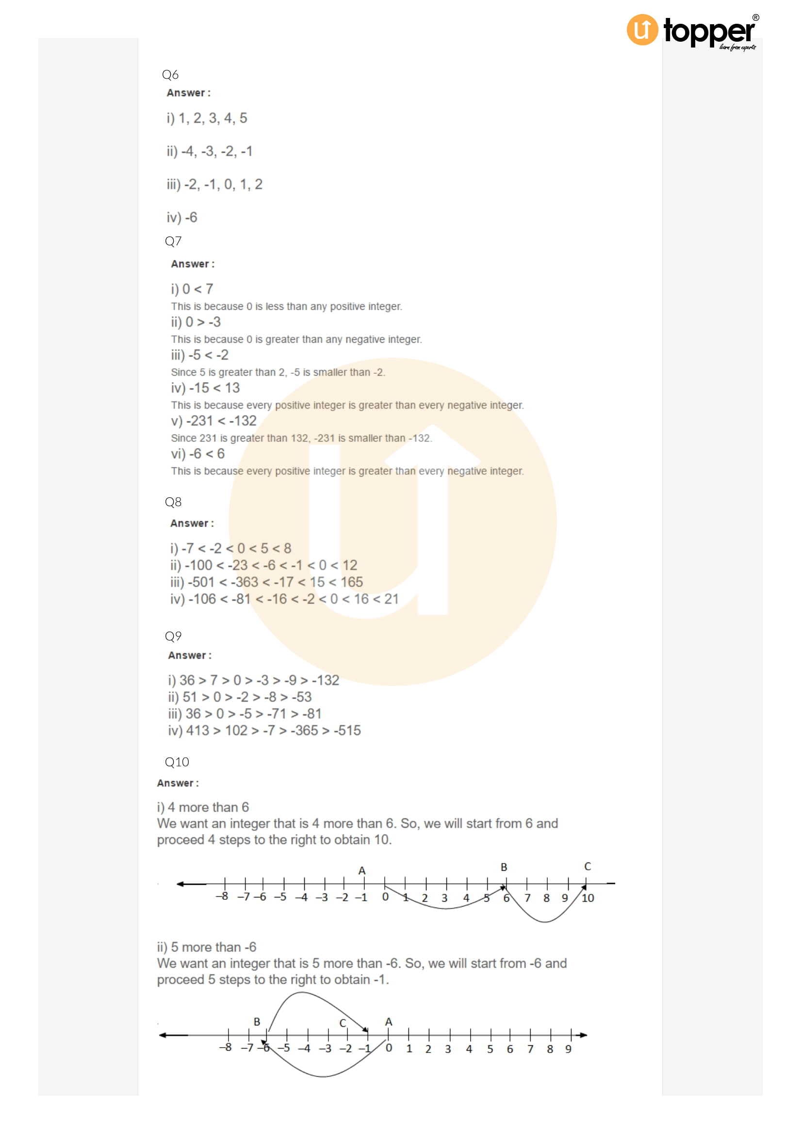 RS Aggawal Class 6 Maths Solutions Chapter 4 – Integers